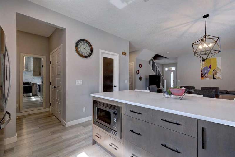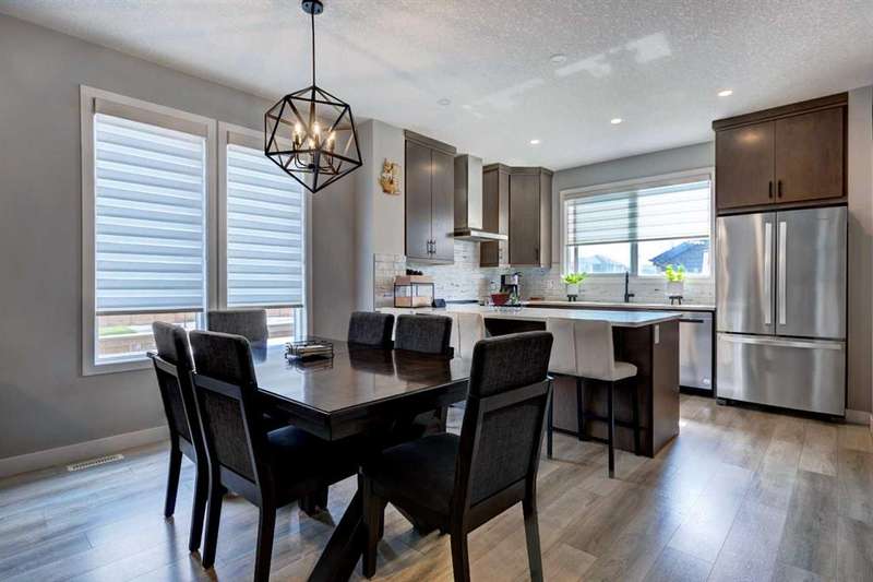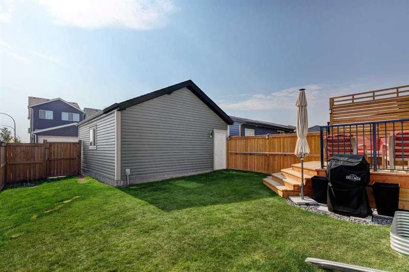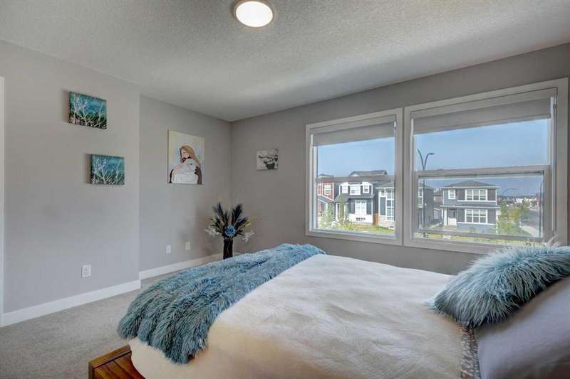 Built in 2022, this amazing home shows better than new and is set on a huge, wide corner lot that has been meticulously landscaped with new fencing, lush lawns, scalloped flower beds and a private deck - all the costly, time-intensive work already completed so you can simply enjoy. Pride of ownership is evident inside and out. Step into the main floor where you'll find luxury vinyl plank flooring and 9' knockdown ceilings. A versatile flex room can easily serve as a 4th bedroom or home office, conveniently located near a 2-piece bath. the open plan design seamlessly connects the central family room, family sized dining area and elegant peninsula style kitchen w/quartz counters, lunch counter, ceiling height cabinets, a gorgeous backsplash, stainless steel appliances, motorized custom Zebra blinds and a walk in pantry. Upstairs offers 3 spacious bedrooms including a primary suite with spa like ensuite featuring dual sinks, separate shower, tile skirted soaker tub and a walk in closet w/custom built in's for easy organization. the upper level also includes laundry and a 4 piece family bath. the undeveloped lower level is wide open with utilities smartly tucked away to optimize useable space. A double detached with EV charger completes the package. Additional upgrades include metal staircase railings, tankless hot water, 6 solar panels, paved alley, smart door locks, newer fencing and deck, plus 2 gates for entry into the yard from both the front and back. This home offers exceptional value, unbeatable curb appeal and belongs at the top of your MUST SEE list !! One of Calgary's up and coming communities - Belmont is encircled by 194th Avenue, Sheriff King Street & 210th Avenue, with direct access to Macleod Trail and Stoney Trail. So it’s extra easy to run out for groceries, get a head start on family road trips, or reach home faster at the end of a long day.