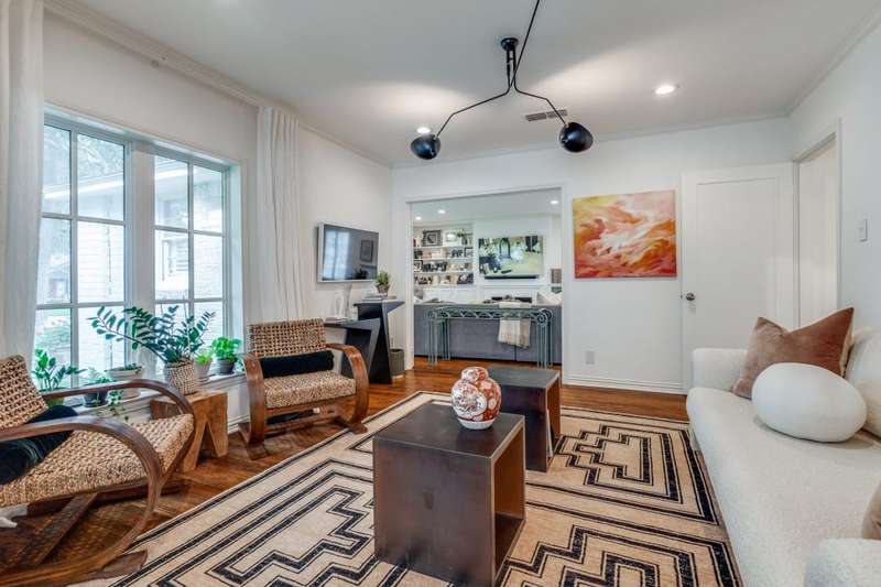 ** THIS HOUSE HAS BEEN LEASED ** This adorable cottage, defined by its enchanting charm was reimagined by a designer. Upon entering, you are greeted by a small foyer that leads to a cozy living room, is adorned with numerous bookshelves that frame the fireplace. The living room seamlessly transitions into a generously sized dining area. The kitchen is small but efficient, boasting quartzite countertops, SS appliances including two built-in ovens. The built in breakfast nook is a nod to the past. The primary bedroom has an ensuite bathroom. The second bathroom, equipped with dual sinks, serves the other two bedrooms. The backyard is a true haven with a built in fire pit & dining table. The detached two-car garage, complete with a window unit, offers versatility. Washer & dryer remain. Located within walking distance of popular restaurants & shops in Inwood Village. Washer, dryer, and refrigerator stay along with all window treatments. The owner maintains the yard.