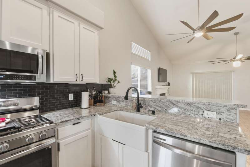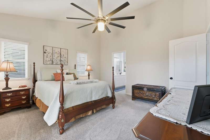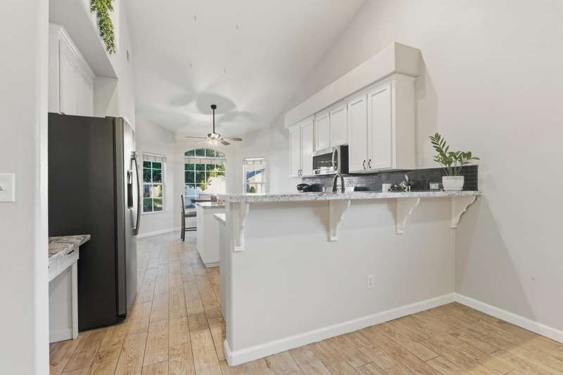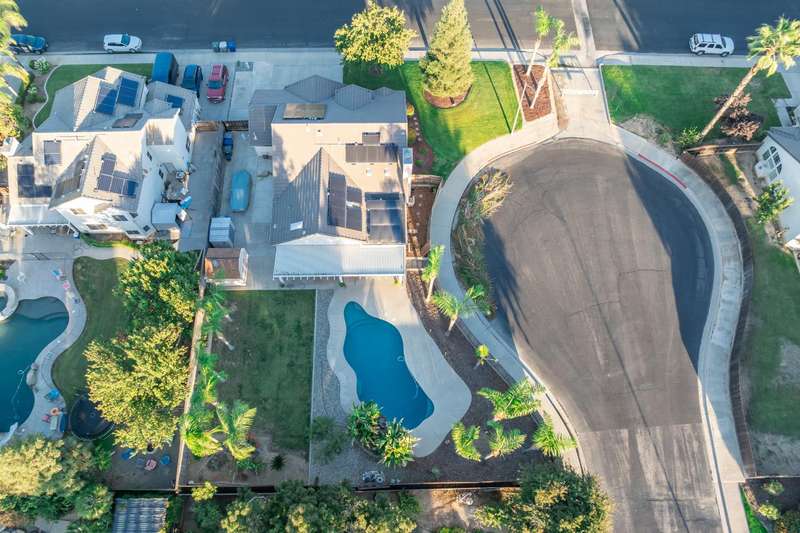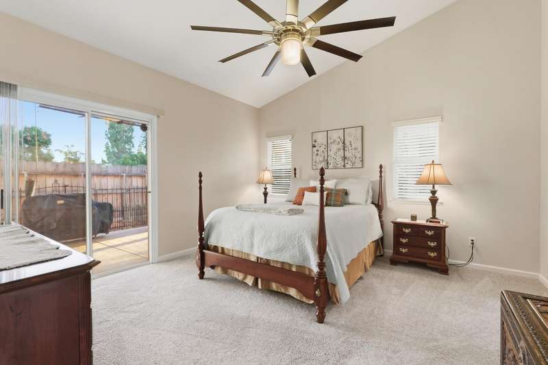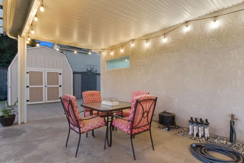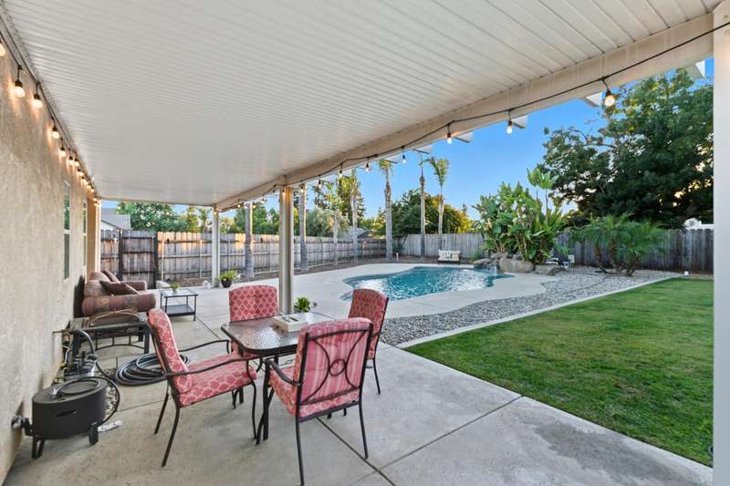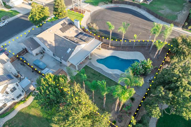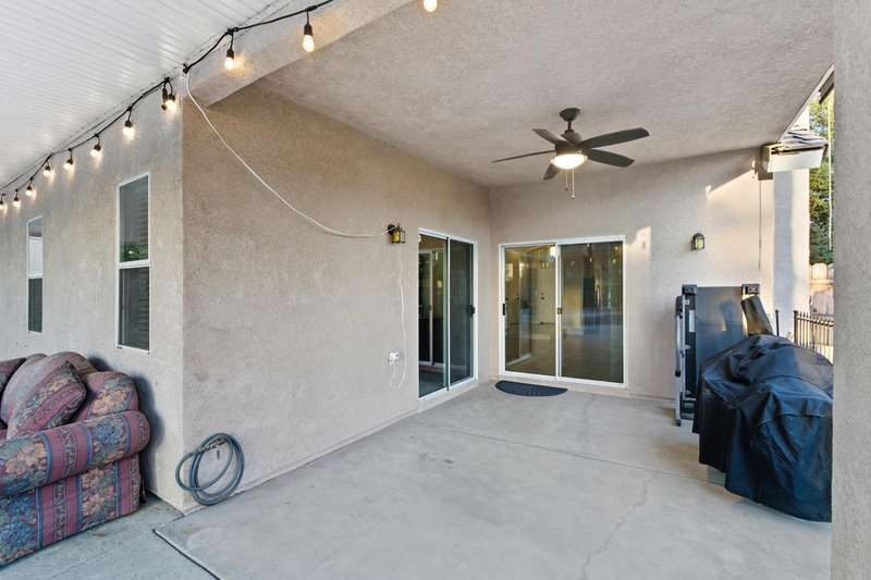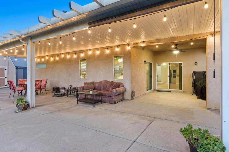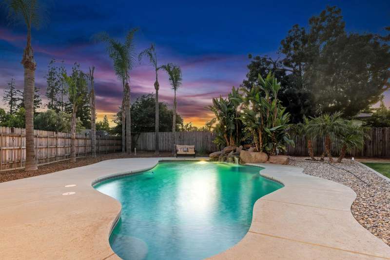 Beautiful home with the perfect backyard for you and your guests. An absolutely flawless property for entertaining, hosting, and storage. This lot is a must see! Huge corner area, with a big pool and waterfall, grassy space including many palm trees, two sheds, RV Parking and a covered patio. Everything you might desire in the ideal outdoor set up. So many features outside, let's not overlook the interior. Wood-look tile flooring, modern open kitchen, nice open floorplan with a great layout & flow. What an awesome place to call your own. Other amenities to note: the three car garage, extended driveway, a convenient backyard gate that leads to a secluded cul-du-sac right next to the property that also provides abundant street parking. Powerful and stylish ceiling fans, farmhouse sink in the kitchen, epoxy flooring in garage. Come see it for yourself! Call your Realtor and set up a private showing today.