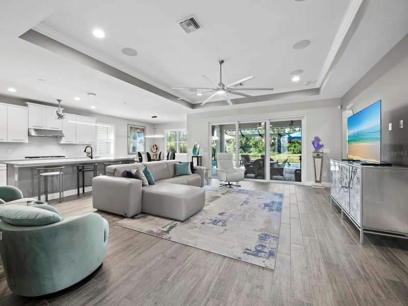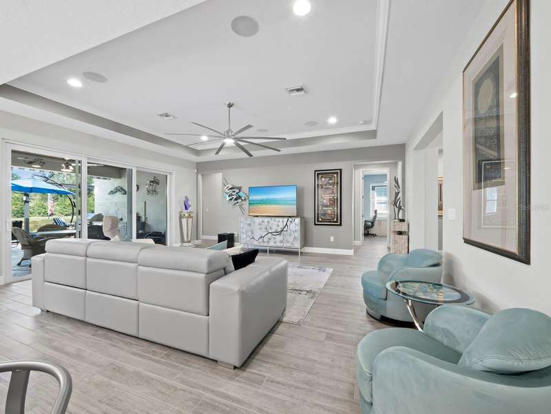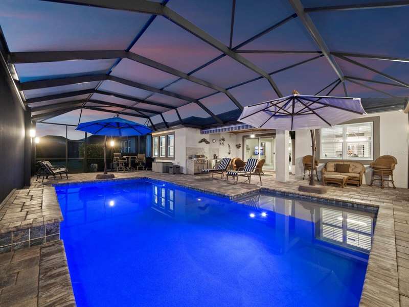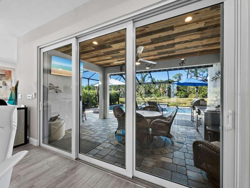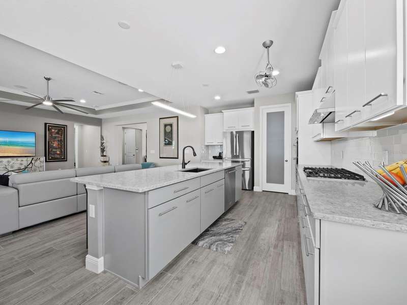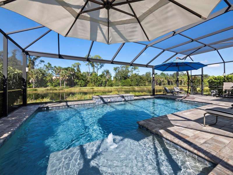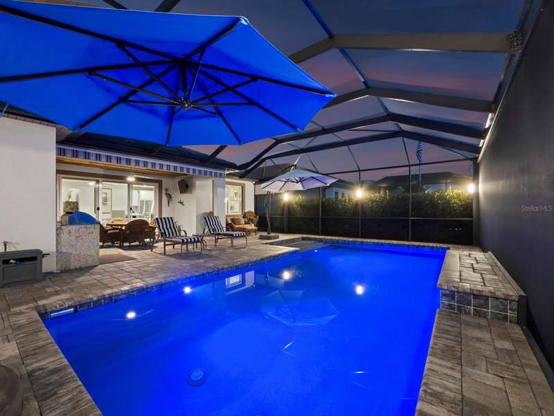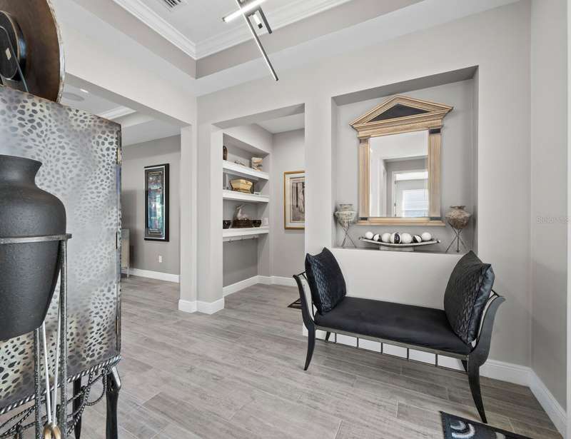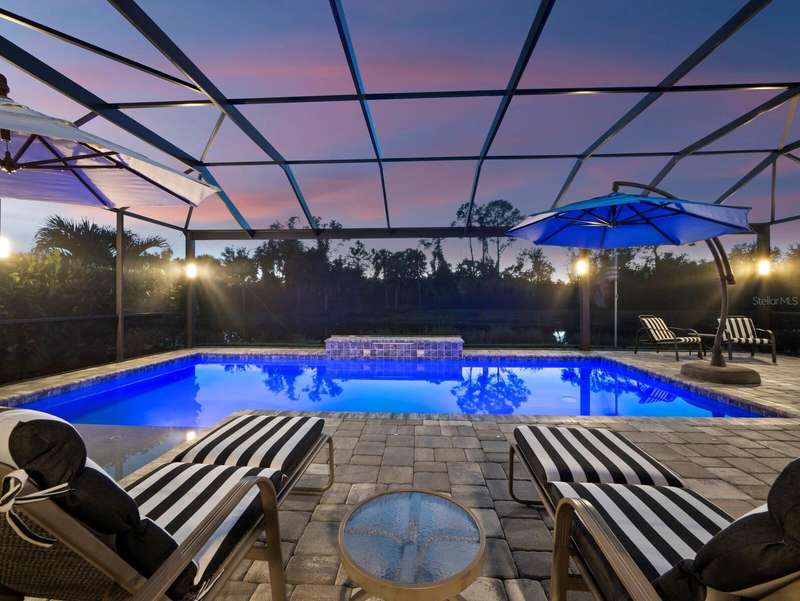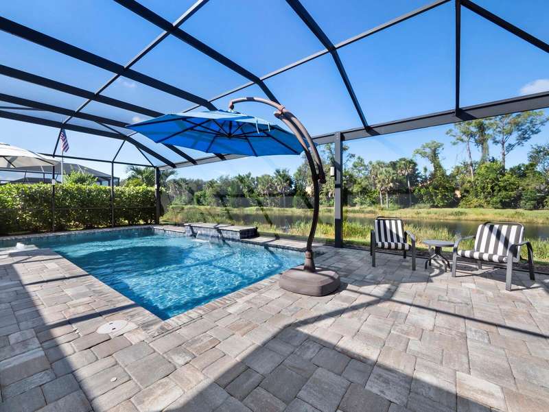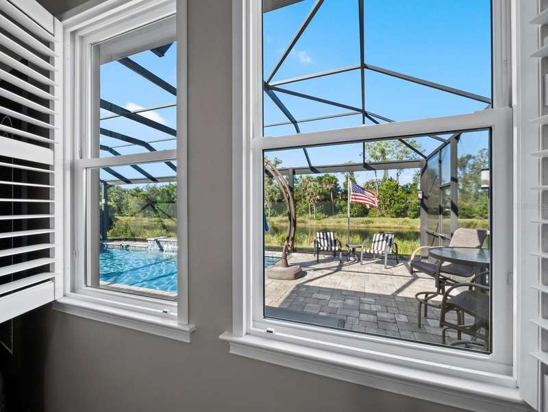 Under contract-accepting backup offers. Built in 2020, this West Indies-style home exudes sophistication with extensive upgrades and stunning natural light. Ideally situated on a lakefront home site, the property offers picturesque preserve and water views. Every high-end detail, meticulously completed in this gated Sunrise Preserve gem, offers immediate luxury upon arrival. The immaculate floor plan includes 2,261 sq. ft. of thoughtfully designed living space, featuring 3 bedrooms, 3 bathrooms, a pool, and 3-car split garage with epoxy floors and upgraded paver driveway. Lush, tropical landscaping accented by hard wired LED lights provide impressive curb appeal. The welcoming front entrance sets the stage leading into the home with commanding views. Upon entering through the striking glass front door, the tone is set for the entire space. The large interior open layout features 9-10 ft ceilings paired with tray ceilings and crown molding, adding to the sense of spacious elegance. Plank tile floors flow throughout the home, complemented by tasteful designer touches such as upgraded light fixtures, plantation shutters, custom storage closets, and ceiling fans. Adjacent to the great room, a gourmet kitchen includes sleek cabinets, upgraded stainless steel appliances, and a generous walk-in pantry with a frosted glass door. Premium quartz countertops extend to a spacious island featuring an upgraded kitchen sink for both style and practicality. The dining room seamlessly blends entertaining with amazing outdoor views. The screened-in lanai enhanced with additional lighting, creates an appealing transition from the great room through the hurricane impact sliding door. Step outside to the custom saltwater pool complete with colored lights, fountain bubbler, motorize sunshade, and a one-sided automatic privacy screen. A pool lounge area atop pavers and a summer outdoor kitchen completes this idyllic space for relaxing while enjoying tranquil lake views. The spacious primary suite features a well-appointed bathroom, with a large walk-in custom closet. Highlights of this luxurious en-suite bath include split dual vanities, premium granite countertops, and large walk-in shower with a bench. The split floor plan provides two additional bedrooms with custom closets and spa-like baths. The third bedroom can easily transform into an office with the custom desk, adding versatility to the home. The spacious laundry room designed for convenience, offering a barn door with frosted glass, lower cabinets with a utility sink, and two storage closets. Further upgrades include impact windows, hard-wired security package with two cameras, split AC systems, whole house natural gas generator, house surge protector, a 5.1 surround sound system, and a freshly painted interior (2023). The HOA fee includes complete landscape maintenance. Situated in the Gated Sunrise Preserve at Palmer Ranch, residents enjoy an affluence of amenities that exemplify resort-style living. These include a large clubhouse with a fitness center, yoga room, a spectacular heated pool and spa, bar lounge area, bocce ball, tennis courts, and more. This community is conveniently located near fabulous Gulf beaches, shopping, fine dining, medical facilities, and top-rated schools, providing a truly upscale living experience.