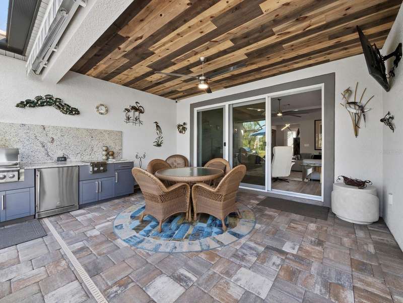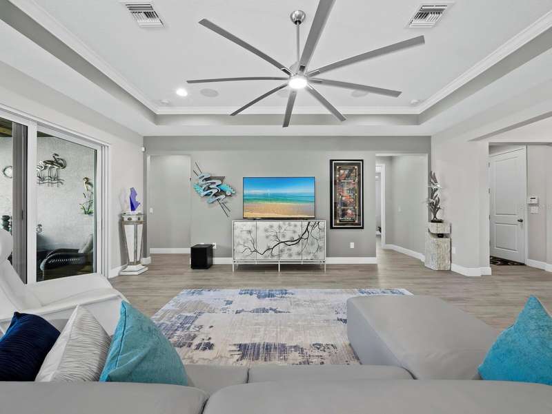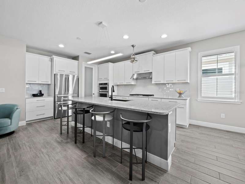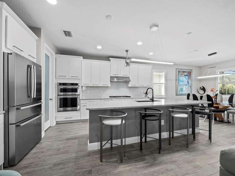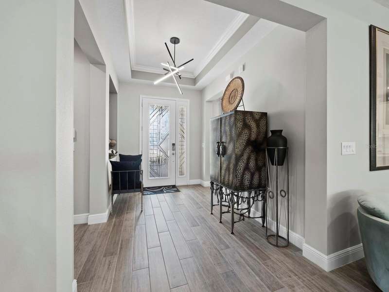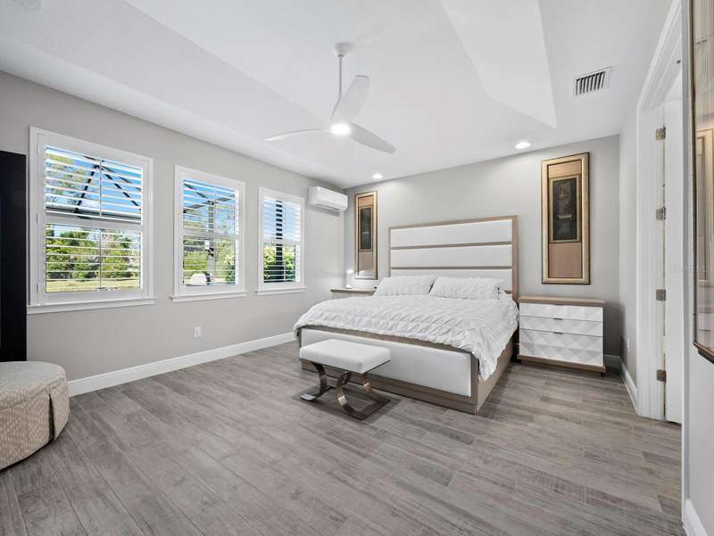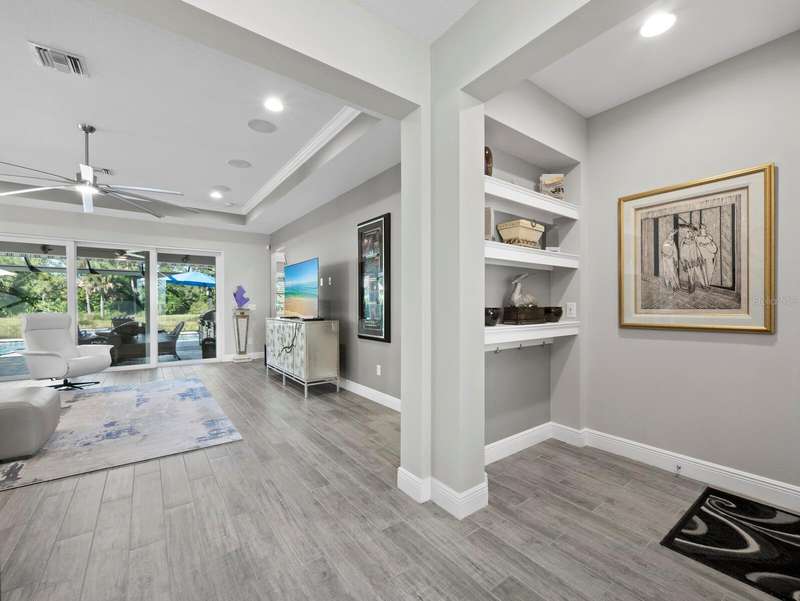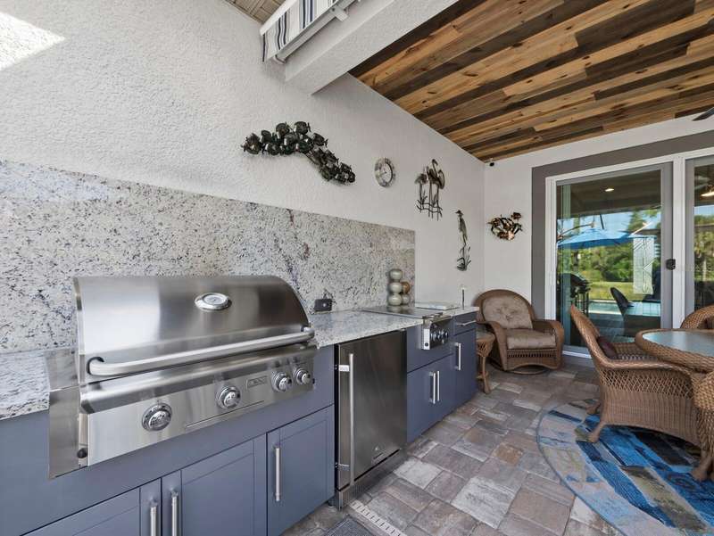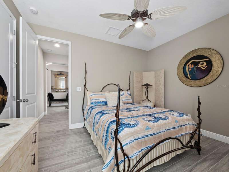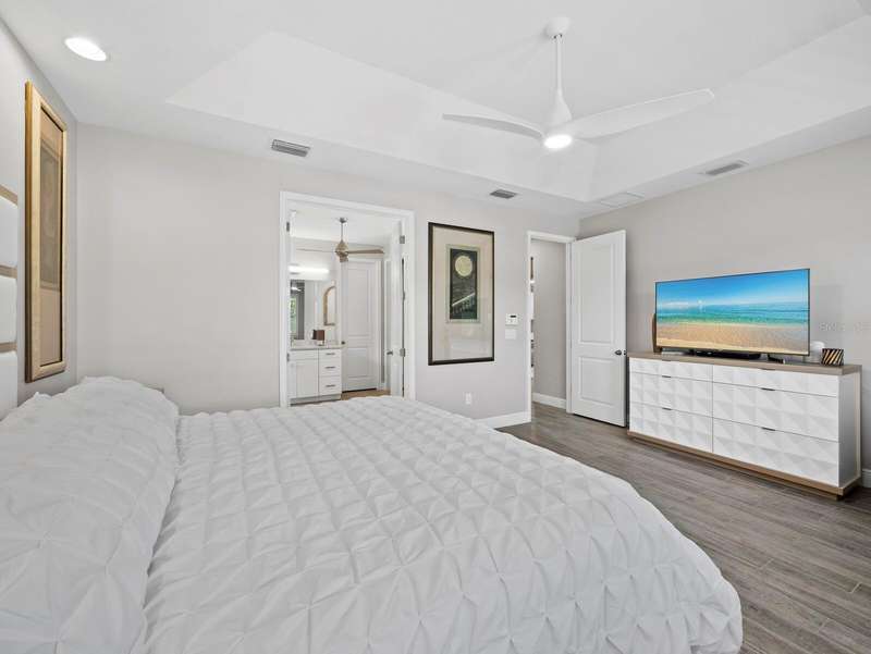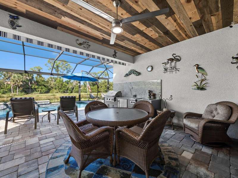 Under contract-accepting backup offers. Built in 2020, this West Indies-style home exudes sophistication with extensive upgrades and stunning natural light. Ideally situated on a lakefront home site, the property offers picturesque preserve and water views. Every high-end detail, meticulously completed in this gated Sunrise Preserve gem, offers immediate luxury upon arrival. The immaculate floor plan includes 2,261 sq. ft. of thoughtfully designed living space, featuring 3 bedrooms, 3 bathrooms, a pool, and 3-car split garage with epoxy floors and upgraded paver driveway. Lush, tropical landscaping accented by hard wired LED lights provide impressive curb appeal. The welcoming front entrance sets the stage leading into the home with commanding views. Upon entering through the striking glass front door, the tone is set for the entire space. The large interior open layout features 9-10 ft ceilings paired with tray ceilings and crown molding, adding to the sense of spacious elegance. Plank tile floors flow throughout the home, complemented by tasteful designer touches such as upgraded light fixtures, plantation shutters, custom storage closets, and ceiling fans. Adjacent to the great room, a gourmet kitchen includes sleek cabinets, upgraded stainless steel appliances, and a generous walk-in pantry with a frosted glass door. Premium quartz countertops extend to a spacious island featuring an upgraded kitchen sink for both style and practicality. The dining room seamlessly blends entertaining with amazing outdoor views. The screened-in lanai enhanced with additional lighting, creates an appealing transition from the great room through the hurricane impact sliding door. Step outside to the custom saltwater pool complete with colored lights, fountain bubbler, motorize sunshade, and a one-sided automatic privacy screen. A pool lounge area atop pavers and a summer outdoor kitchen completes this idyllic space for relaxing while enjoying tranquil lake views. The spacious primary suite features a well-appointed bathroom, with a large walk-in custom closet. Highlights of this luxurious en-suite bath include split dual vanities, premium granite countertops, and large walk-in shower with a bench. The split floor plan provides two additional bedrooms with custom closets and spa-like baths. The third bedroom can easily transform into an office with the custom desk, adding versatility to the home. The spacious laundry room designed for convenience, offering a barn door with frosted glass, lower cabinets with a utility sink, and two storage closets. Further upgrades include impact windows, hard-wired security package with two cameras, split AC systems, whole house natural gas generator, house surge protector, a 5.1 surround sound system, and a freshly painted interior (2023). The HOA fee includes complete landscape maintenance. Situated in the Gated Sunrise Preserve at Palmer Ranch, residents enjoy an affluence of amenities that exemplify resort-style living. These include a large clubhouse with a fitness center, yoga room, a spectacular heated pool and spa, bar lounge area, bocce ball, tennis courts, and more. This community is conveniently located near fabulous Gulf beaches, shopping, fine dining, medical facilities, and top-rated schools, providing a truly upscale living experience.