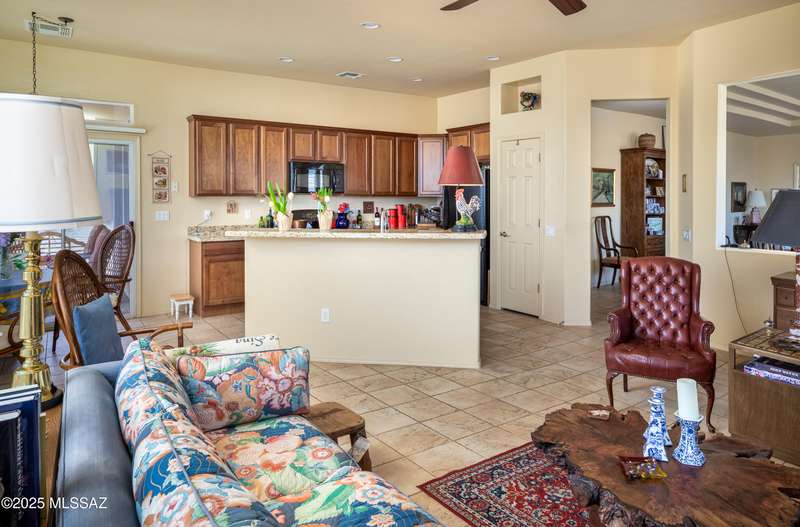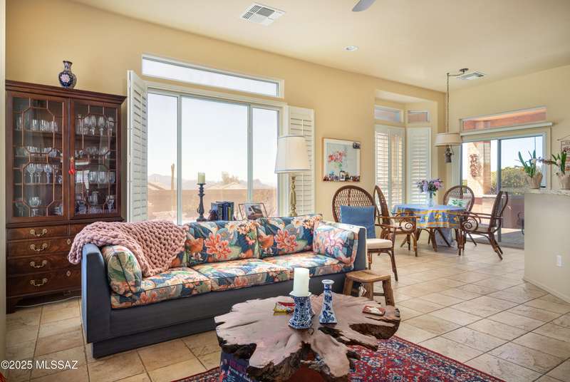 Popular Medford floor plan in the Highlands at Dove Mountain has 2061 sq ft & located on a large view lot. 2Br/2Ba + oversized den w/ bay window & double doors, living room, dining room, a guest bedroom, guest bath & laundry room. The Large Primary Bedroom Suite includes 2 walk in closets and a fabulous primary bath with separate tub & shower. The spacious family room off the entertainer's kitchen includes granite counter tops, extended maple cabinetry w/under cabinet lighting. All appliances are included. Plantation shutters throughout. Ceramic tile, steel security front door. Beautiful 10,454 sf lot includes a backyard with firepit, spacious patio with a built in outdoor grill and great views of the mountains. Call today for a personal showing.