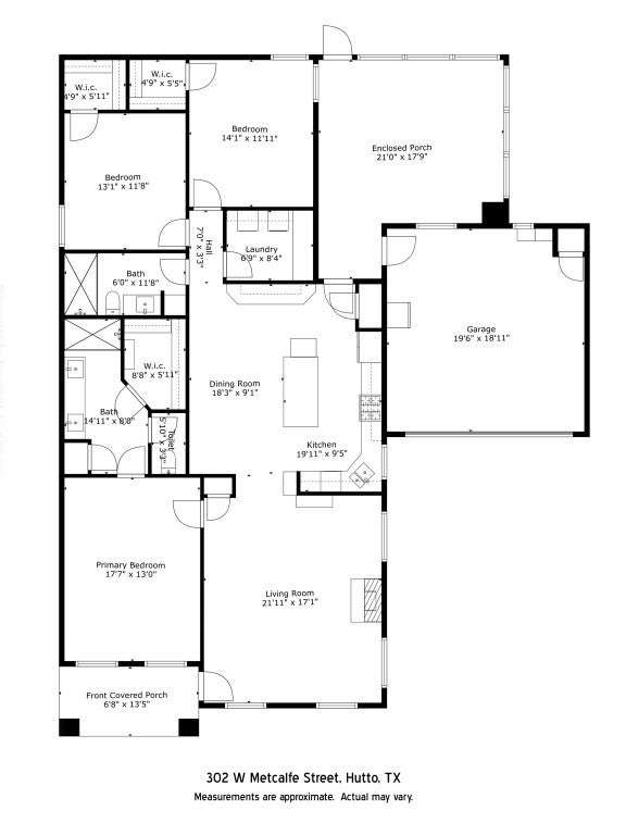This 3 bedroom 2 bath home in downtown Hutto is finally available for new owners. The sellers bought this home as a new build and have never moved. They have loved living here and pride of ownership definitely shows. The living room has hand scraped hardwood and a gas fireplace. The kitchen offers white shaker cabinets, granite countertops, stainless appliances, large island and a coffee bar. The master bath has a walk in shower, walk in closet and a linen closet. Laundry room has a folding area. This home offers a sun room just off of the kitchen. Easy access to Highway 79 and the Toll. Restaurants and shops in close proximity to 302 W Metcalfe. There are so many upgrades including a Generator. Sellers would like to sell this home fully furnished. Don't miss this hidden gem in downtown Hutto.