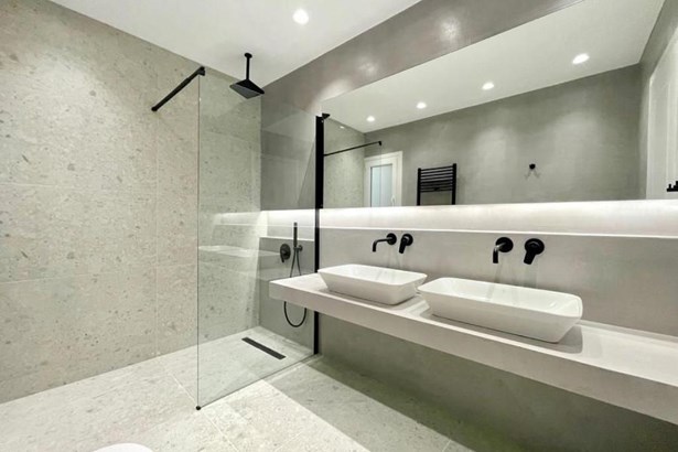 For optimal comfort, the apartment is equipped with air conditioning units and independent gas heating, allowing you to regulate the temperature according to your preferences. Additionally, hidden lighting fixtures create a warm and inviting atmosphere throughout the apartment.