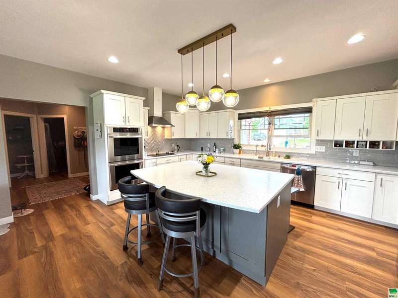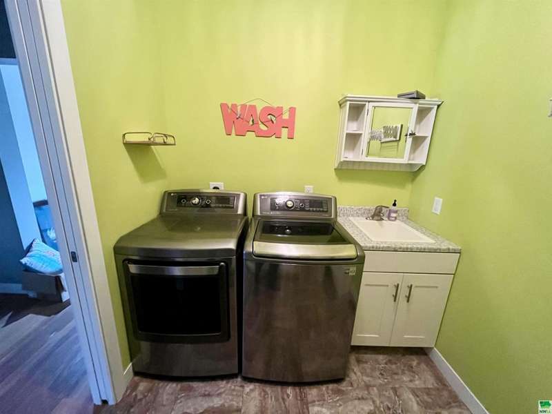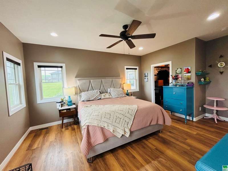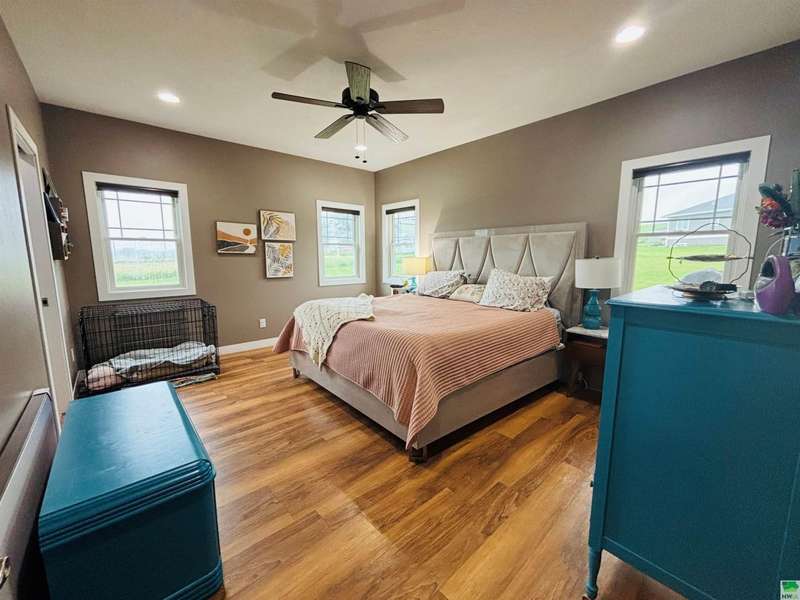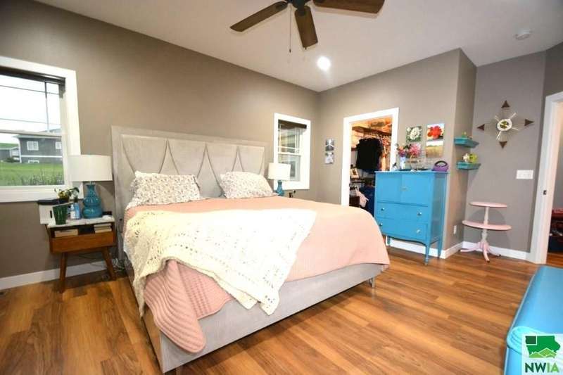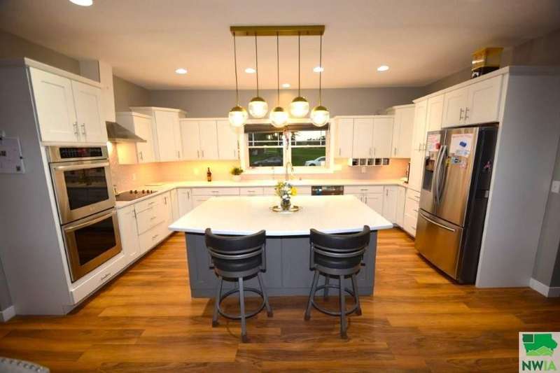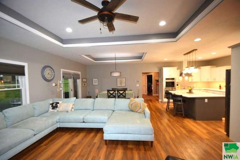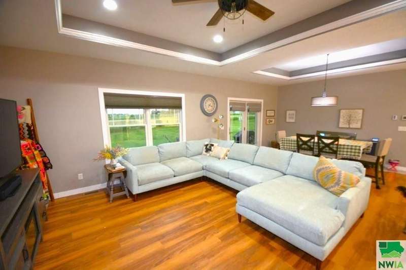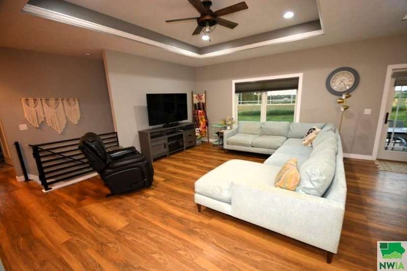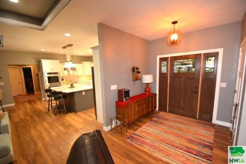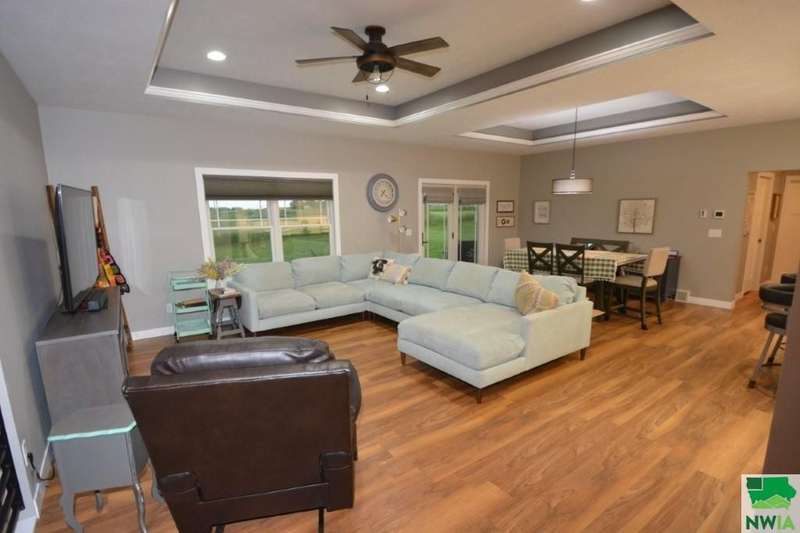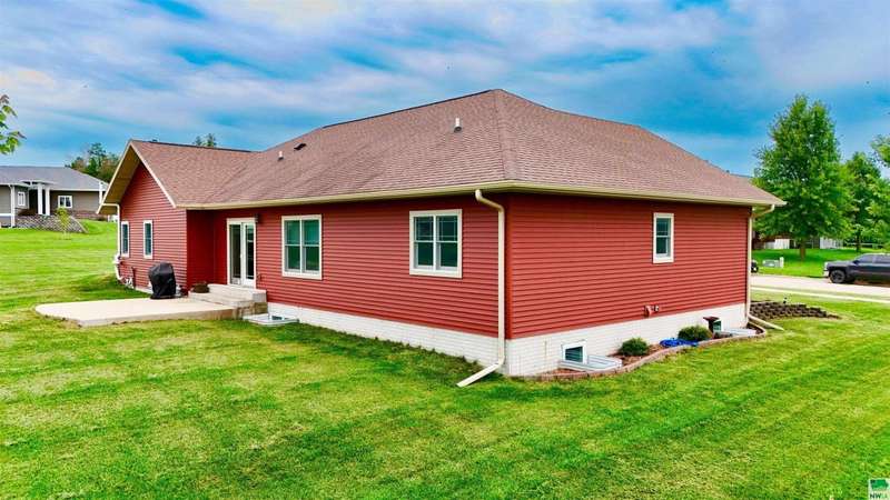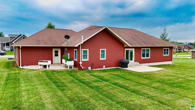 This beautifully designed zero~entry ranch home offers the perfect combination of comfort, accessibility, and efficiency. With five bedrooms?including a private master suite?and thoughtful upgrades throughout, this home is move~in ready and ideal for a variety of lifestyles. Over sized three car garage is AMAZING for so much!! The open~concept main floor seamlessly connects the living room, dining area, and kitchen, creating a bright, welcoming space for everyday living and entertaining. The private master suite is located on one side of the home and features an en~suite bathroom with a jetted tub for ultimate relaxation. Two additional main~floor bedrooms are located on the opposite end, with one of the bedrooms currently used as an office, complete with a Murphy bed. Main~floor laundry adds ease to daily routines and has an additional toilet and sink. The main floor bathroom is located between the two bedrooms. The finished basement offers even more living space, including two additional bedrooms and a large entertainment area. Thoughtful features like heated floors, a dedicated tornado shelter and lots of additional storage ensures everything has its place. Built with trusses, the basement offers a wide open floor plan with no interior support posts, maximizing usable space and design!! This home is designed for efficiency and comfort, featuring an air~to~air exchange unit to maintain the cleanest air quality. A heat pump efficiently heats and cools the home, eliminating the need for an outdoor AC unit?everything is neatly housed in the utility room!! The water softener system, serviced by Bunkers out of Granville, means no more lugging heavy salt bags?salt is pumped in for ultimate convenience. Outside is landscaped, sprinkler system, a garden shed for additional storage and a large driveway!! Dont miss your chance to make it yours?schedule a showing today!! Note: Listing agent is seller and is licensed in IA, NE and SD..