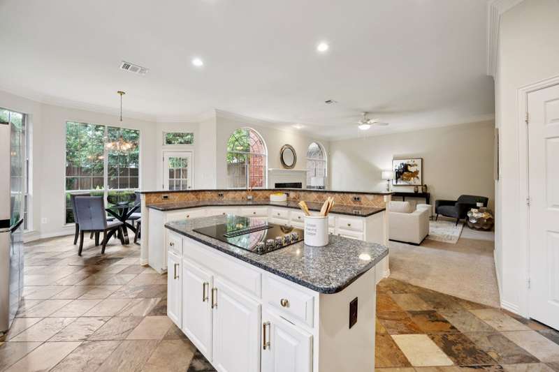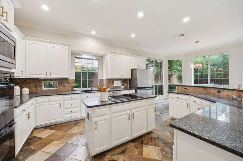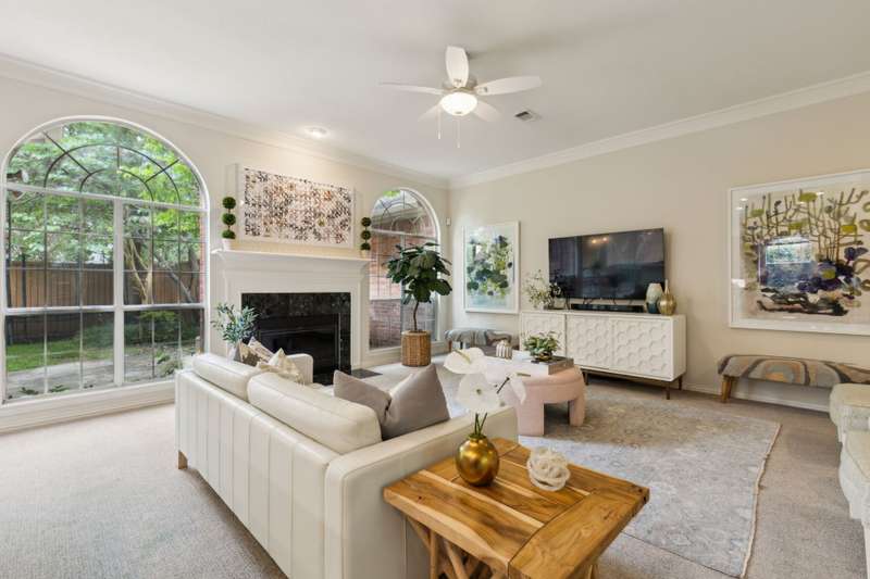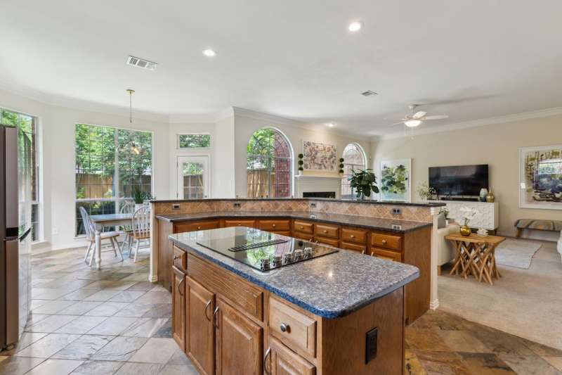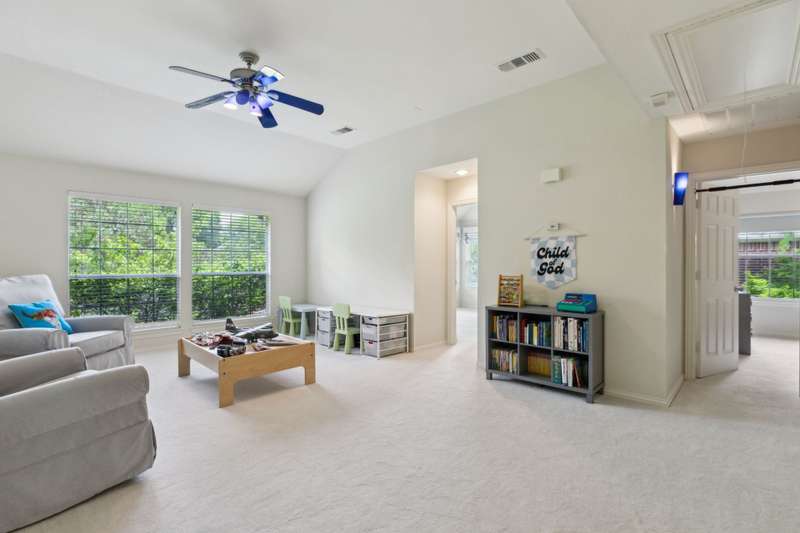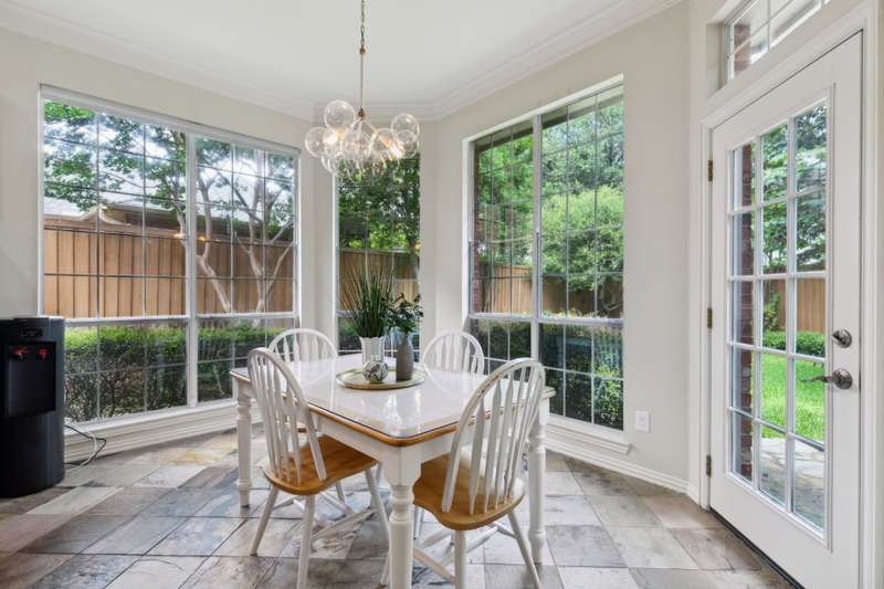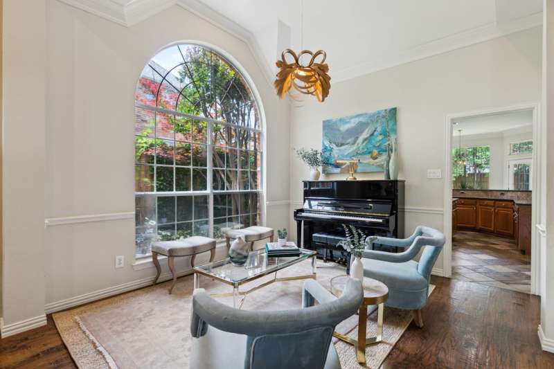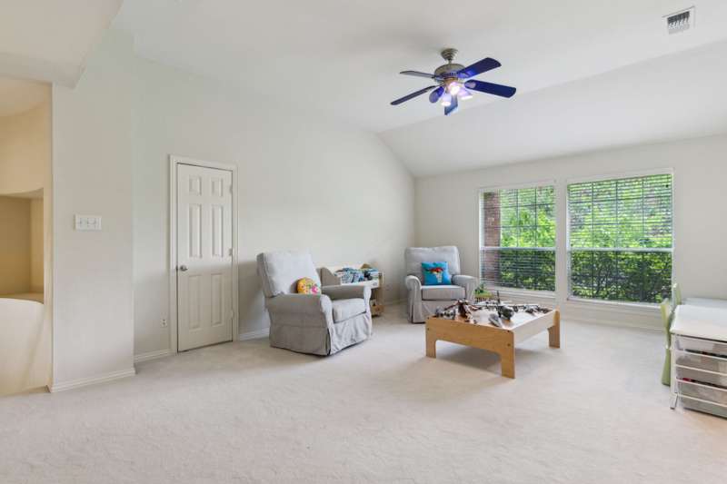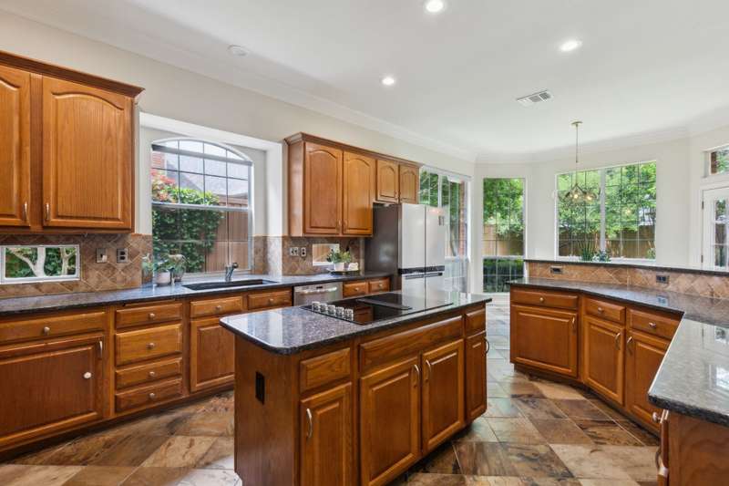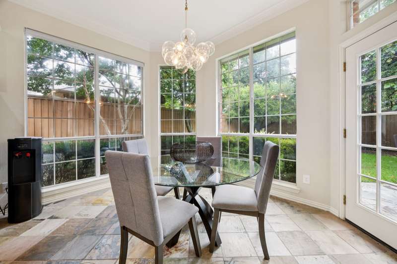 Stunning Plano Home with Abundant Natural Light, High Ceilings & Designer Finishes feeding to the coveted Barksdale Elementary! Step into this beautifully updated Plano residence where soaring ceilings and expansive windows flood the space with natural light. The grand entryway features a sweeping staircase and a sunlit formal living room, highlighted by dramatic windows and a striking modern chandelier. The formal dining room offers an elegant setting with scenic views of the landscaped front gardenperfect for hosting dinner parties and holiday gatherings. Adjacent, a spacious study with French doors, large windows, and a full bath offers flexibility to serve as a home office or easily convert into a private guest suite. The inviting family room boasts a wall of graceful arched windows and a luxurious marble fireplace, creating a cozy atmosphere with serene views of the lush backyard. The open-concept kitchen is ideal for entertaining, featuring an extended breakfast bar, center island with cooktop, and abundant cabinetry for storage. A bright breakfast nook surrounded by windows provides picturesque garden views and a charming chandelier for a touch of elegance. Retreat to the private and peaceful primary suite, filled with warm natural light and a cozy sitting area. The spa-inspired ensuite bath features a jetted garden tub, separate shower, dual vanities, and a spacious walk-in closet. Upstairs, an oversized game room offers treetop views and ample space for recreationwhether its a pool table, media setup, or home gym. Secondary bedrooms are generously sized, each with its own ensuite bath for ultimate comfort and privacy. Enjoy the tranquil backyard oasis, bordered by mature trees and a tall privacy fenceideal for a future pool, playset, or quiet outdoor living space. Nestled in a beautiful, tree-lined neighborhood, this home is just a short walk to upscale shopping and dining, Arbor Hills Nature Preserve, Coyote Creek Park, and Parr Library.