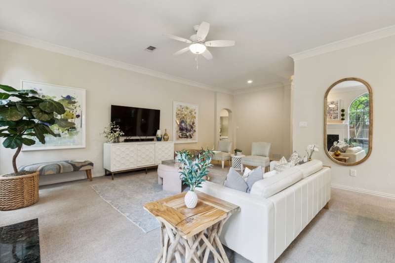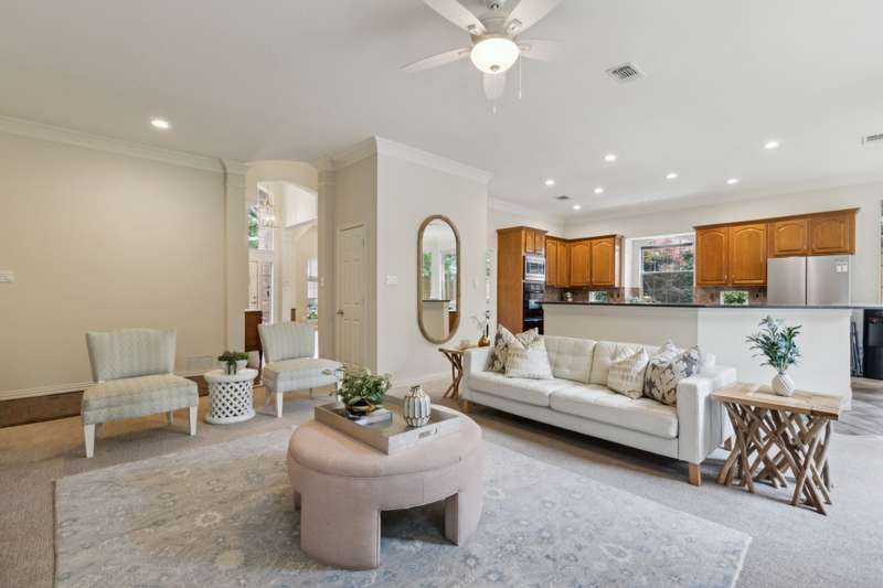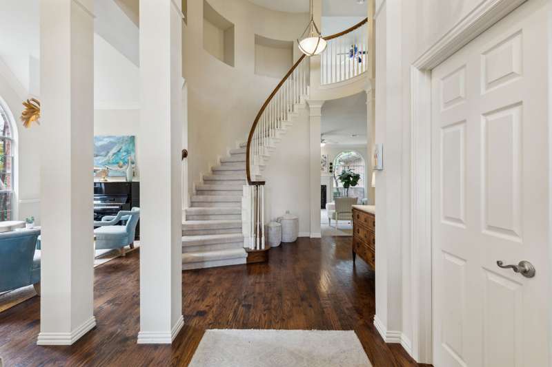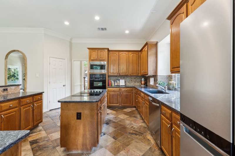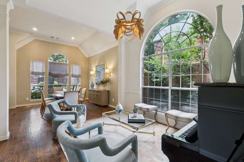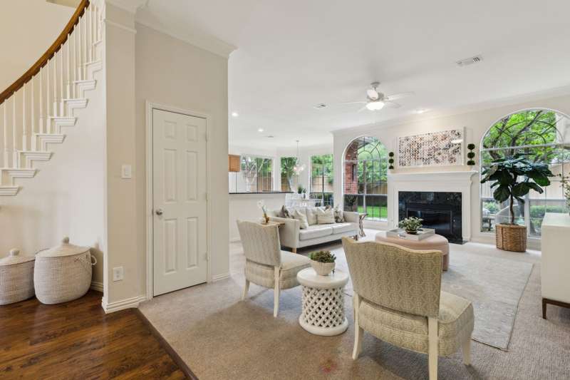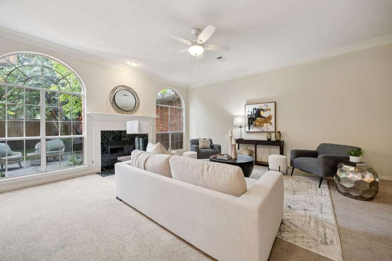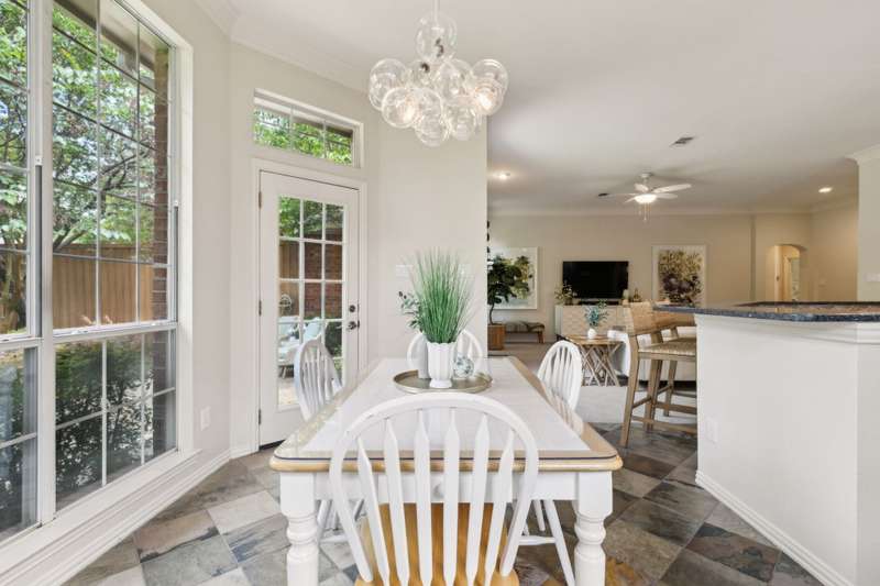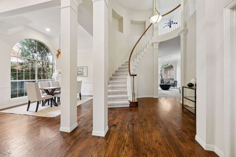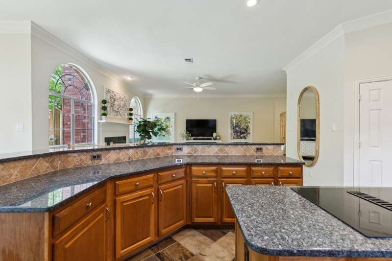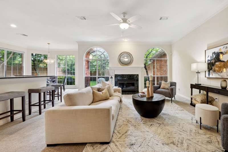 Stunning Plano Home with Abundant Natural Light, High Ceilings & Designer Finishes feeding to the coveted Barksdale Elementary! Step into this beautifully updated Plano residence where soaring ceilings and expansive windows flood the space with natural light. The grand entryway features a sweeping staircase and a sunlit formal living room, highlighted by dramatic windows and a striking modern chandelier. The formal dining room offers an elegant setting with scenic views of the landscaped front gardenperfect for hosting dinner parties and holiday gatherings. Adjacent, a spacious study with French doors, large windows, and a full bath offers flexibility to serve as a home office or easily convert into a private guest suite. The inviting family room boasts a wall of graceful arched windows and a luxurious marble fireplace, creating a cozy atmosphere with serene views of the lush backyard. The open-concept kitchen is ideal for entertaining, featuring an extended breakfast bar, center island with cooktop, and abundant cabinetry for storage. A bright breakfast nook surrounded by windows provides picturesque garden views and a charming chandelier for a touch of elegance. Retreat to the private and peaceful primary suite, filled with warm natural light and a cozy sitting area. The spa-inspired ensuite bath features a jetted garden tub, separate shower, dual vanities, and a spacious walk-in closet. Upstairs, an oversized game room offers treetop views and ample space for recreationwhether its a pool table, media setup, or home gym. Secondary bedrooms are generously sized, each with its own ensuite bath for ultimate comfort and privacy. Enjoy the tranquil backyard oasis, bordered by mature trees and a tall privacy fenceideal for a future pool, playset, or quiet outdoor living space. Nestled in a beautiful, tree-lined neighborhood, this home is just a short walk to upscale shopping and dining, Arbor Hills Nature Preserve, Coyote Creek Park, and Parr Library.