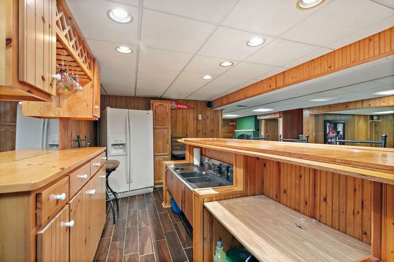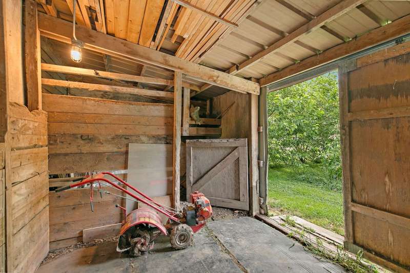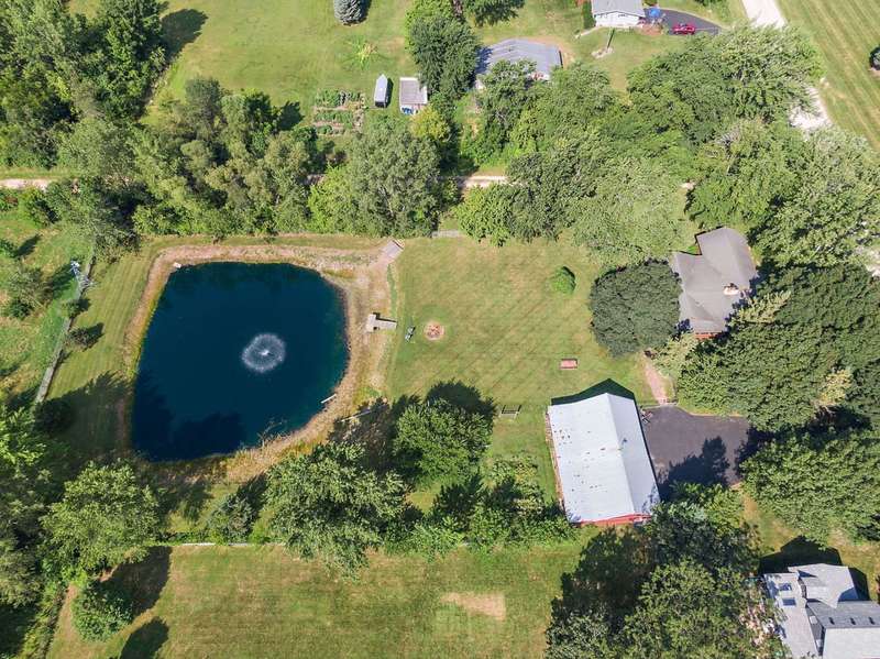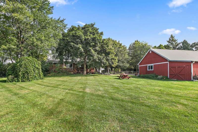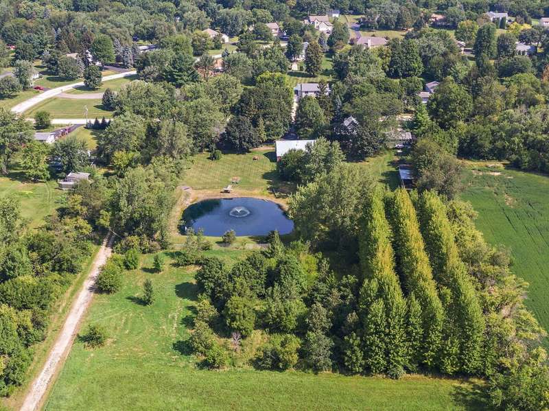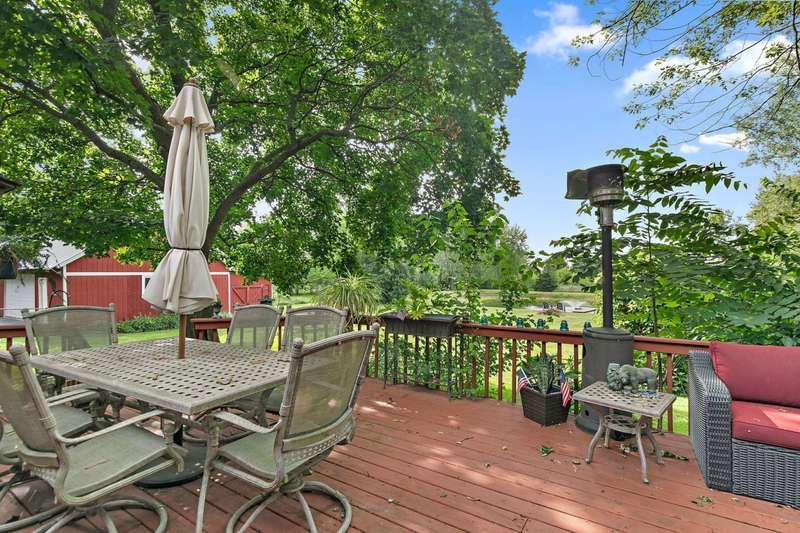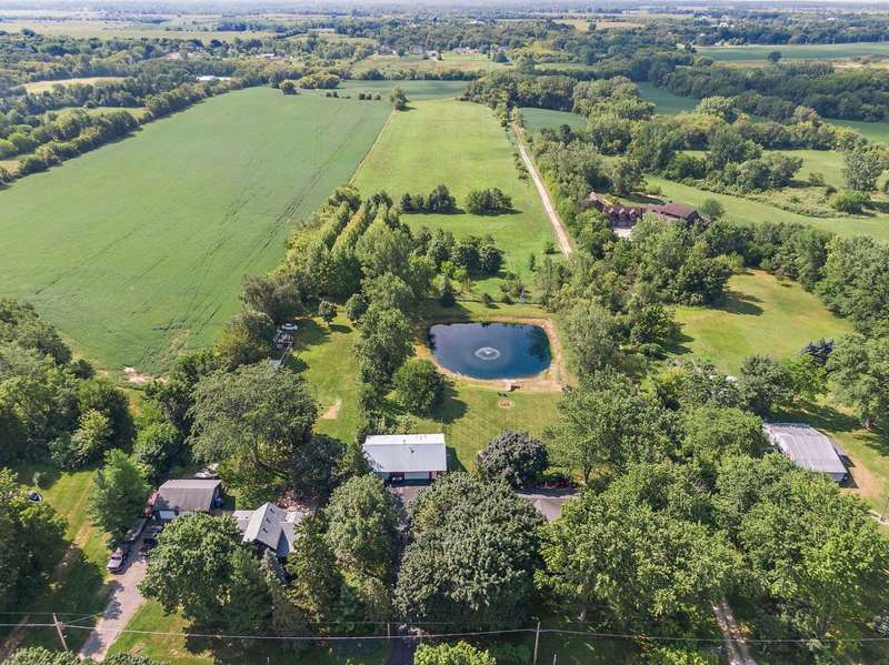 Rustic and authentic yet modern ranch home, this 3-bedroom, 2.1-bath log cabin offers the perfect blend of charm and comfort. The living and dining area features a stunning floor-to-ceiling stone fireplace, creating a warm and inviting atmosphere. The updated kitchen boasts a spacious island and custom cabinetry. Set on 4 acres with a stocked pond and mature trees, the property offers serene privacy. A partially fenced area adds functionality, while the 2-car detached garage includes an attached 2-stall barn with a tack room-perfect for equestrian enthusiasts or hobby farmers.