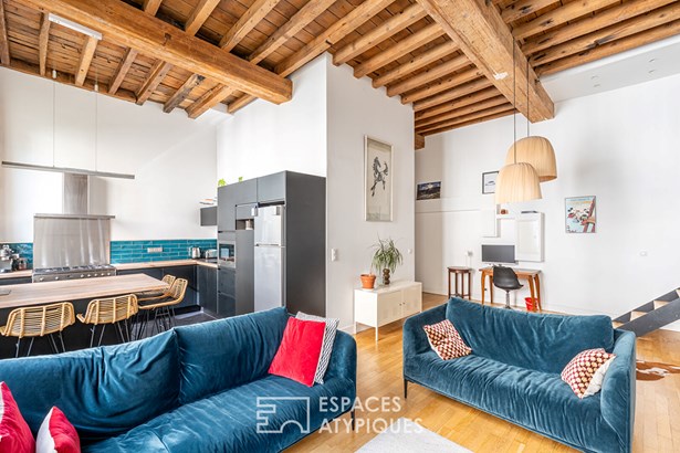 A stone's throw from the Saxe-Gambetta metro station, on a quiet side street, this superb old apartment, completely renovated in 2020, is located on the 2nd floor of a characterful building, within a secure condominium. With a surface area of 69 sqm Carrez (74 sqm usable), this favorite property combines the character of the old (exposed beams, workshop glass roof, high ceilings) with modern comfort.