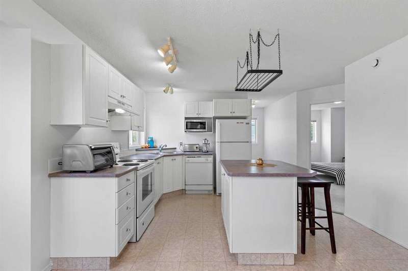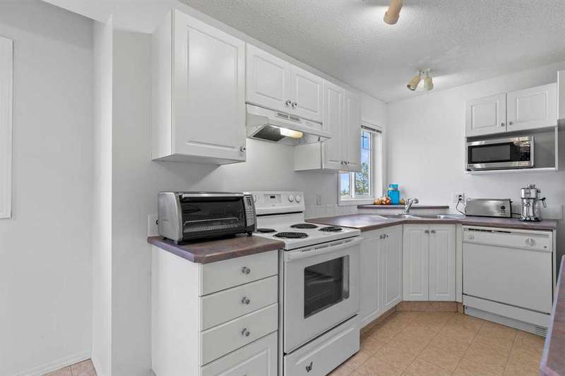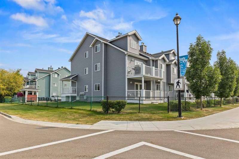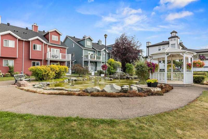 Discover the ultimate lake lifestyle in this bright and spacious 3 bedroom, 2 bathroom townhouse just steps from the lake, marina, golf course, and vibrant Lakeshore Drive amenities. Perfect as a weekend retreat, full-time residence, or investment property. The main floor welcomes you with an open-concept layout, featuring a well-appointed kitchen, dining area, and a soaring living room with cathedral ceilings and cozy gas fireplace. Two bedrooms on this level share a 4-piece bath, with one offering a walkthrough closet and convenient cheater ensuite access. Upstairs, the loft-style primary suite is filled with natural light and offers dual closets plus a private ensuite with jetted tub and separate shower — a true retreat. Enjoy the convenience of your own parking stall right outside the front door, along with plenty of visitor parking. Condo fees of $493/month cover exterior maintenance, professional management, common areas, and garbage removal, ensuring a worry-free lifestyle. The seller is open to including some furnishings and household items, making this a move-in ready, turnkey opportunity. Don’t miss your chance to experience affordable lakeside living with endless recreational opportunities right at your doorstep!