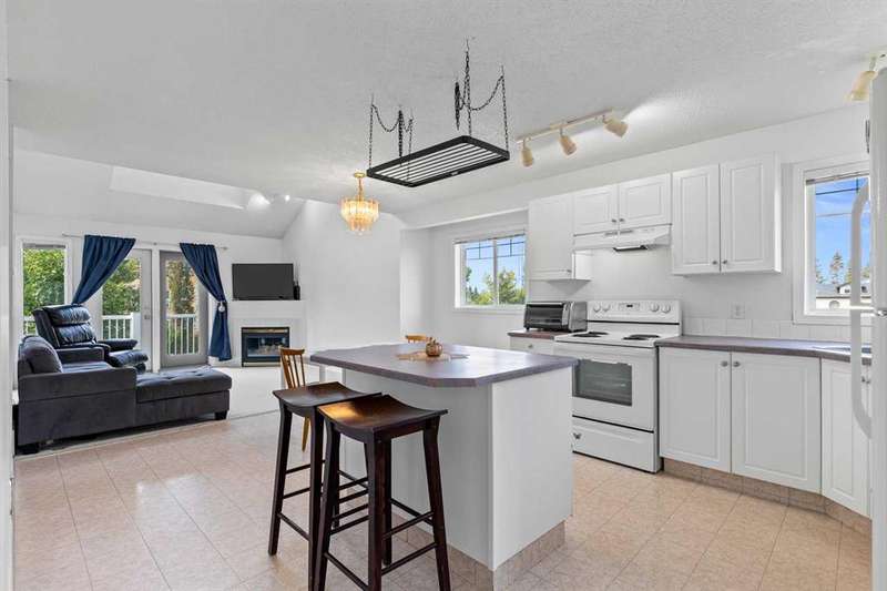 Discover the ultimate lake lifestyle in this bright and spacious 3 bedroom, 2 bathroom townhouse just steps from the lake, marina, golf course, and vibrant Lakeshore Drive amenities. Perfect as a weekend retreat, full-time residence, or investment property. The main floor welcomes you with an open-concept layout, featuring a well-appointed kitchen, dining area, and a soaring living room with cathedral ceilings and cozy gas fireplace. Two bedrooms on this level share a 4-piece bath, with one offering a walkthrough closet and convenient cheater ensuite access. Upstairs, the loft-style primary suite is filled with natural light and offers dual closets plus a private ensuite with jetted tub and separate shower — a true retreat. Enjoy the convenience of your own parking stall right outside the front door, along with plenty of visitor parking. Condo fees of $493/month cover exterior maintenance, professional management, common areas, and garbage removal, ensuring a worry-free lifestyle. The seller is open to including some furnishings and household items, making this a move-in ready, turnkey opportunity. Don’t miss your chance to experience affordable lakeside living with endless recreational opportunities right at your doorstep!