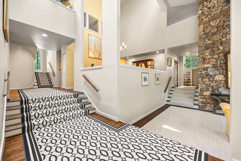 Nestled on 3.85 acres in the prestigious Pellyn Wood community near Myers Park, this extraordinary estate offers an unmatched blend of natural beauty and sophisticated design. A private pond with a walking trail and fountain creates a serene backdrop, while multiple outdoor living spaces ? including a screened porch, deck, fire pit, and hot tub ? invite year-round enjoyment. Inside, the home boasts a unique and thoughtfully designed floorplan with expansive living and entertaining areas, a wine cellar with caf?-style seating, and abundant storage throughout. The main-level primary suite features dual private closet corridors, each with built-in cabinetry and vanity space, leading to a luxurious shared shower. The home's five bedrooms, 3 full baths, 2 half baths, and versatile spaces?including a solarium, loft, and recreation room?offer a perfect balance of privacy and places to gather. The kitchen is appointed with a large island, breakfast bar, double ovens, and warming drawer, seamlessly blending style and functionality. A rare offering for those seeking exceptional craftsmanship, natural surroundings, and refined living.