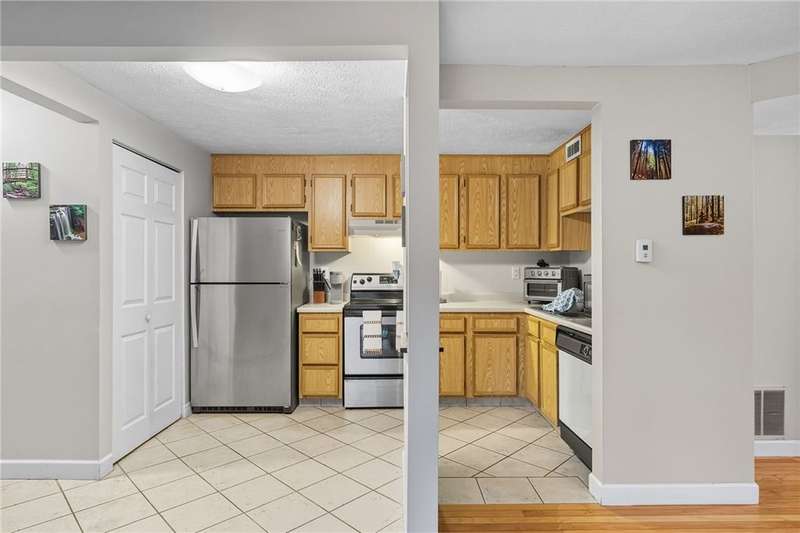 Welcome to this inviting two-bedroom, one-bath home in Plum Borough, ideally located just minutes from Oakmont, where you'll enjoy vibrant restaurants, boutique shopping, and unmatched walkability. Step inside to find a bright, open kitchen and living room concept featuring hardwood flooring in the living room, newer carpeting, and stainless steel appliances that add style and convenience. With common parking and a low-maintenance fee, this home offers ease of living in a location that's hard to beat. Whether you're a first-time buyer, downsizing, or seeking a smart investment, this property perfectly blends location, comfort, and value. Enjoy the convenience of in home laundry room as well.
