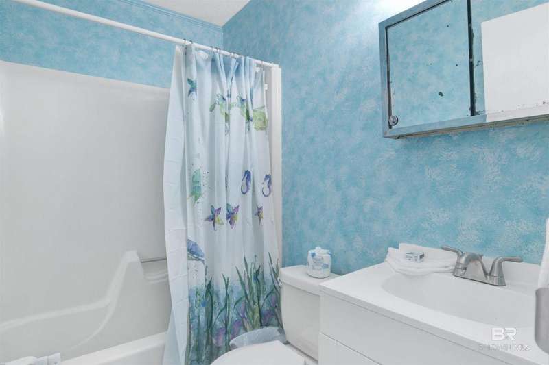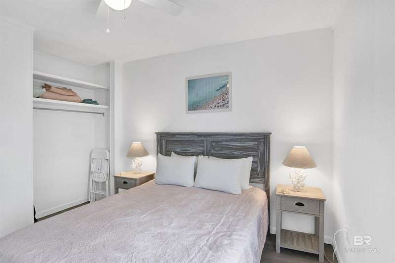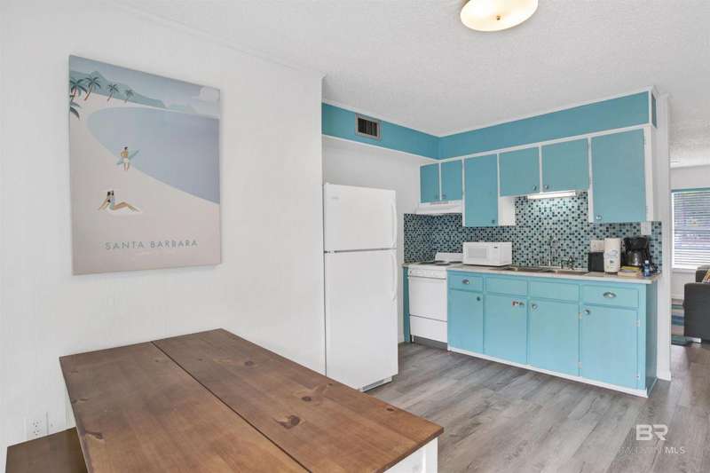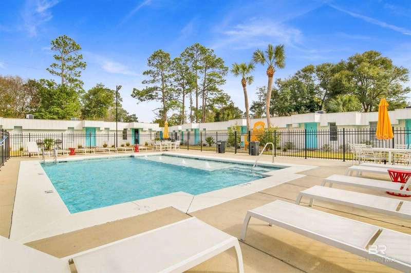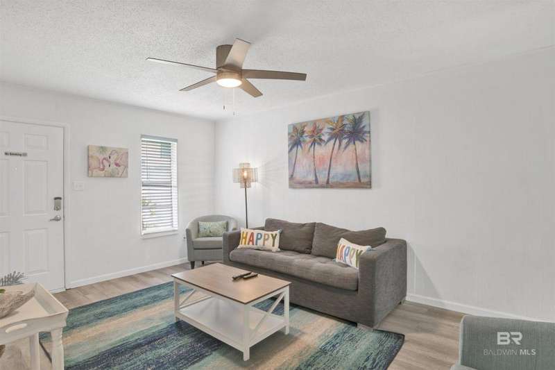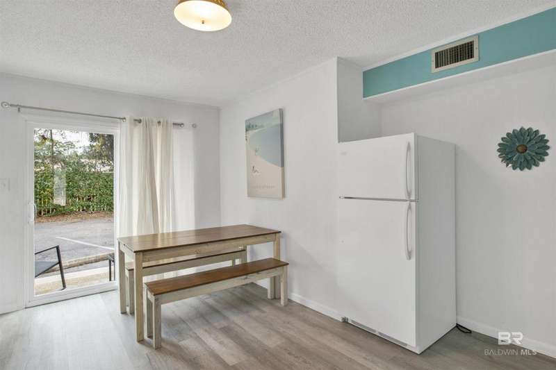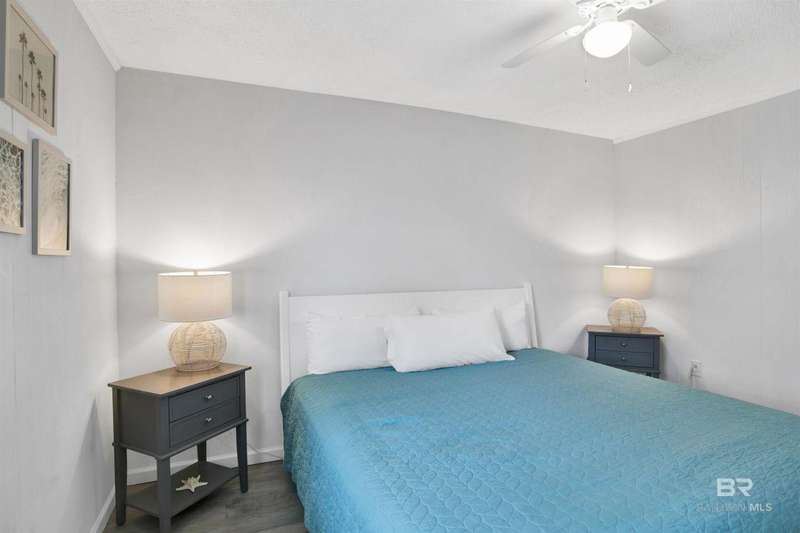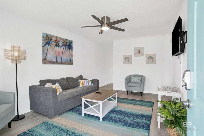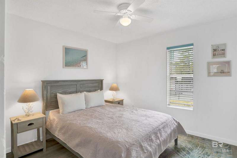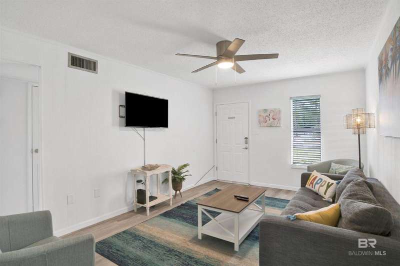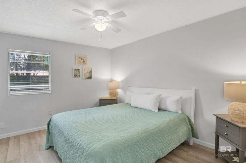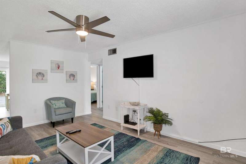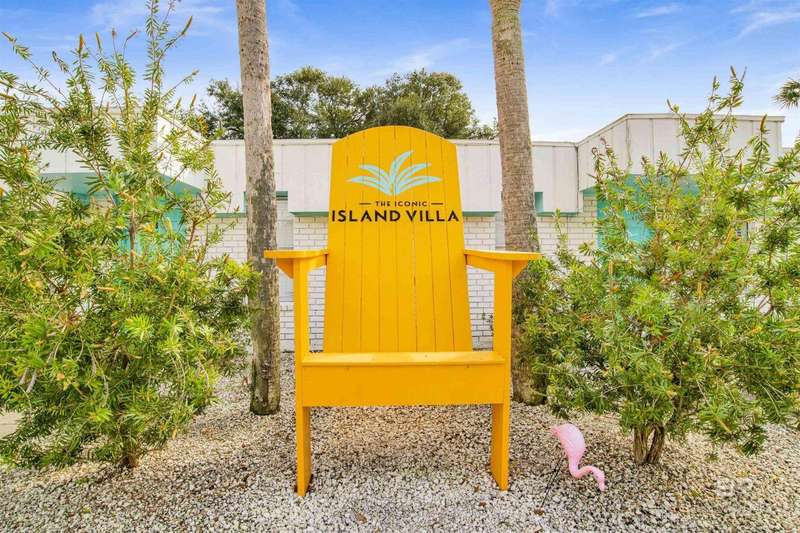 This is a rare opportunity to own a second home, investment property, or primary residence at an affordable value at the iconic Island Villa. This is the first converted short-term rental property in the new Waterway Village District. The location is ideal and you are in themiddle of it all: 5 minutes to the white sandy beaches, within walking distance of the State Park Trails and minutes to local coffee shop, yoga studio, eclectic shopping, dining and entertainment. There are at least 8 restaurants within easy walking distance, not to mention Gulf Shores' only Brewery. The new Pedestrian Bridge over the Intracoastal Waterway is an easy walk away, and will be a game-changer for The Waterway Village District. The interior and exterior of the iconic Island Villa hasbeen totally renovated. The complex has a new roof, landscaping, and a new iconic pool. This ground floor unit has been beautifully updated with features that include new LVP flooring throughout, new lighting fixtures, new ceiling fans, new HVAC inside and outside, and is fully furnished down to the cookware and utensils (rent-ready). The bright, coastal color theme in the kitchen has a tiled backsplash and dining area with sliding glass doors that open to the patio. This 2-bedroom condo can comfortably sleep 6 people with a queen bed in the guestroom, a king bed in the primary bedroom, and a queen sleeper sofa in the living room. Each unit has a view of the sparkling pool, access to laundry and ice machine facilities as well as the BBQ/grill area. Buyer to verify all information during due diligence.