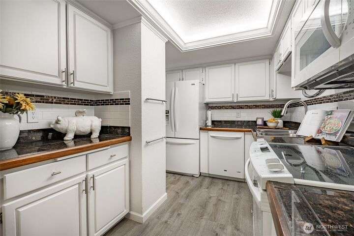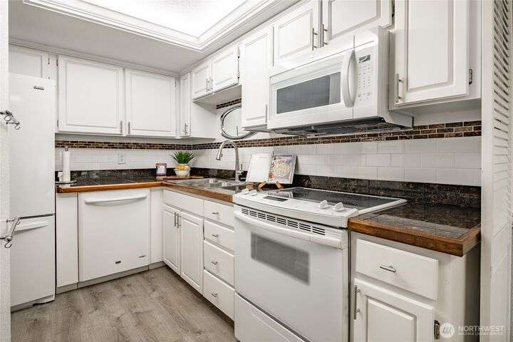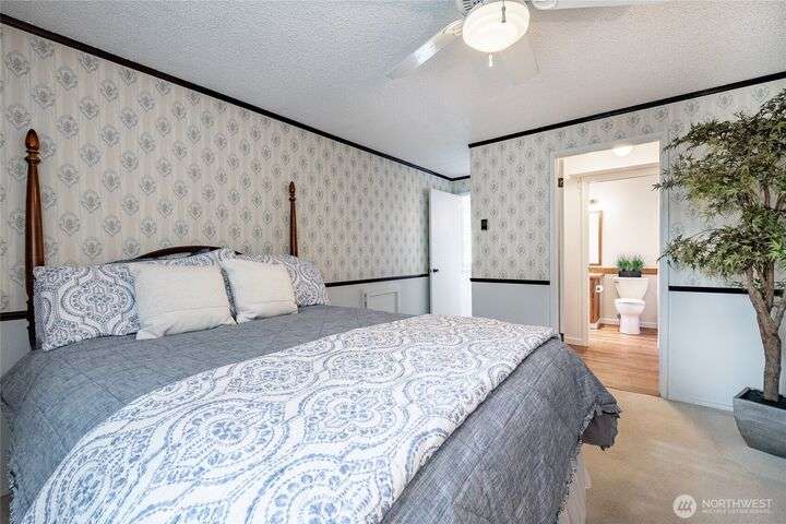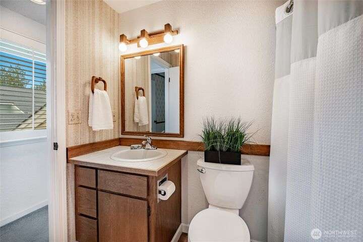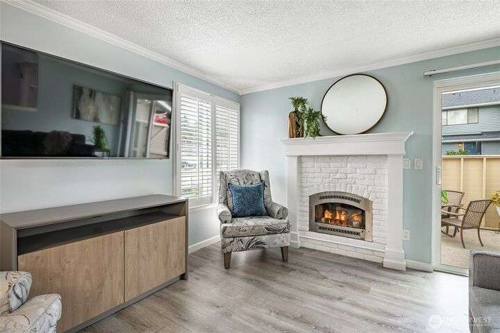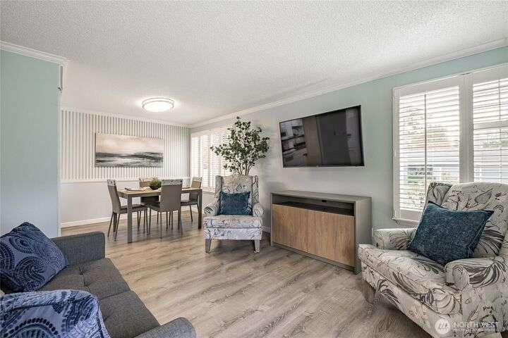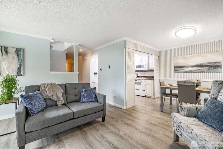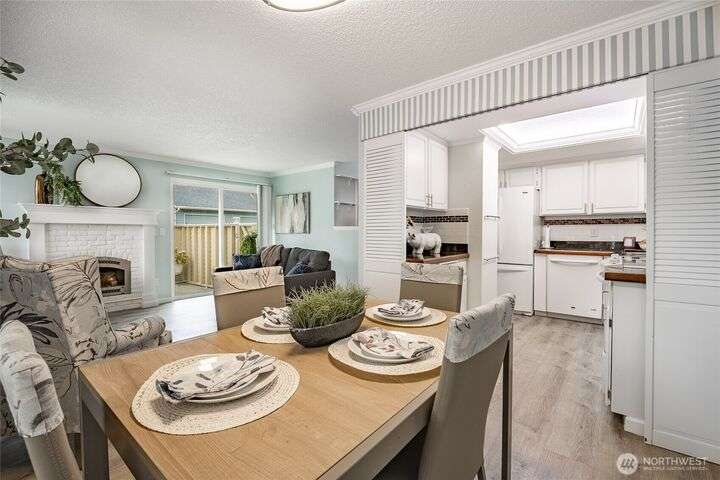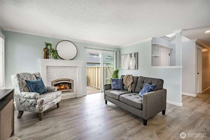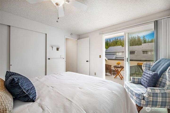 Recently updated end-unit in desirable Northridge Estates! Light-filled 2BR + den floor plan features generous great room opening to private, gated patio. Remodeled kitchen w/ newer appliances & plantation shutters makes this truly turn-key. Attached 1-car garage offers direct, secure home entry. Efficient radiant floor heat throughout & newer gas fireplace keep the main level cozy & affordable. Upstairs you’ll find two large bedrooms, great storage, & private deck. HOA covers water, sewer, garbage, internet/cable, landscaping & more, plus access to fantastic community amenities: clubhouse, heated indoor pool, sauna & sport court. Convenient Mount Vernon location in a quiet, park-like setting, plus true affordability in today’s market.