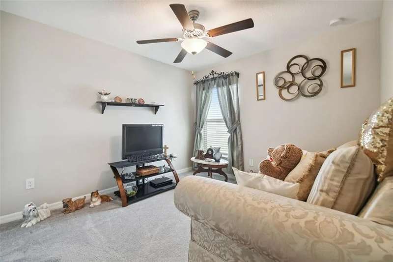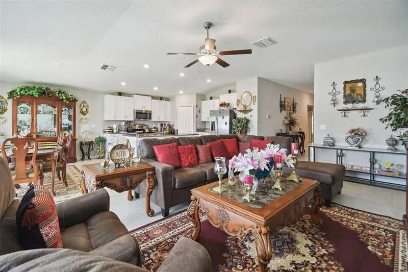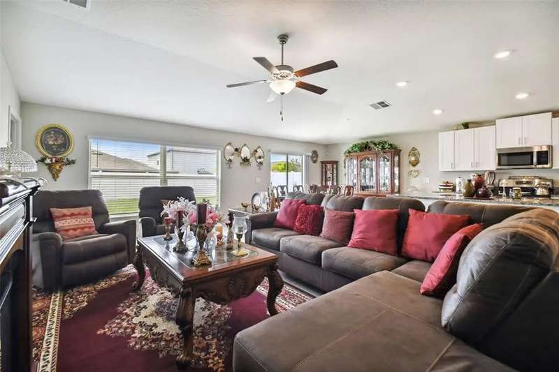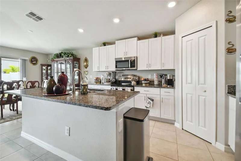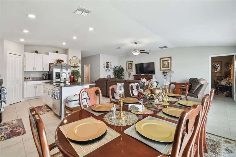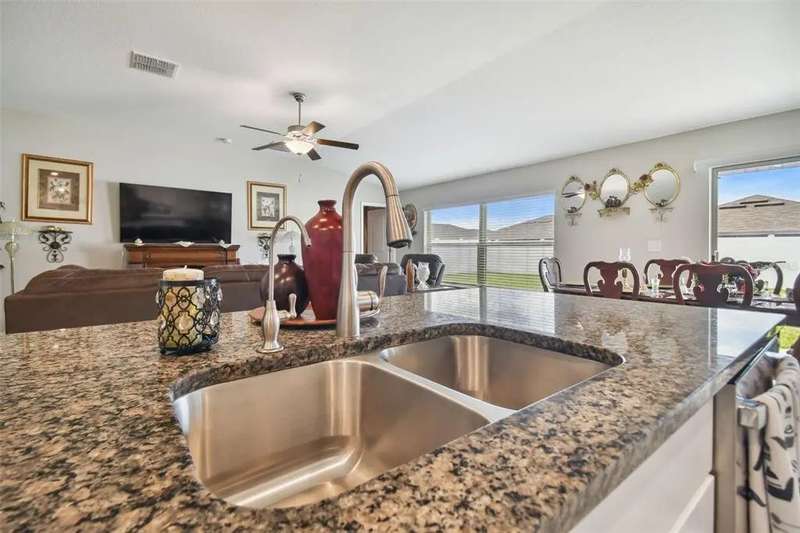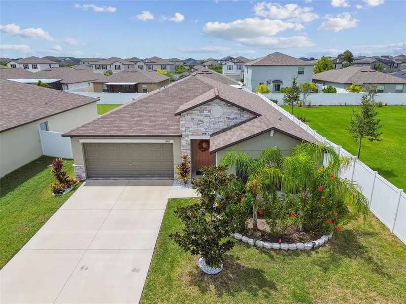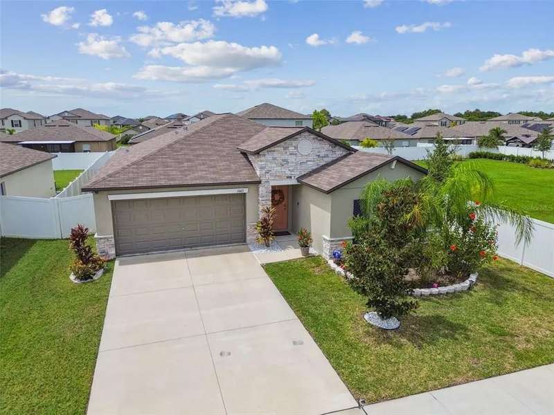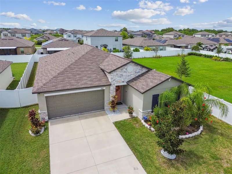 Check out this amazing 4-bedroom, 2-bathroom home in South Fork, built in 2021. The open-concept kitchen, living room, and dining room have beautiful tile flooring throughout the main living space. To the right of the entrance, there are three bedrooms and a full bathroom, which offers privacy with a split floor plan. Further down the hallway, there's a large laundry room with access to the 2-car garage. The kitchen features lovely 42" cabinetry, granite countertops, and a spacious island perfect for entertaining. The living and dining room combination is versatile, with a sliding door leading to the fully fenced yard. The yard is private and has enough space for a pool or playset, Adjacent to the living room is the spacious owner's suite with an ensuite bathroom that includes a double vanity, walk-in shower, huge walk-in closet, and a separate linen closet. This home is move-in ready and ready for your personal touch. Additionally, the South Fork community offers a great pool and playground. The location is convenient, just minutes from 301 and I-75, providing easy access to Downtown Tampa, the Gulf Beaches, and the greater Tampa Bay area. Don't miss out on this opportunity – schedule a visit this weekend!