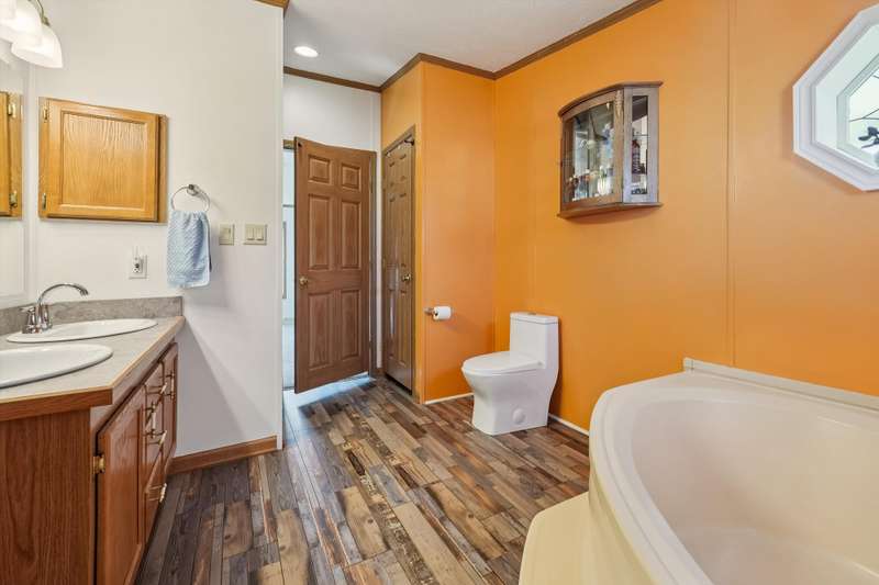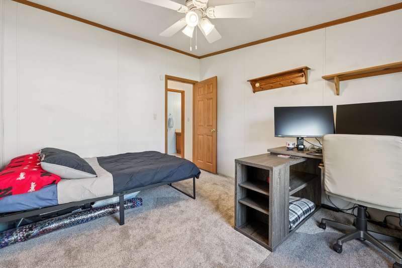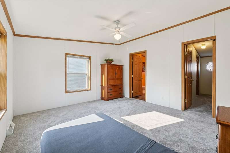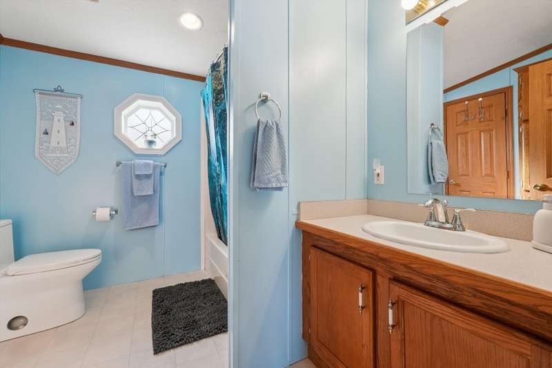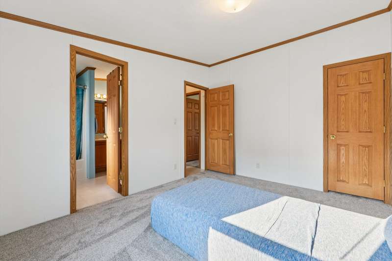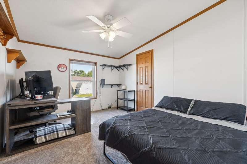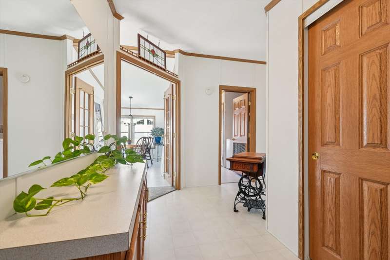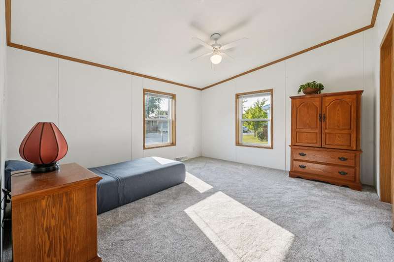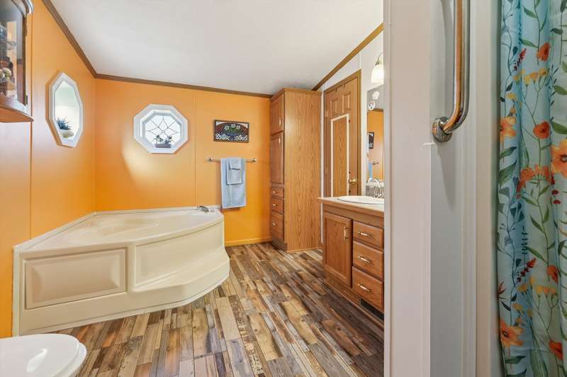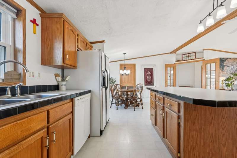 Wonderfully maintained home with an oversized garage. Enjoy the deck with ramp access & a charming gazebo with curtains. The spacious entryway welcomes you & around the corner is the bright & cheery living area with vaulted ceilings & open layout. The spacious kitchen features a large center island, eat-in dining area with a lot of cabinet space. Almost everything about this house has been replaced or upgraded & is move-in ready. The monthly lot rent is $772/ month.