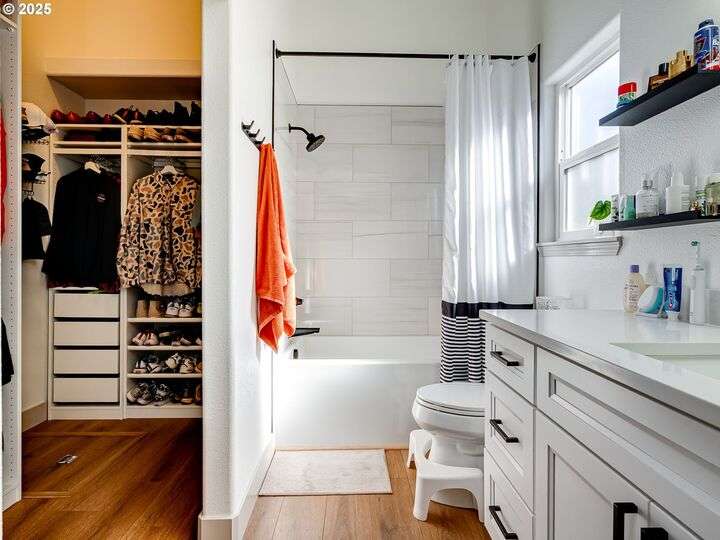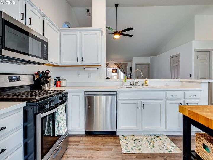 Freshly updated and move-in ready in Union/Evergreen Schools! Located in a sought-after neighborhood with a direct walking path to schools, this home offers convenience and comfort. Inside, enjoy fresh paint, updated hardware, and no dated oak for a modern feel. The main living area features durable laminate floors and a gas fireplace. The primary suite boasts a fully remodeled bathroom, while the dining/kitchen area includes a stylish bar with cabinets. Outside, enjoy RV parking and a fenced private yard, perfect for summer evenings. Close to parks, shopping, and amenities, this home is ready for its next owners!