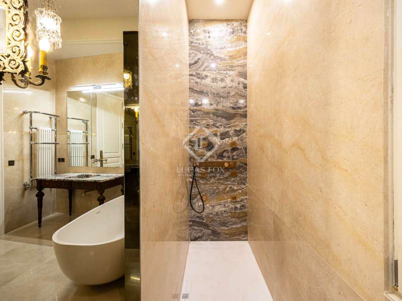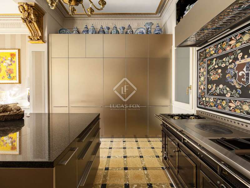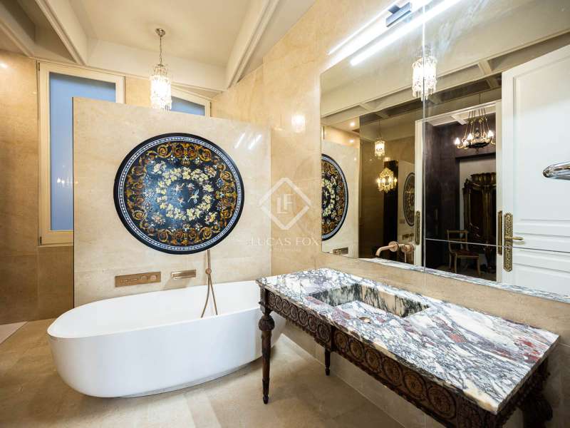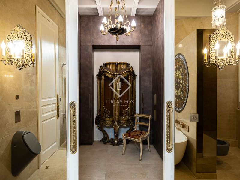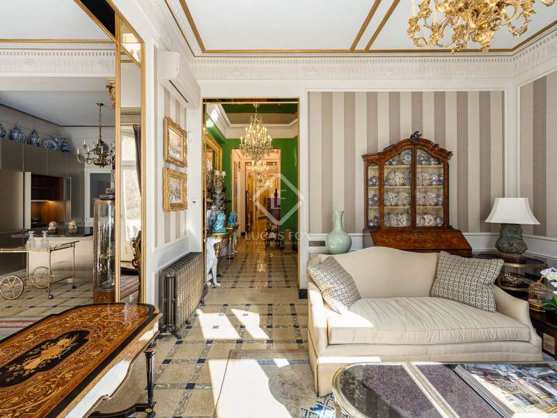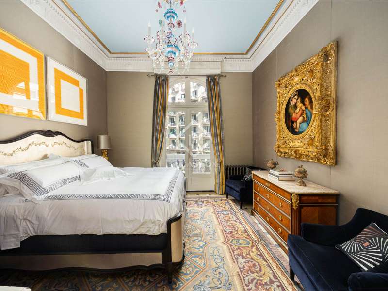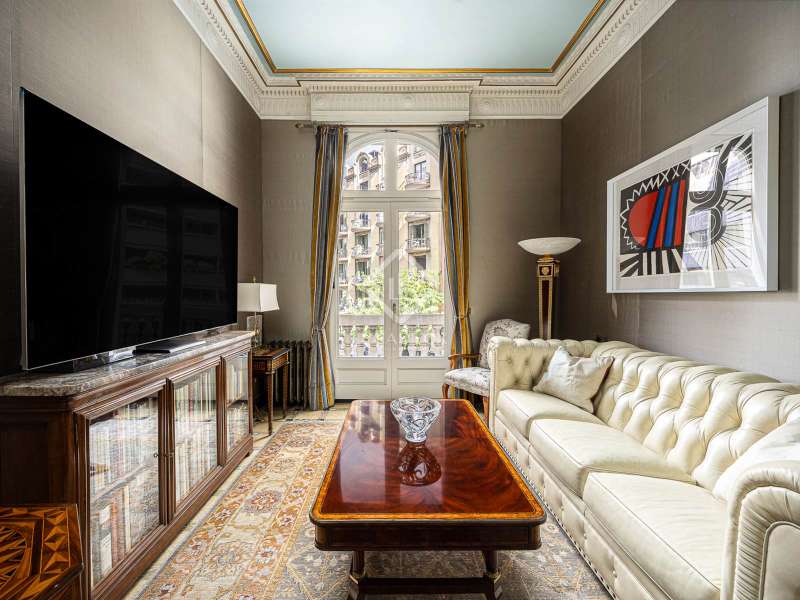 This four-bedroom, four-bathroom apartment enjoys an enviable location in Barcelona's Eixample Left area. On entering the apartment, we find the living room and dining room to the left. This space overlooks Avinguda Diagonal and the rear area also enjoys views of a street called Bon Pastor, creating a grand, bright space. The kitchen has been renovated and there is a convenient guest toilet near the living area. The property offers three bedrooms and a second living area, which could also be used as a fourth bedroom. The main suite enjoys a private bathroom and a walk-in wardrobe. As well as this en-suite bathroom and the guest toilet, there are two further bathrooms. The property has many unique features, including silk padded walls, hard stone inlays, contemporary amenities with high-end designer appliances and very high ceilings with intricate moldings decorated with crystal and gilt bronze and Italian chandeliers. The French furniture, classic and contemporary works of art, and numerous antiques create a magnificent space and give this property is unique character. Please contact us to arrange a viewing of this property.