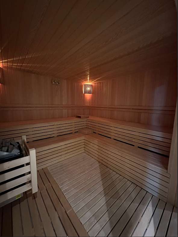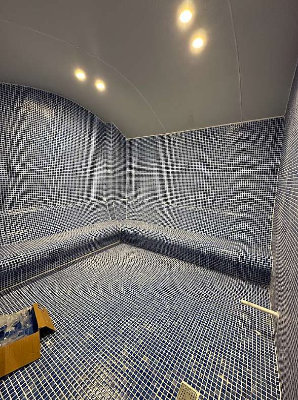 The villa is in a project built on a 1.001 sqm plot area and has an outdoor private swimming pool, detached garden, indoor parking lot, sauna, Turkish bath, gym, steam room, and other social activities.