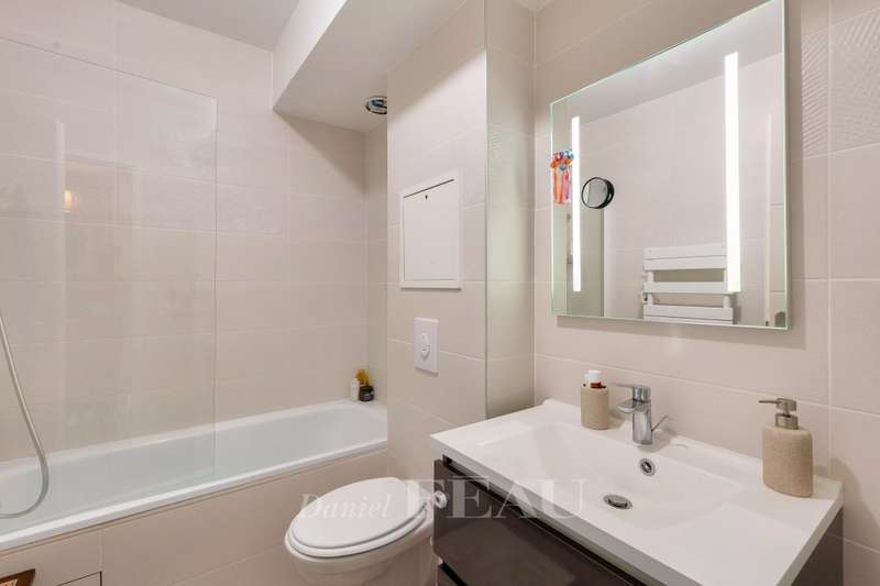 Sought-after Val d’Or neighbourhood, near the shops and station. This south-east facing apartment on the second floor of a luxurious recent building offers 107.51 sqm of living space as defined by the Carrez Law. It includes a bright 38 sqm living/reception room opening onto a 22 sqm terrace enjoying an open view of the Eiffel Tower, a separate kitchen, three bedrooms including a master suite with a shower room, a bathroom, a separate wc and a utility room. Residents benefit from a fitted roof terrace commanding a panoramic view of Paris. With a parking space and a cellar.