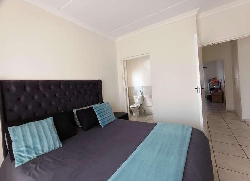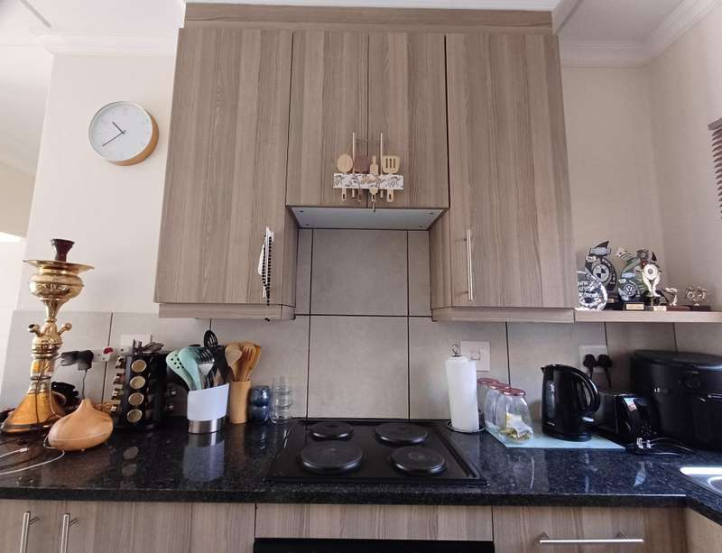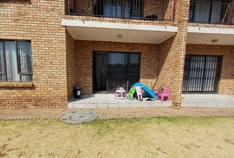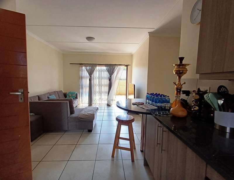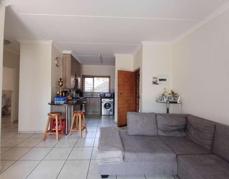 THIS LOVELY MODERN GROUND FLOOR TOWNHOUSE IS IDEAL FOR A FIRST-TIME BUYER Two well-sized bedrooms fitted with built-in cupboards. Master bedroom with MES, shower, basin & loo. Second bathroom with bath, basin & loo Modern open plan kitchen with a breakfast nook, granite tops and cupboards for your storage Open plan lounge and dining room with glass door opening out on to a patio overlooking a private garden One covered parking One open parking 24-Hour security