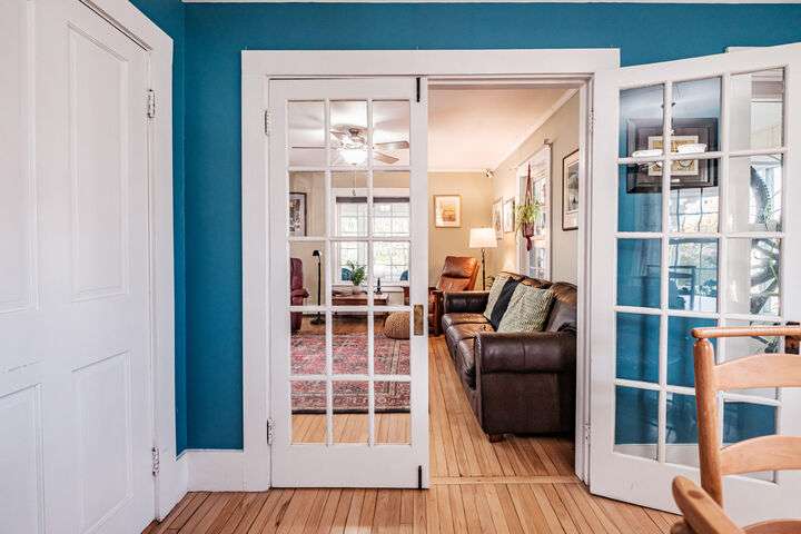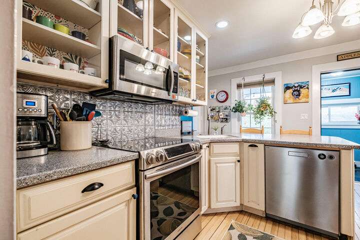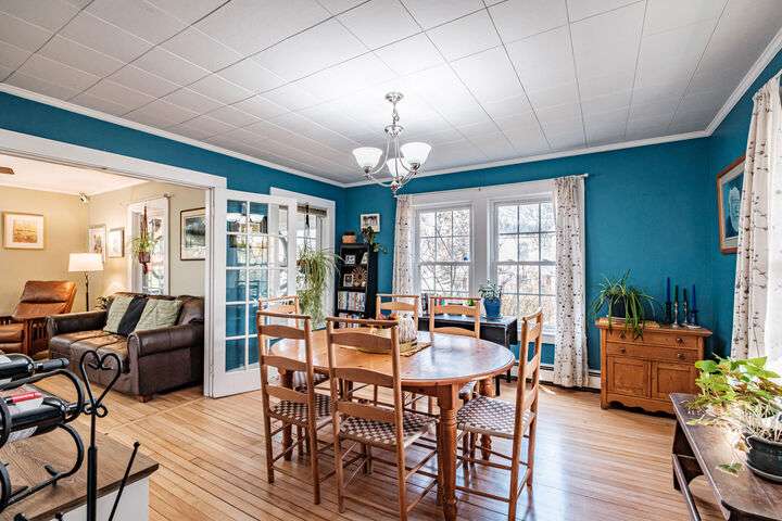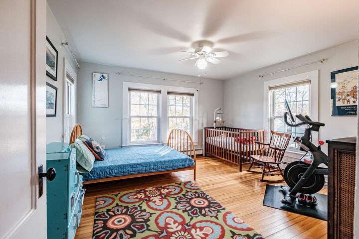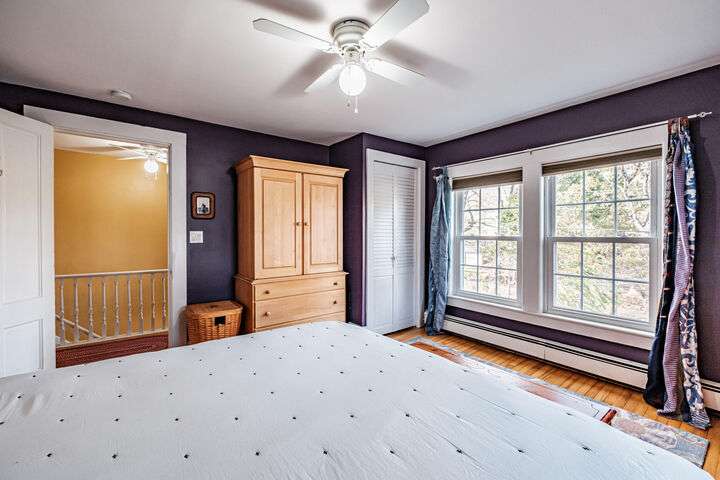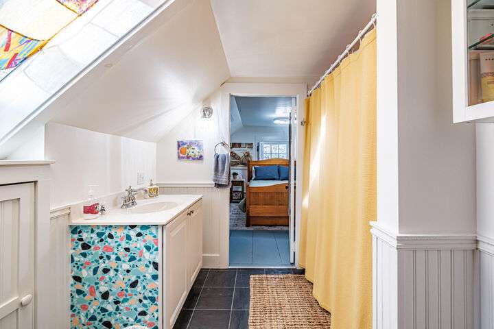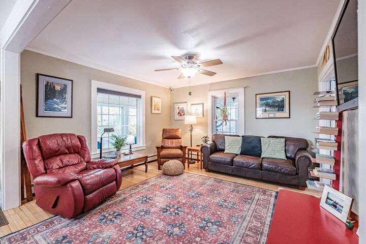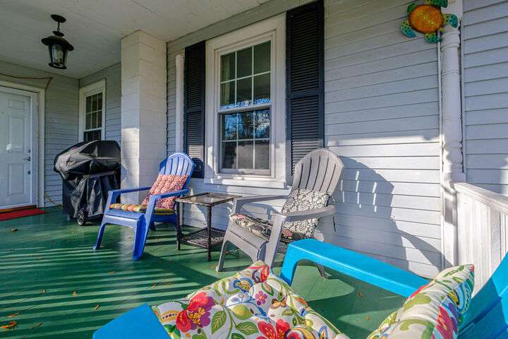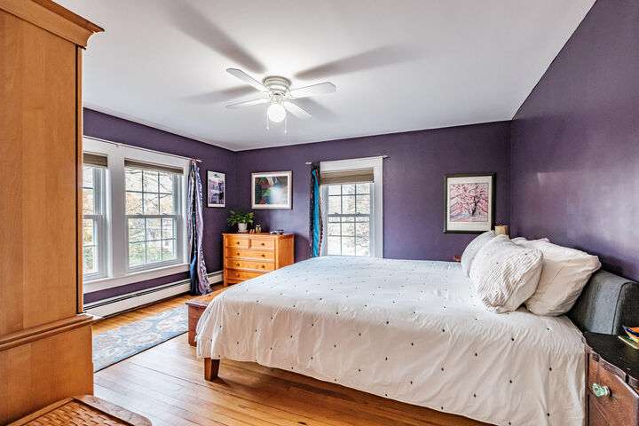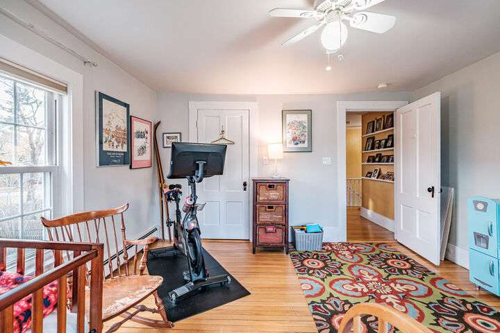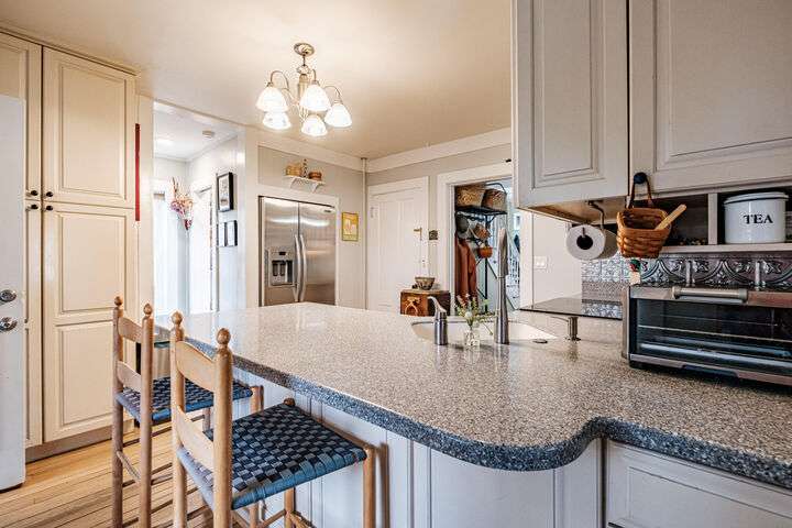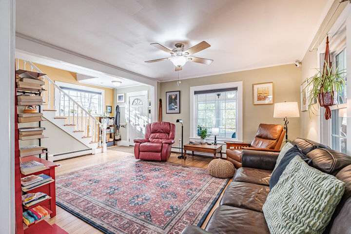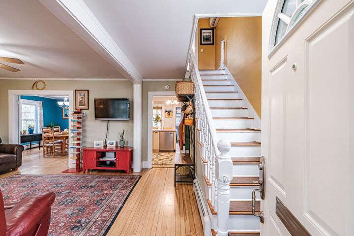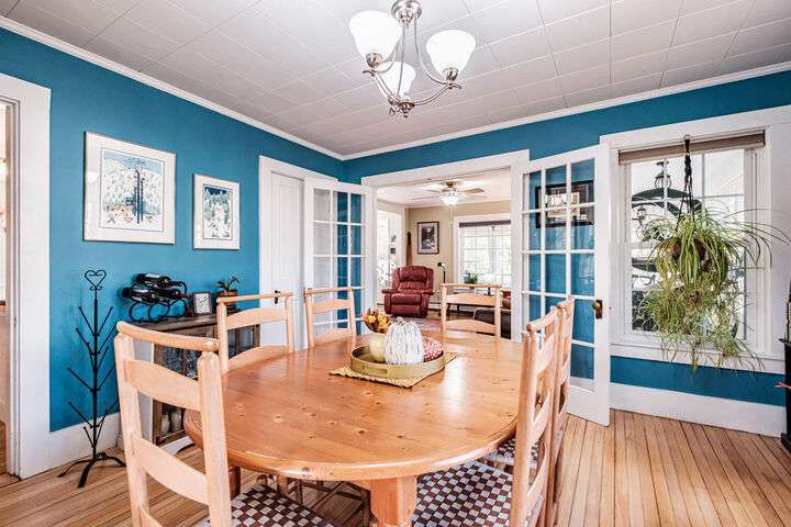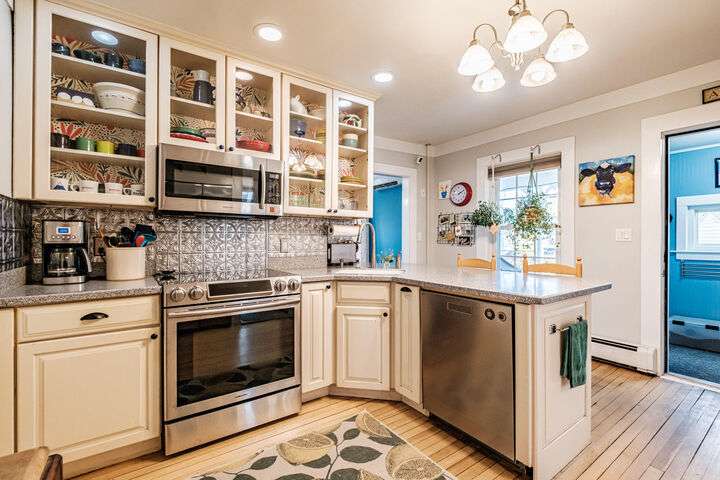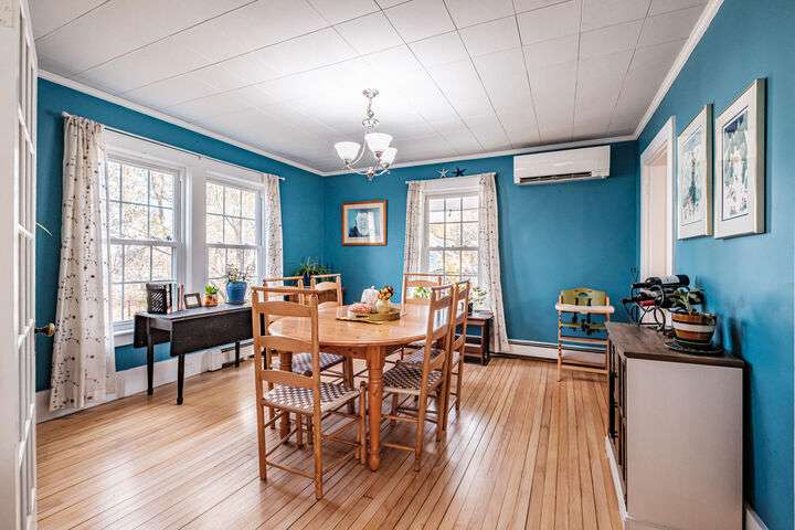 Updated historic New Englander features a front glassed-in L-shaped porch, formal living and dining room with wood floors, and a lovely updated kitchen with pantry and convenient half bath. A rear entry with open porch overlooks the fenced backyard with shed, providing space for gardening and outdoor enjoyment. The second floor features 2 bedrooms, full bath and balcony with closet. The bonus third-floor level offers a 3rd bedroom with attached bathroom and office area, options for a primary suite, guest space, or home office. Recent additions include new heat pumps, hot water heater and roof. Located in a fantastic Bath neighborhood, this home offers easy walkability to downtown, shops, restaurants, perfectly combining historic character with modern convenience.