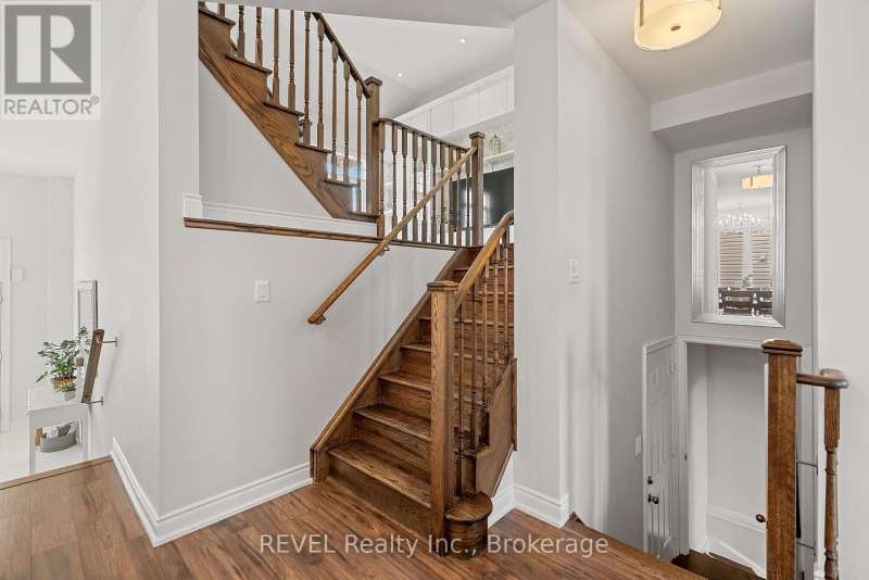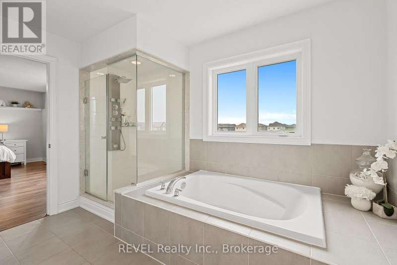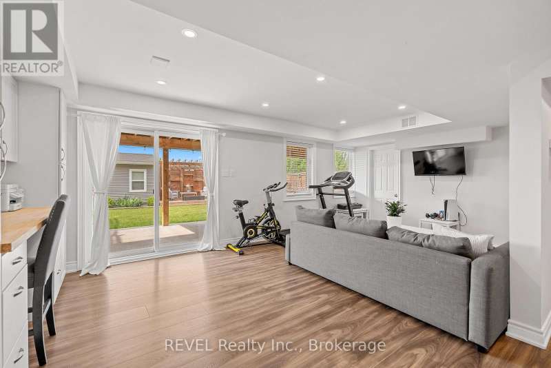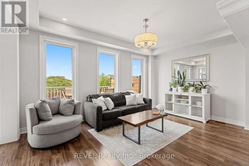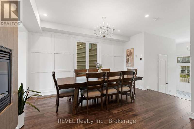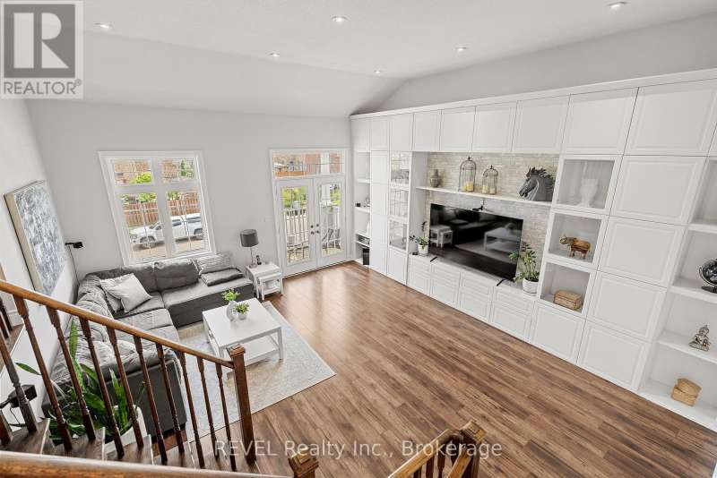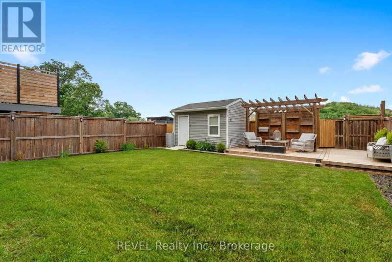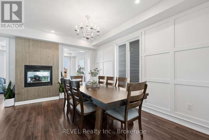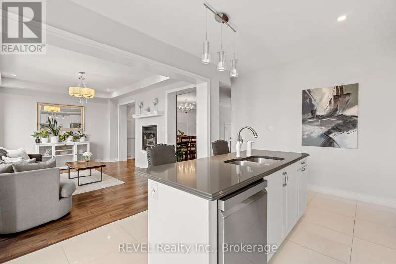 Welcome to The Hudson- the most coveted model in the Niagara Falls Imagine Community- taken to a whole new level. This 3 bed, 3.5 bath showstopper is loaded with upgrades and filled with natural light. The sun-filled between-level family room is the heart of the home, boasting nearly 13-ft ceilings, a custom built-in entertainment unit, surround sound system, potlights, and walk-out to the first of 4 incredible outdoor spaces. The designer white chef's kitchen features quartz counters, a 7-ft island, stainless appliances, gas stove, classic subway tile backsplash, and overlooks an elegant living room with a dual-sided gas fireplace. The dining room stuns with a feature fireplace and custom accent wall- simply perfect for unforgettable holiday gatherings. Upstairs, find 3 well-appointed bedrooms, 2 full baths, and a convenient laundry room. The private primary retreat offers a walk-in closet and 5-pc ensuite with glass/tile shower, soaker tub, and marble counters. Downstairs, the finished walk-out basement is made for living- complete with a custom office space, bar area with wine storage, full bath, pantry, and loads of storage. Step out to a covered patio and admire the immaculate lawn, or relax under the wooden pergola in the rear garden- truly a peaceful backyard. Upgrades are everywhere: 9-ft ceilings on the main level, no carpeting, upgraded lighting, doors and closets, comfort-height vanities, epoxy garage floors, shed with hydro, Gemstone exterior lighting, smart thermostat, concrete walkout pad, and a fully fenced yard with gate access to a future park. And with a brand new elementary school opening behind the home in Fall 2025, and just minutes to Costco, grocery stores, shopping, and the future Niagara South Hospital site- this is south-end Niagara living at its absolute best! (id:7434)