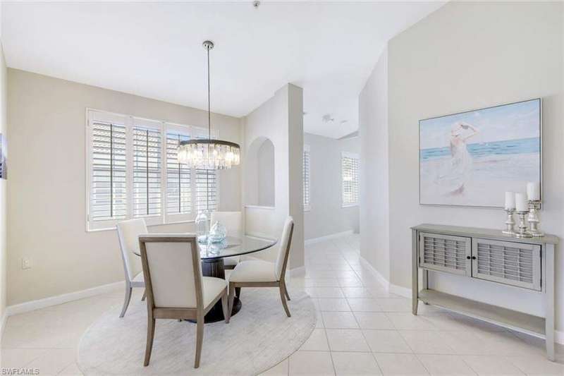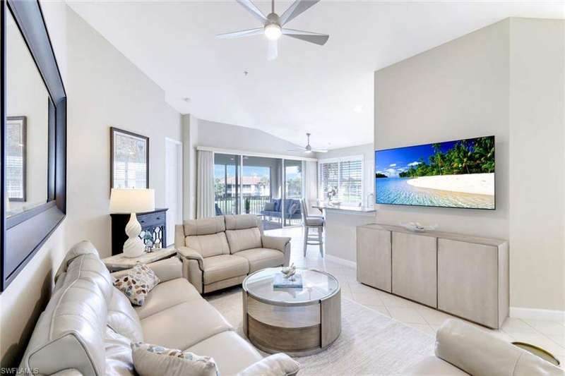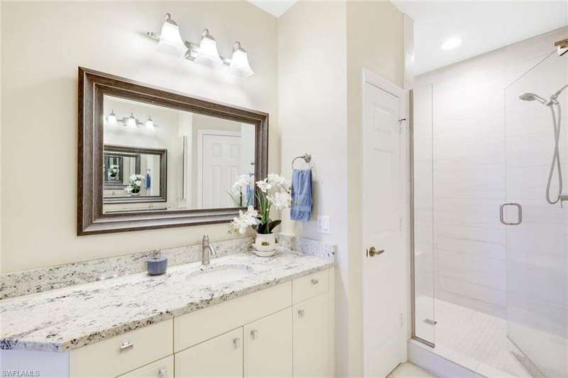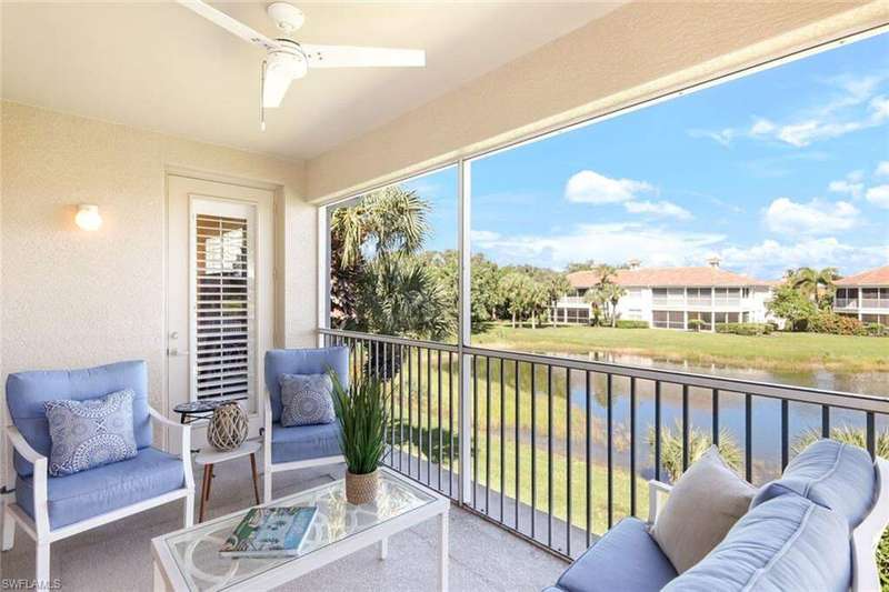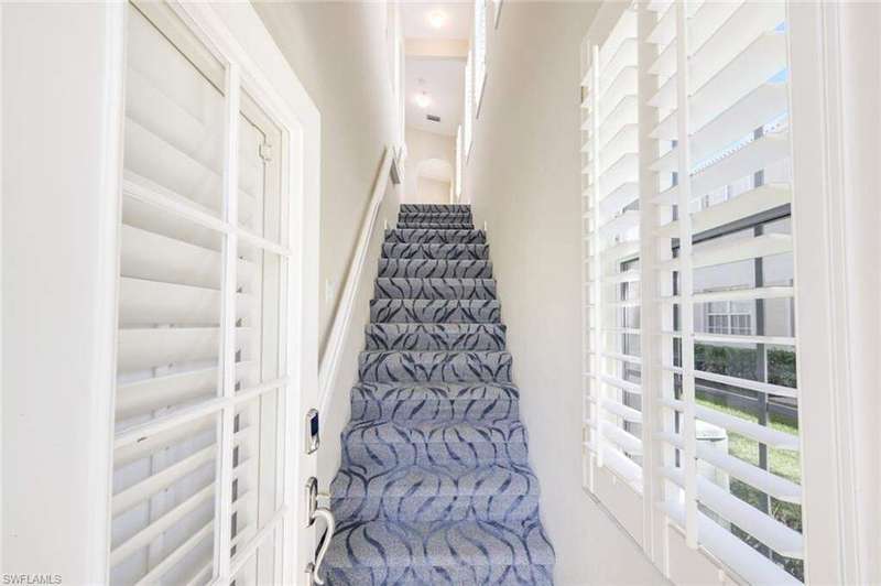 Welcome home to Bridgewater Bay - one of North Naples' most welcoming and beautifully maintained gated communities! This spacious and BRIGHT 2nd-floor lake-view coach home lives large at 1,847 square feet. This sunny END-UNIT offers 3 bedrooms, 2.5 baths, and the layout is designed for both comfort and style. The owners have meticulously updated every inch of this inviting coach home over the past seven years - from a full interior and exterior repaint (garage and garage floor included) to stunning bathroom renovations featuring granite counters, new fixtures (Sinks, hardware, mirrors, lighting, toilets) , and a refreshed primary shower. The remodeled kitchen shines with newly installed rich wood cabinetry, sleek granite countertops and backsplash, GE Profile appliances with a double oven, an R.O. water system (Which also connects to refrigerator & freezer) , and upgraded recessed lighting. Elegant touches continue throughout with new ceiling fans and lighting, and a statement dining room chandelier. Bridgewater Bay is centrally located, just minutes from our SW Florida famous white sandy beaches, dining and entertainment and less than 30 minutes from SW Florida International airport. A truly UNIQUE feature of Bridgewater Bay is that residents have access to Boat / RV storage space. Residents enjoy resort-style amenities including a recently updated clubhouse, fitness center (With steam room and sauna), 2 pools, tennis, pickleball, bocce, and a true sense of community that makes every day feel like a getaway.