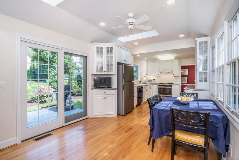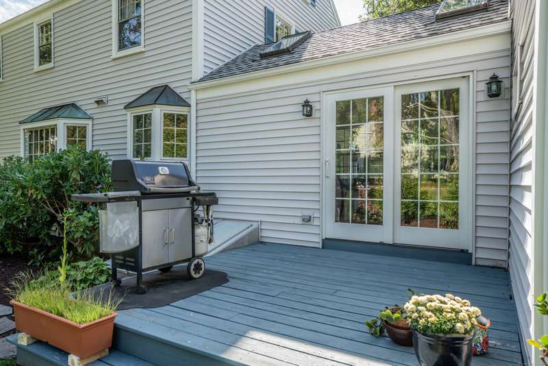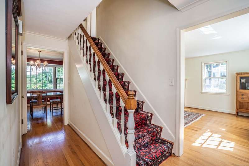 Welcome to 64 Harvest Lane, a charming Colonial on a quiet street in the highly desirable Bugbee School District. This well-maintained home offers 1,826 sq. ft. of living space, including three bedrooms and two and a half baths, one of which is a private primary bath. Hardwood floors run throughout, adding warmth and character to every room. The spacious living room features a fireplace with built-in shelving, creating an inviting gathering space. A formal dining room connects directly to the eat-in kitchen, which offers gas cooking, Corian countertops, a tile backsplash, and access to the attached two-car garage as well as the back deck. A first-floor den provides an ideal home office or relaxing retreat. Upstairs, you'll find three bedrooms and two full baths, including the primary suite and bathroom. The partially finished lower level adds 396 sq. ft. of flexible living space, perfect for a playroom, media room, or fitness area. Additional features include central air, gas heat and