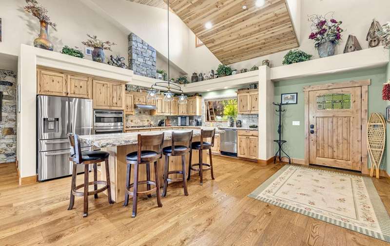 Custom Golf Course Home on Bailey Creeks 17th Fairway This stunning custom home blends mountain charm with modern convenience, perfectly positioned along the 17th fairway of Bailey Creeks Championship Golf Course. The large open floor plan includes an inviting eat-in kitchen with custom cabinetry, top-of-the-line appliances, and granite countertops throughout. Rich hardwood flooring pairs beautifully with custom tile baths, creating a warm yet elegant finish. Upstairs, two large rooms over the garage provide versatile space that can be utilized as overflow sleeping areas, a game room, or flex space for family and guests. Enjoy the outdoors with over 600 sq. ft. of patio space overlooking the fairway ? ideal for outdoor cooking, entertaining, or simply relaxing in the fresh mountain air. The property is fully landscaped with sprinklers and drip systems, highlighted by a circular paver driveway. A massive 1,682 sq. ft. garage is fully insulated and finished with custom cabinetry, including a motorhome bay large enough for any RV or boat. Ready for family and friends, this home offers the perfect balance of comfort, style, and golf course living.