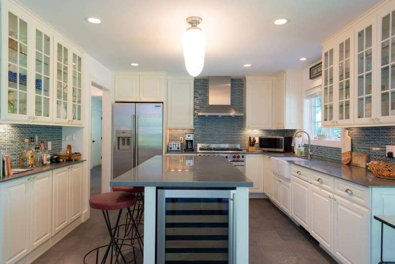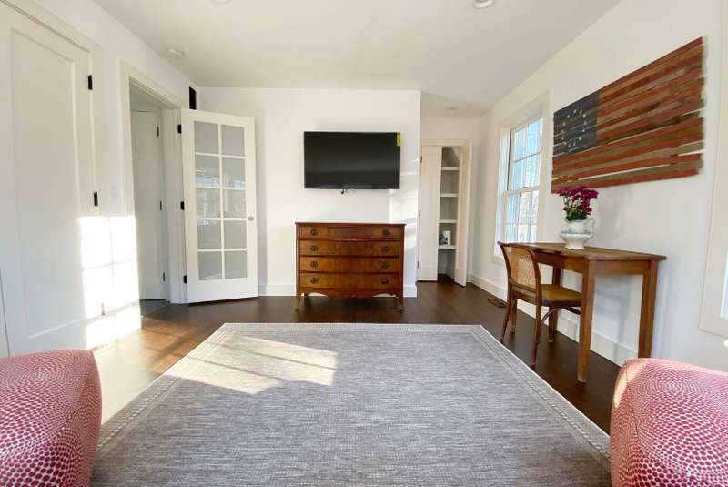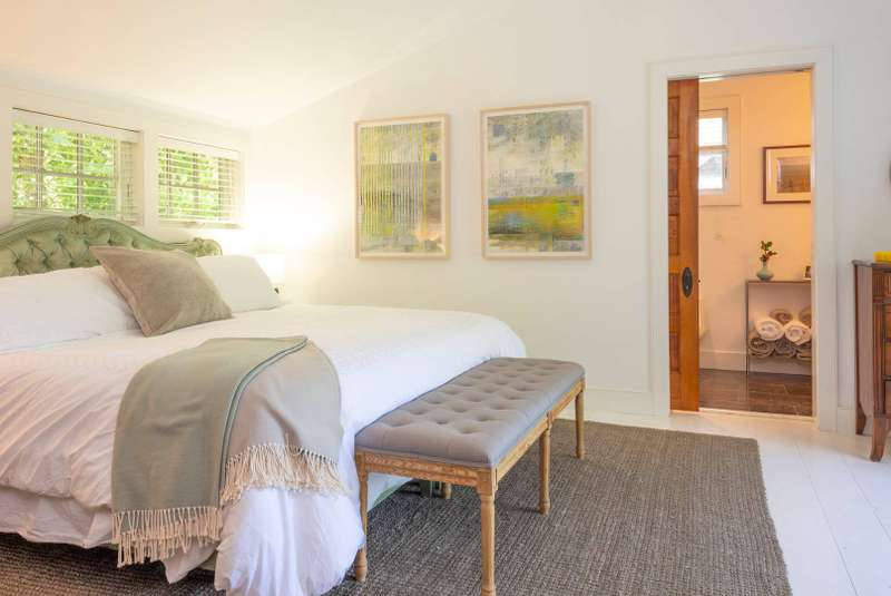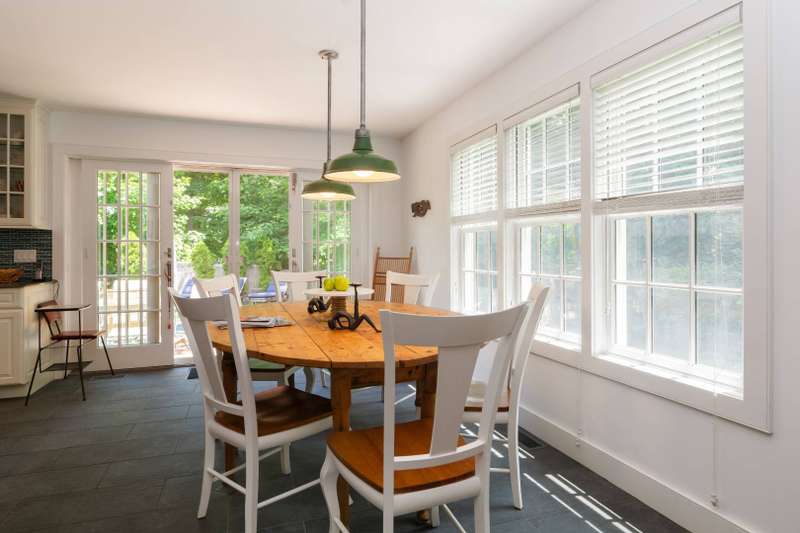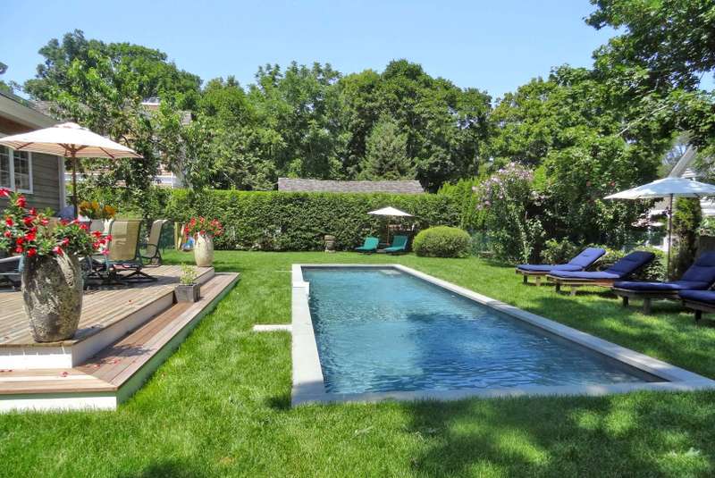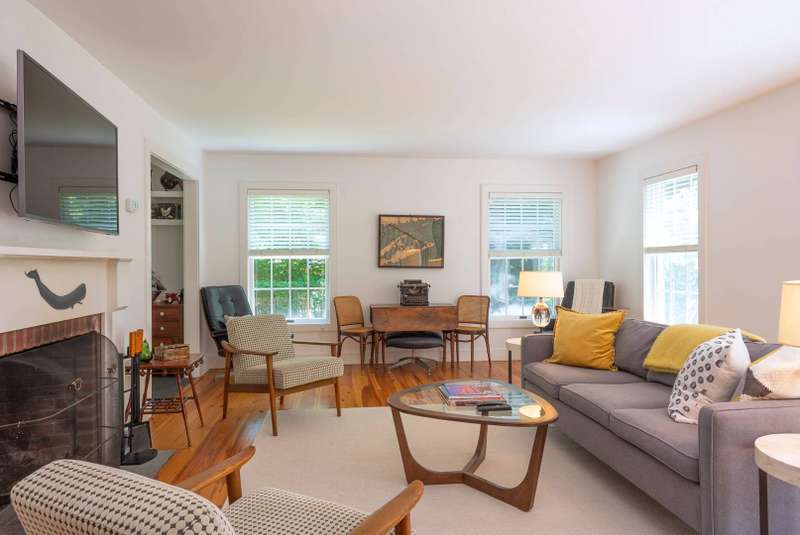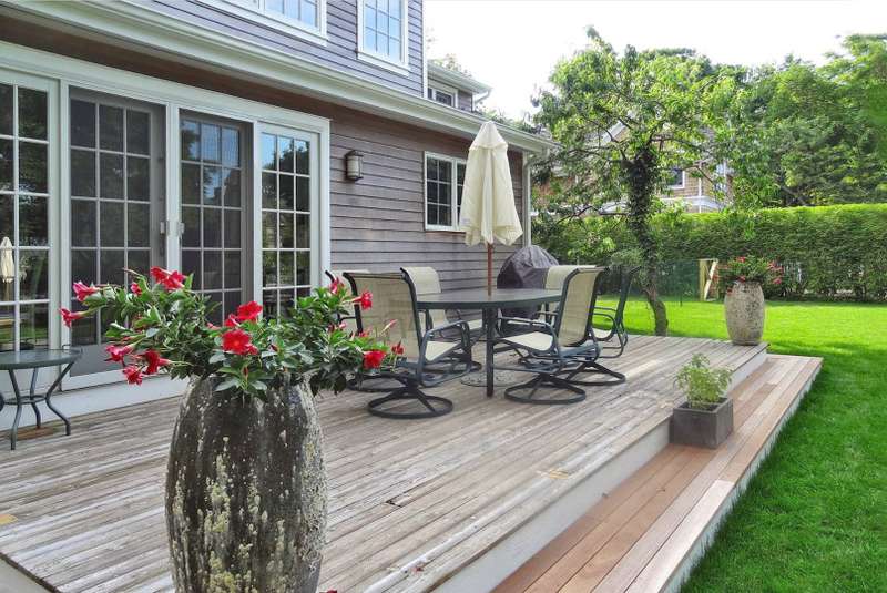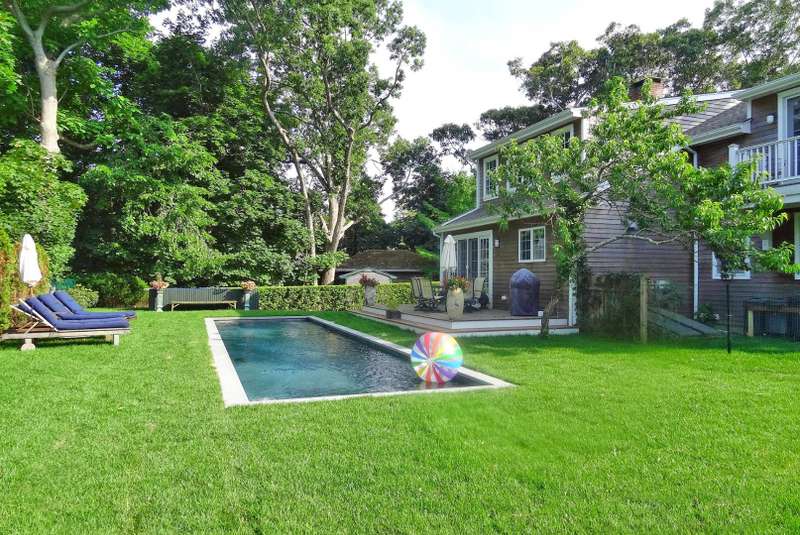 Rental Reg. # R-24-0004 Designer's own newly renovated home is the perfect blend of village charm and modern amenities. Located equidistant to the beach and the village center, the house has a gracious open floor plan that makes summer entertaining ideal, with an easy flow to back deck and tastefully landscaped backyard. This 4 bedroom, 3 1/2 bath has it all: large spacious and light-filled bedrooms, modern designer bathrooms; fully-loaded gourmet kitchen with top-of-the-line appliances and a large comfortable living room with wood-burning brick fireplace and 40' 3D-HDTV. Master bedroom features en-suite bathroom with oversize glass shower and radiant heat floor as well as Romeo and Juliet balcony overlooking its own peach tree and heated gunite pool.. Additional conveniences include: large mudroom, double W/D, high speed wireless internet broadband, state of the art and super efficient 3-zone AC/heat, instant hot water, central vac, irrigation system, covered porch, garage,quiet street and large yard with mature trees.Listing ID: 742725