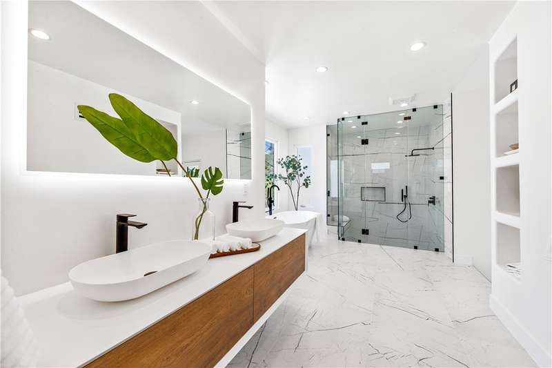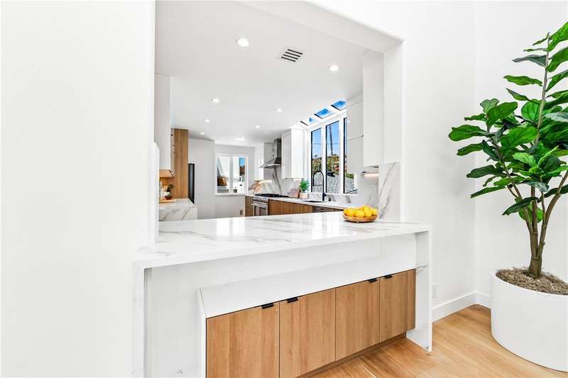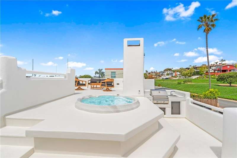 This luxury home is completely remodeled inside and out! It is situated in a quiet south Manhattan Beach family neighborhood and steps away from the sand and walking greenbelt trails. The home is also conveniently located close enough to walk or bike to restaurants and stores in downtown Manhattan Beach. The main entry level features three bedrooms, two full baths, family room/third bedroom (office) that opens to the peaceful front patio. The second level features a spacious living room with fireplace, dining room with dramatic high ceilings, & hardwood floors throughout. Entertain guest with a chef kitchen featuring views of the greenbelt, Forno range with ovens, stainless steel appliances, & tech professional refrigerator. The main suite has a romantic fireplace, primary bath with custom floors, large sunken shower, tub, double sink, and feels like you are in a 5-star resort with a private deck overlooking the greenbelt. The third level is what makes this property a rare find! It features an exclusive open air large rooftop deck that is now restricted in Manhattan Beach & adds more living space! The north side deck features a jacuzzi, sink, and very large protected seating area for entertainment & fitness. The South facing deck features a new large outdoor kitchen set up with BBQ, sink, & dining area with plenty of ocean breeze. Going back down to the main level the home has a large laundry room leading to a two car attached garage with space for storage and Epoxy floors. Everything is NEW and a perfect spot to start your beach life!