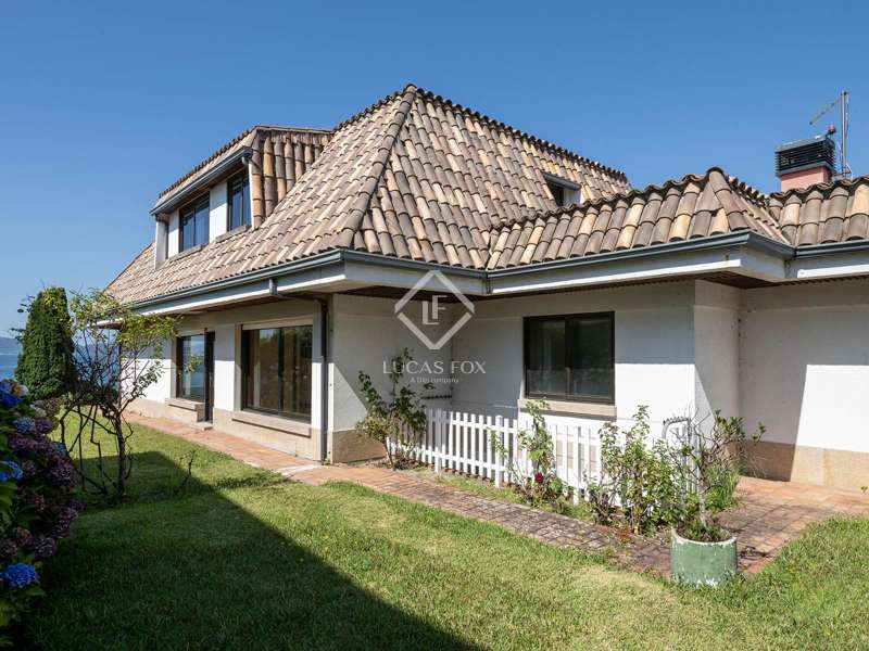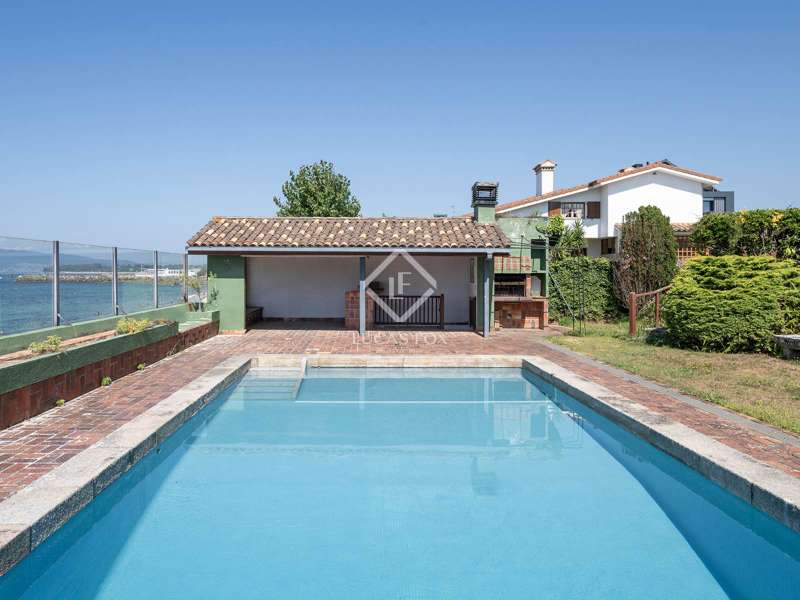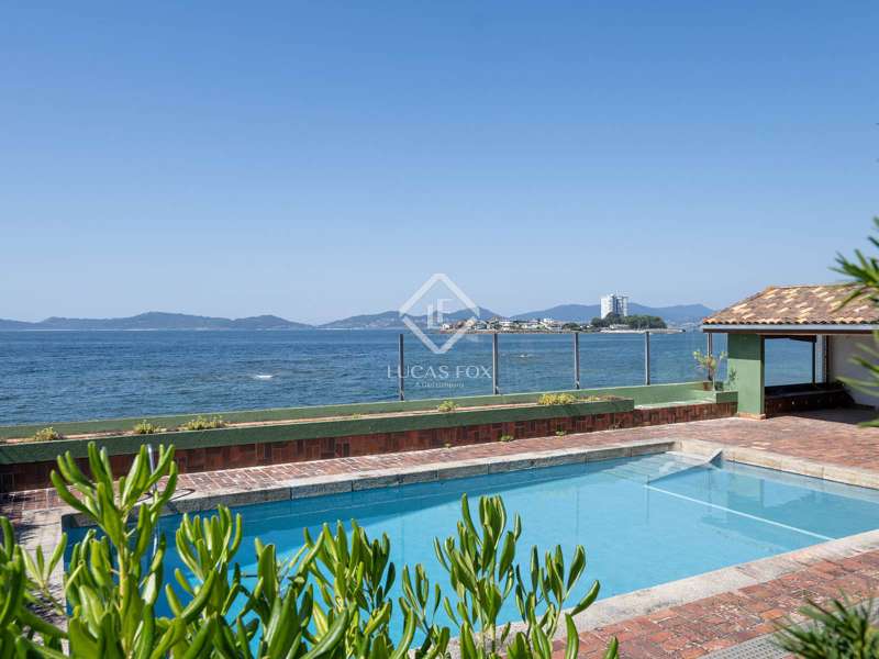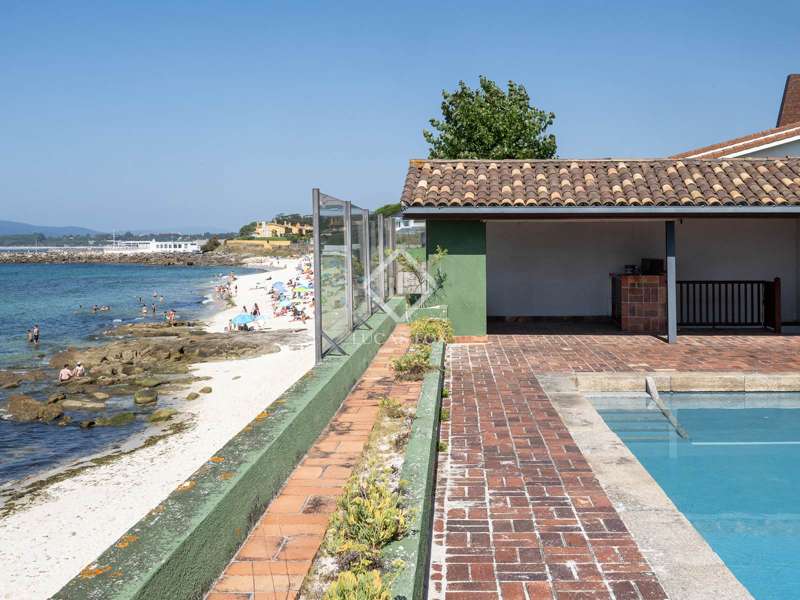 In Canido, one of the most exclusive neighbourhoods in the Rias Baixas, and not far away from the city of Vigo, we find this 4 bedroom beachside property. The house has 600 m² of built surface area distributed over three levels and sits on a good-sized plot right by the beach, with outstanding views of the estuary of Vigo and the Atlantic Ocean. The property is built facing the sea and has very well-defined day and night areas. We enter the house from the street and from the main hall to the left we find a spacious kitchen seamlessly connected to the dining area and a large living room. The living room has wide sliding windows, allowing access to the garden and swimming pool areas. The beach with its blue-green, crystalline waters is just a few steps away. The upper level, which can be accessed via a staircase or with the use of a lift, is where we find the sleeping quarters which have three bedrooms, two of them facing the back and sides of the property and sharing a complete bathroom. The main bedroom has a spacious walk-in wardrobe and overlooks the swimming pool area and the beach. The views of the estuary are breathtaking. On the main floor, towards the back of the property and facing the garden, there is an ample service area with a laundry room and a bedroom with its own bathroom for staff. There is a licenced project to completely refurbish and upgrade this property with a modern design. Please contact Lucas Fox for further details. This property in need of updating would be ideal for a young couple or a family with children wishing to enjoy the beauty and tranquility of the surrounding landscape, but very close to the city of Vigo and all its services.