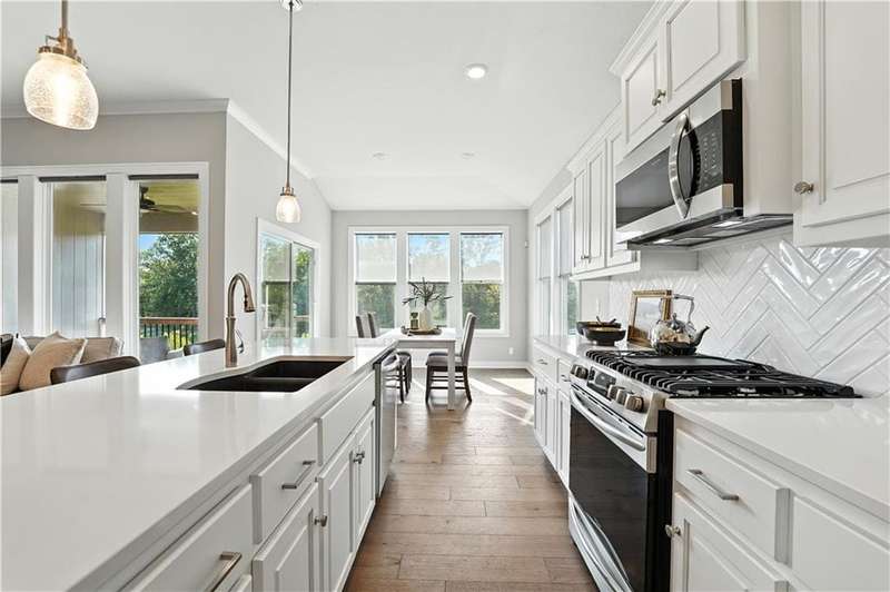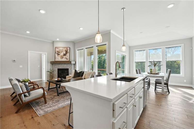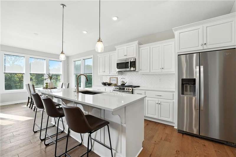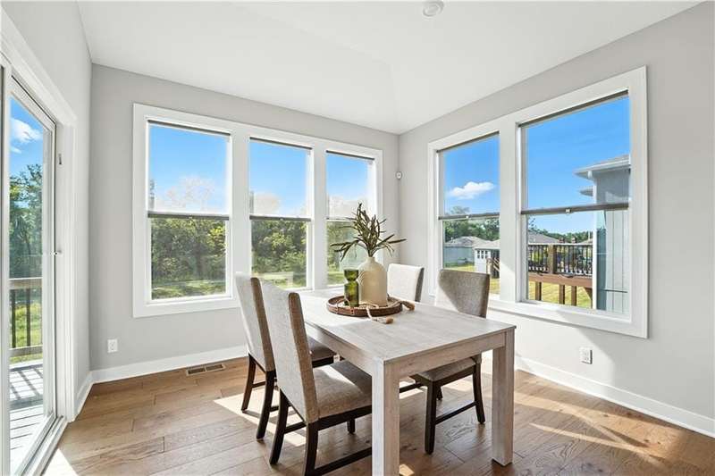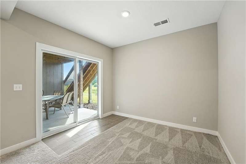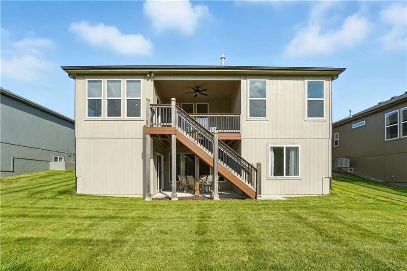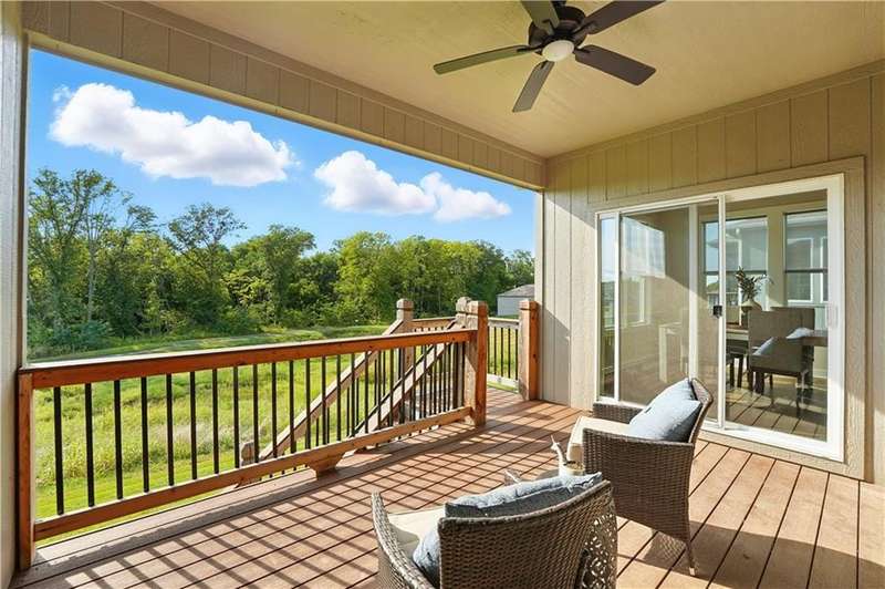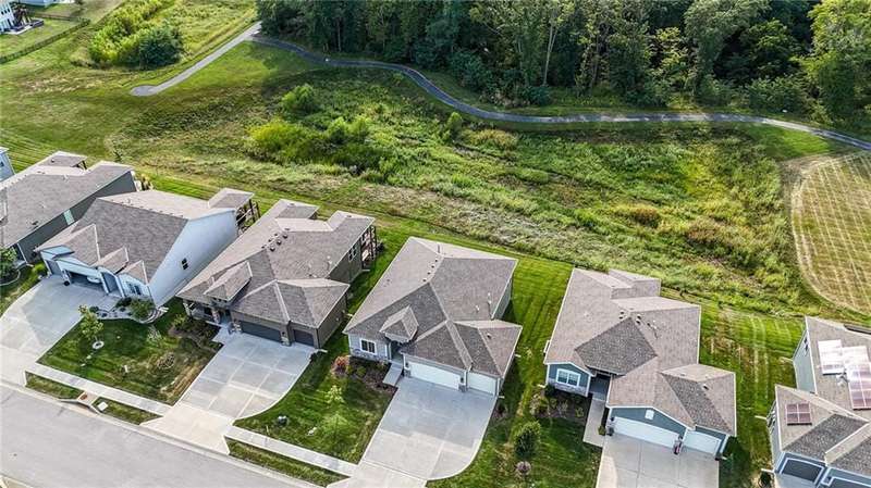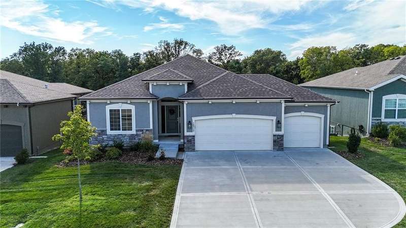 This beautiful villa is only 3 years old and backs to wooded views and a peaceful walking trail. Enjoy easy living with lawn care and snow removal handled by the HOA. The popular Somerset floor plan features an open kitchen with white cabinets, large island and walk-in pantry. The laundry room is just off of the kitchen and the kitchen is open to both the family room and dining.This easy and open flow is great for entertaining with an additional outdoor living space on the covered deck. The primary suite with ensuite bath and second bedroom are also located on the main floor. The lower level is a finished walkout basement with a second outdoor living space that is a patio beneath the deck and a second family room. Two additional bedrooms with a hall bath complete the finished space. There is plenty of additional unfinished space for storage. This is an ideal 'lock and leave' home for the person who travels often. It's just 15 minutes to KCI and 20 minutes to downtown. Schedule your showing soon.