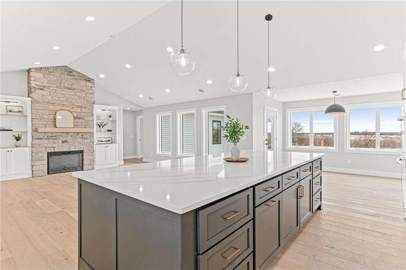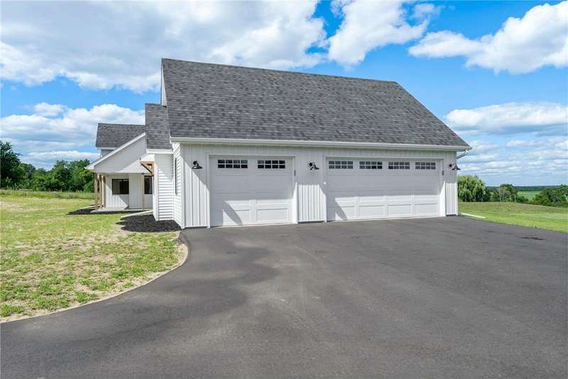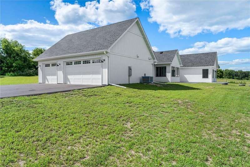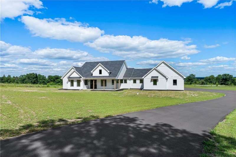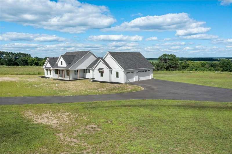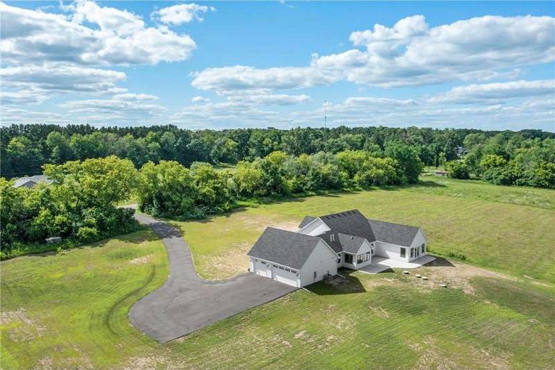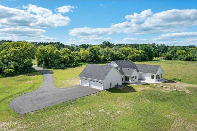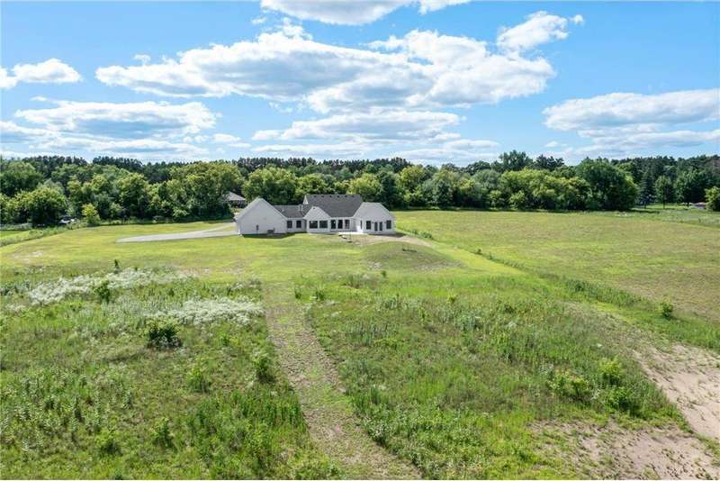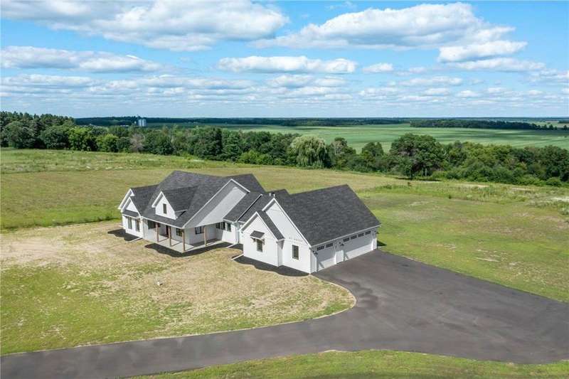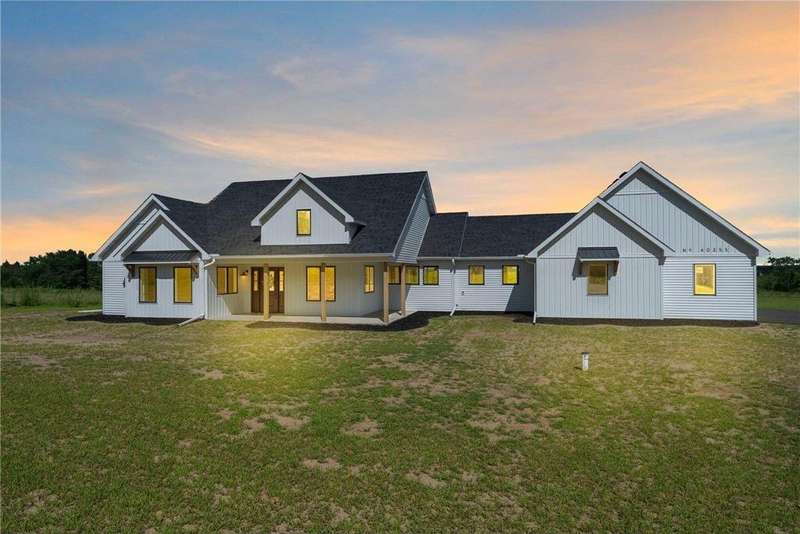 Welcome to 40355 Hemingway, a custom-designed home is the perfect blend of luxury, comfort, and nature—just 45 minutes from the Twin Cities. This is one-level living at its finest. From the moment you step inside, you're greeted with sweeping views and warm, white oak hardwood flooring that runs throughout the open concept living space. In-floor heat throughout the entire home. The chef’s kitchen is the heart of the home, complete with custom cabinetry, a spacious pantry, and premium stainless appliances—all centered around a large island, ideal for entertaining. The living room invites you to unwind by the stunning stone fireplace, and just steps away, the primary suite offers a true sanctuary with its own fireplace, oversized walk-in closet, and a spa-inspired ensuite bath. Double doors lead from the bedroom to a concrete patio—your own quiet space to take in the valley views with your morning coffee. With three bedrooms plus an 11x11 office, the layout is both functional and flexible. A heated, oversized 3-car garage and thoughtful details like custom finishes, big pantry, and stone accents elevate everyday living. Whether you're looking for quiet countryside living or a modern home with timeless design—this one-level oasis offers it all.