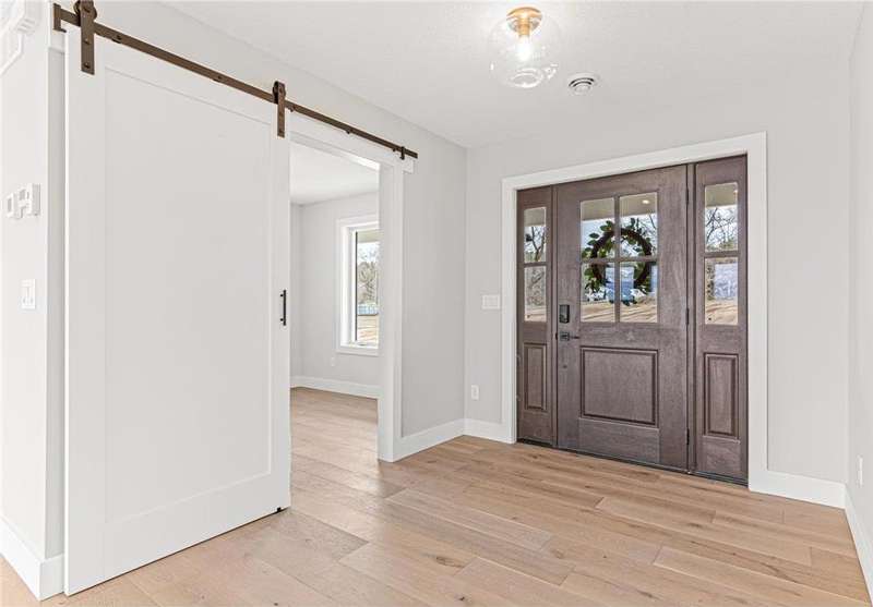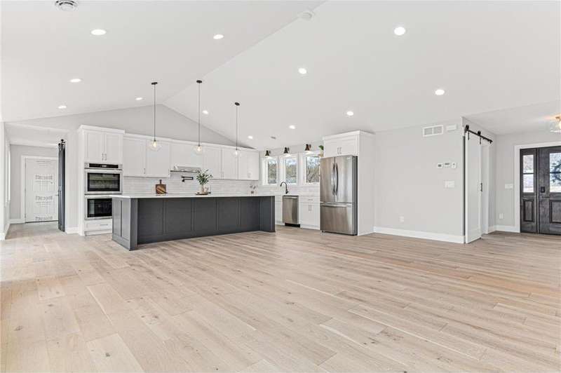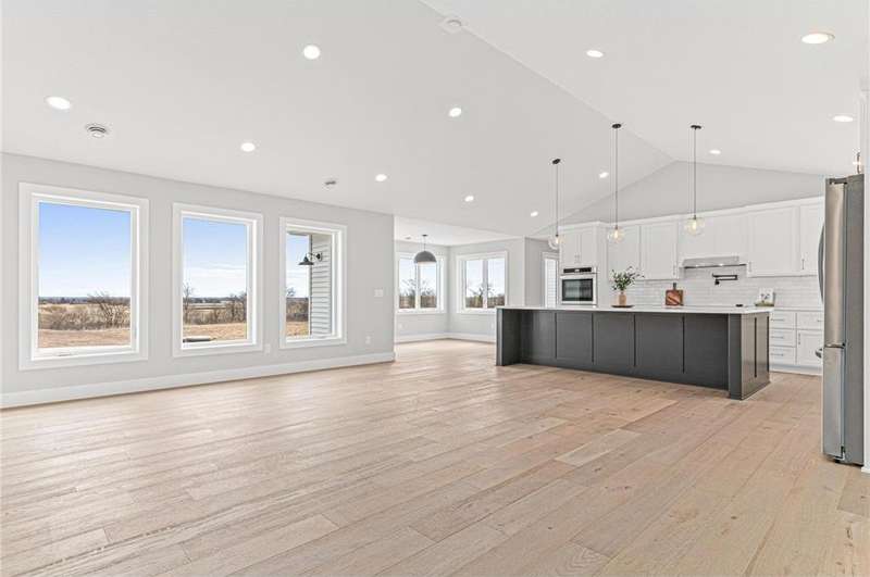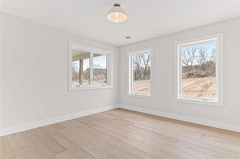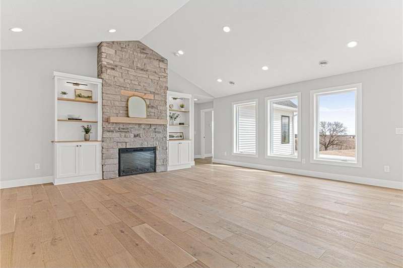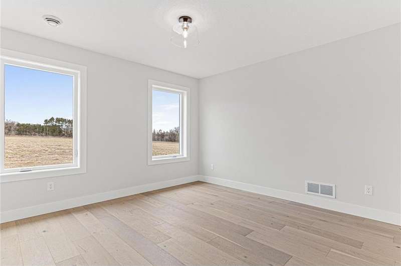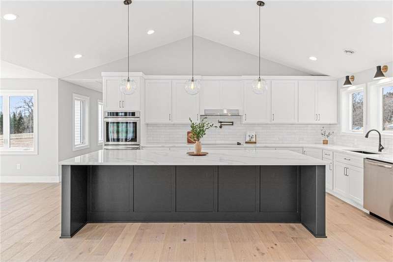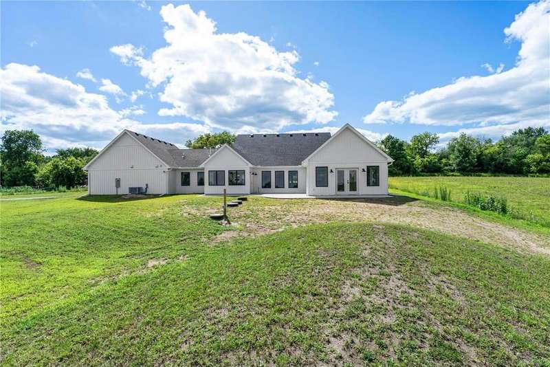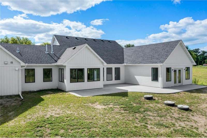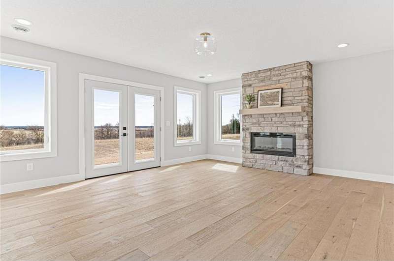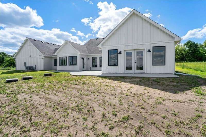 Welcome to 40355 Hemingway, a custom-designed home is the perfect blend of luxury, comfort, and nature—just 45 minutes from the Twin Cities. This is one-level living at its finest. From the moment you step inside, you're greeted with sweeping views and warm, white oak hardwood flooring that runs throughout the open concept living space. In-floor heat throughout the entire home. The chef’s kitchen is the heart of the home, complete with custom cabinetry, a spacious pantry, and premium stainless appliances—all centered around a large island, ideal for entertaining. The living room invites you to unwind by the stunning stone fireplace, and just steps away, the primary suite offers a true sanctuary with its own fireplace, oversized walk-in closet, and a spa-inspired ensuite bath. Double doors lead from the bedroom to a concrete patio—your own quiet space to take in the valley views with your morning coffee. With three bedrooms plus an 11x11 office, the layout is both functional and flexible. A heated, oversized 3-car garage and thoughtful details like custom finishes, big pantry, and stone accents elevate everyday living. Whether you're looking for quiet countryside living or a modern home with timeless design—this one-level oasis offers it all.