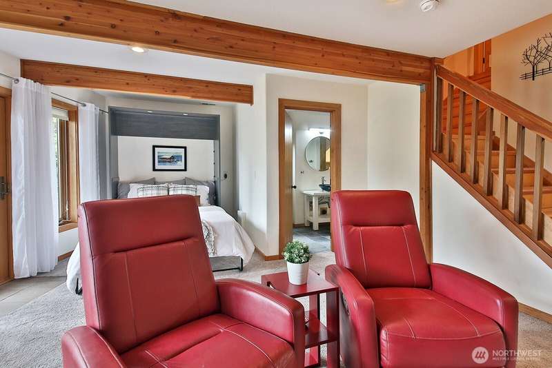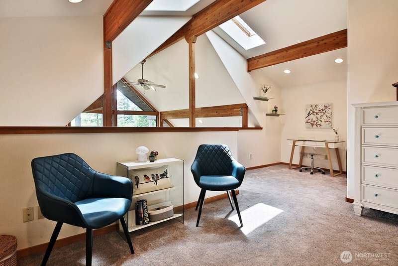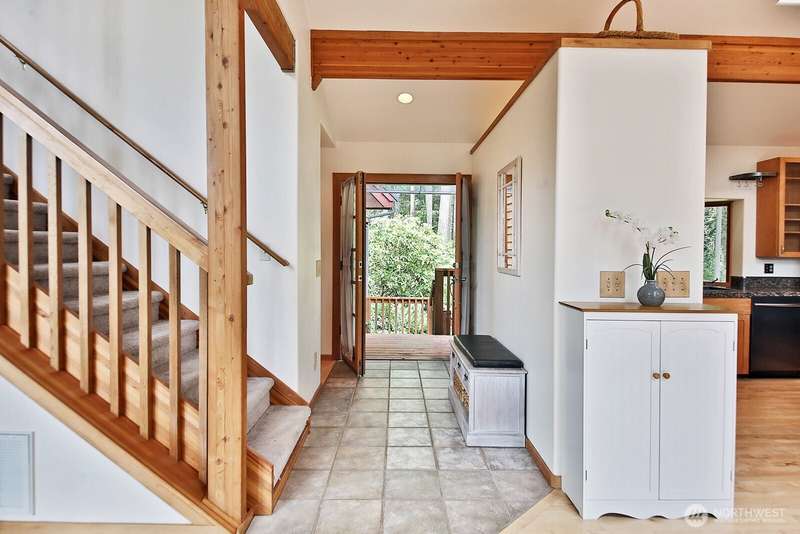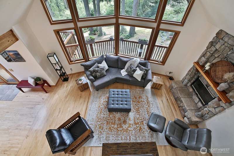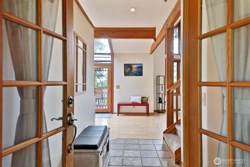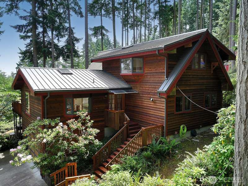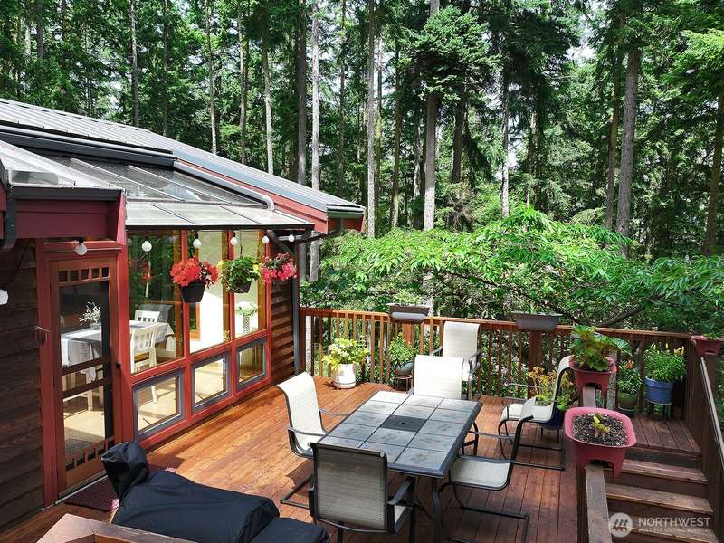 A delightful combination of sunlight & lush forest surrounds this quality-built cedar-sided home adjacent to a 15-acre sculpture forest w/ partial views of the Sound. A grand open floor plan w/ two stories of windows & an atrium immerses you in natural beauty, creating your island sanctuary. You will love the hardwood floors, custom finishes throughout, wood fireplace, an expansive deck and a flexible floor plan that holds the possibility of two Primary Suites. One of the best features of this home is its location. Leave your car in the tidy garage & enjoy an easy stroll to Long Point beach or Coupeville's waterfront. Your adventure into town is shortened & beautified via the adjacent wooded park trails. Welcome to Whidbey! **5 Day Bump**