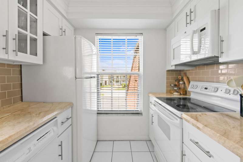 Step into comfort and style with this beautifully updated residence! Featuring a private corner entry and serene tree-top views, this home blends elegance and functionality. The renovated kitchen and baths shine with modern finishes, while crown molding and tasteful updates add a touch of sophistication, & plenty of storage. The perfect home for relaxing and entertaining with a blend of lifestyle and value. Located in a friendly 55+ community offering, pool, club house, billiards table, & many activities. It is walkable to Promenade Plaza, many restaurants, Newest Publix, Planet Fitness. and a short drive to Beaches, Airport and Medical Centers.