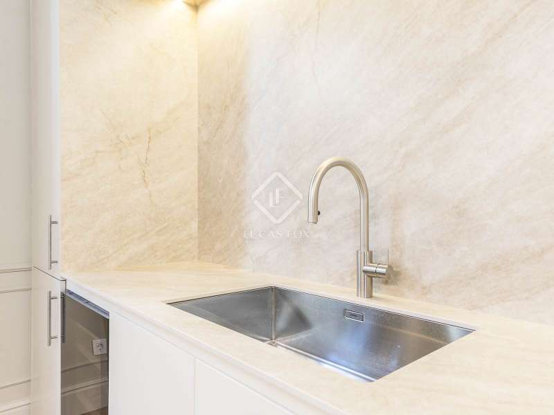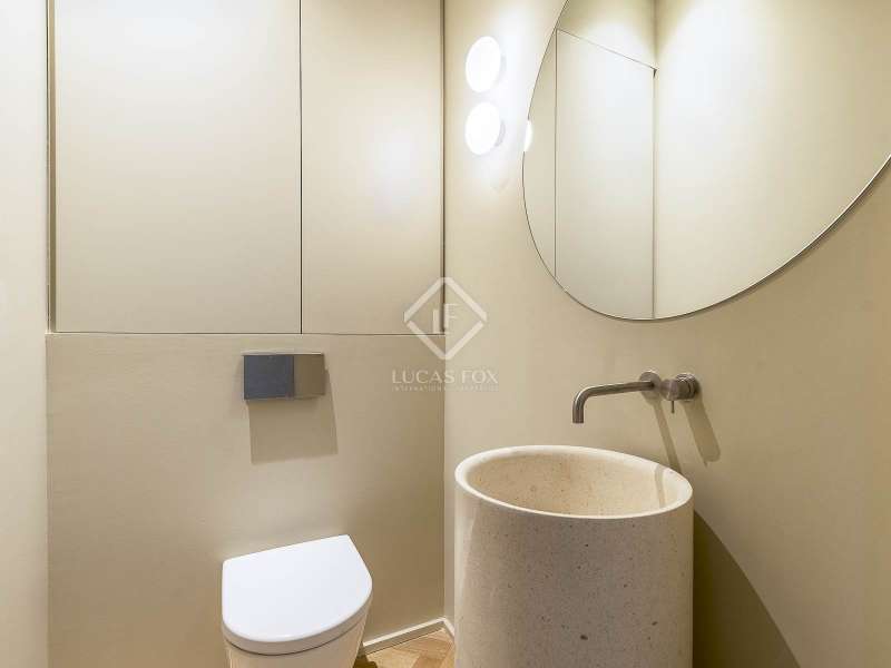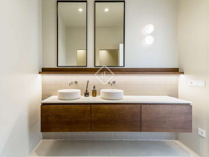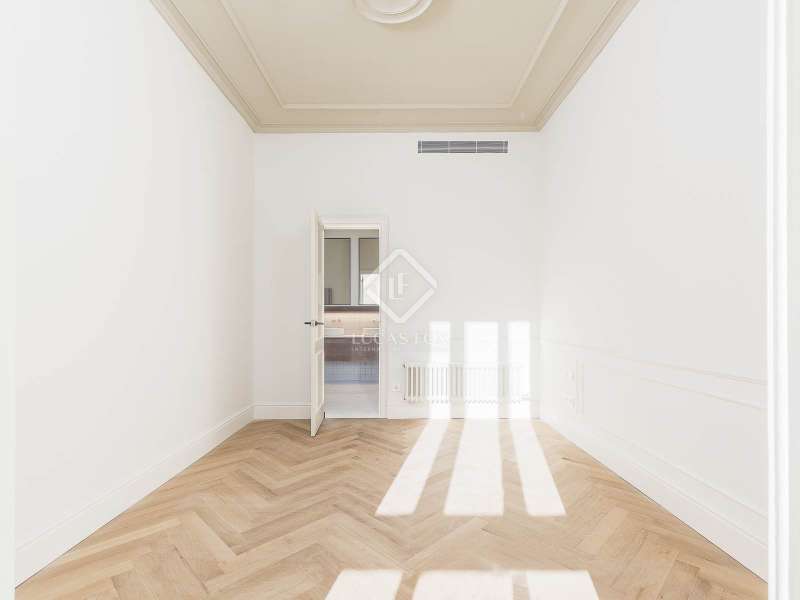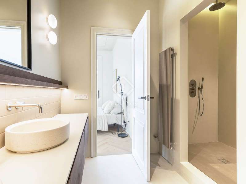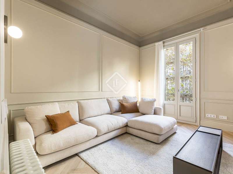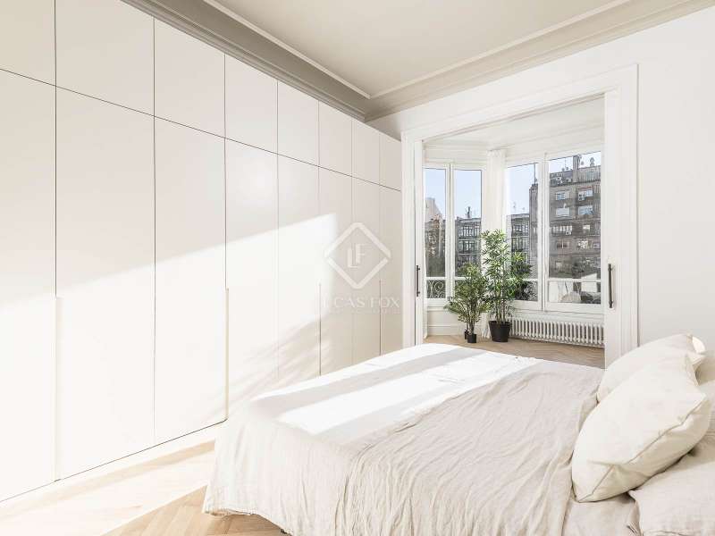 This impressive property is located in a very well-preserved period building on the prestigious Mallorca street, between Rambla Cataluña and Balmes. Its 175 m2 offer an elegant and contemporary design, combining the best of traditional architecture with modern comforts. Upon entering, a large entrance hall distributes the space into the two main areas of the house. To the left, we find a day area that houses a bright living room and a spacious dining room, both connected by an elegant arched wall that gives character to the environment. Thanks to its three balconies facing Mallorca Street, the property enjoys abundant natural light. The open kitchen is equipped with high-end appliances , in conjunction with the other rooms in the day area, which creates a harmonious atmosphere. It is completed with high-capacity tall cabinets and a large island with a cooking area and space for stools, ideal for day-to-day use and for entertaining guests. The entire day space occupies an area of more than 65 m2 . The night area consists of three suites, each with private bathrooms. The large bedrooms are designed to create an elegant and relaxed atmosphere, with restored original ceilings that add character and a touch of colour that gives personality to each of the spaces. The bathrooms feature a contemporary and minimalist layout , with a focus on functionality without sacrificing elegance. The selection of high-quality materials, such as natural oak herringbone parquet, provides a warm and sophisticated atmosphere throughout the property. As for the qualities, the property has a ducted air conditioning system and a radiator heating system that guarantees a pleasant temperature throughout the year. In addition, it has a facilities and laundry room area and a guest toilet for greater comfort. The building, in a classic style, is in a perfect condition, with a concierge service and two elevators for easy access to the property . Its privileged location in l'Eixample offers easy access to the city's main arteries, luxury shops, restaurants, and all the amenities that this emblematic area of Barcelona includes. Without a doubt, this is a unique opportunity to acquire a luxury property in one of the best locations in the city.