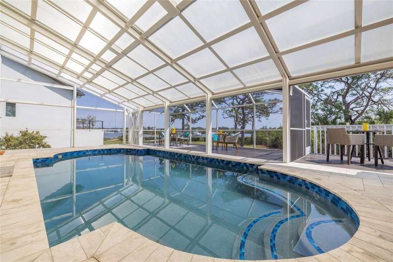 Under contract-accepting backup offers. ALL LIVING AREAS AND POOL AREA ARE SAFELY ELEVATED AND RECEIVED NO DAMAGE FROM HELENE OR MILTON!! This home sits on the LARGEST LOT available in this Gated and Guarded community!! It is one-of-a-kind and has SO much to offer. The LOW 2025 Property taxes have been determined -- $2621 FOR THE YEAR!! --- Very low flood insurance cost $2081/year!! There are over $200,000 IN MAJOR UPGRADES -- In 2022, the saltwater pool was resurfaced, and a new heater/chiller was installed. New pavers surround the pool, and the entire lanai screening was redone. The pool lanai opens to a spacious, new sundeck that simply cannot be more private. The pool bathroom has an updated, over-sized walk-in closet that can easily be converted into a sauna, if desired! The irrigation system is 3 years new, and is paired with "Mosquito Magician," an all-natural remedy for mosquitos and no-see-ums! Never be bothered by pests while enjoying the outdoor living! The A/C's are '20 & '21, and the washer, dryer and dishwasher are all newer. In addition to those major upgrades, the Tile Roof is newer 2013! Situated in peaceful Harbour Watch, you'll enjoy the tranquility of living with water views and beautiful Florida nature. Inside, you're greeted with a large and open floorplan, giving clear views of the beautiful pool and Anclote River that opens up to the Gulf waters! The large Living and Dining Rooms neighbor each other, both with large sliders that open to the pool. To the left, you'll find the expansive Kitchen, with its own front entrance for convenience. With ample cabinet and counter space, and a closet pantry, this Kitchen is a chef's dream! A bonus area sits off the Foyer, perfect for a bar area or even an office nook. Pass through the Living Room to find one of the spacious Master Bedrooms, with water views and its own access to the pool and sundeck. A Bonus Room also sits off the Living Area that is perfect for a game room, Formal Family Room or Den that also houses the guest bathroom. The private guest bedroom, ample in size, features stunning views of the intracoastal and has complete privacy offered by the vegetation. Nestled in the farthest corner of the home for ultimate privacy is the larger Master Bedroom, featuring dual closets, and a bonus third closet for shoes/accessories. The en-suite Bathroom has dual vanities and a large, walk-in shower, as well as a large linen closet. The hallway leading to this Master Bedroom has a private bonus seating area/reading nook, or another potential office space, as well as access to the elevator. Heading outside, you'll find the beautiful heated/chilled saltwater pool that is fully controlled by your phone! Stunning intracoastal views can be expanded on – ask your realtor for the details! The sundeck provides stairs that lead down to the large yard, perfect for pets, kids, entertaining, whatever your heart desires! This gated and guarded community offers a beautiful Clubhouse, Fishing Pier, a Community Pool and Tennis Courts! Only a 7-min drive to Fred Howard Park, 10 min to downtown Tarpon! Water did NOT enter any of the living space during Helene or Milton-- only the lower-lying storage area where the elevator sits was affected and was properly remediated and restored.