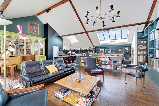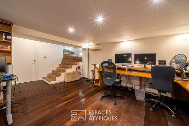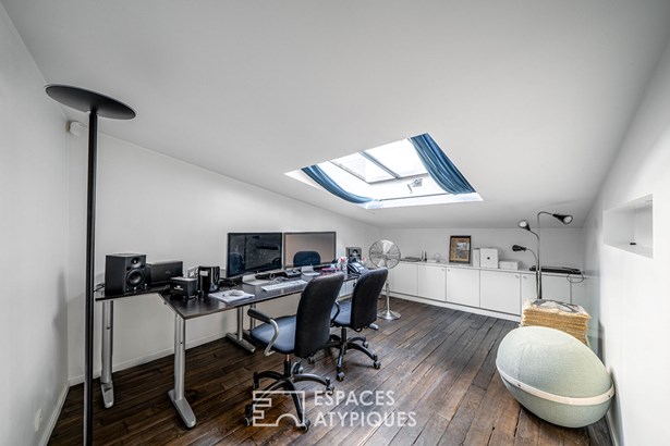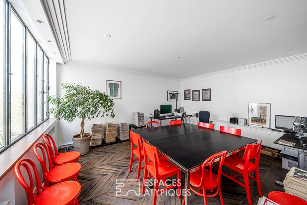 A truly atypical property now used for professional purposes but equally ideal for living, it combines an intimate atmosphere and versatile potential, between a residential softness and creative dynamics.