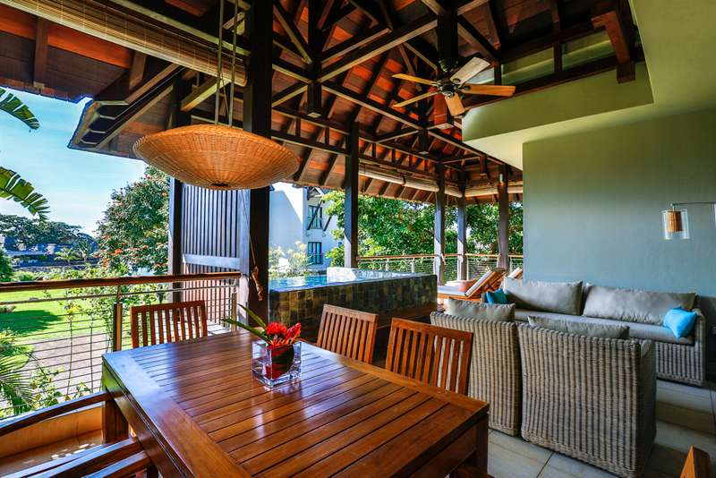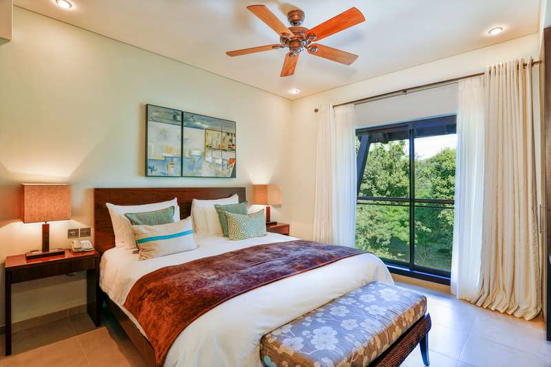 This beautiful 215m² apartment with 3 bedrooms, out of which 2 with en-suite bathrooms, is located on the first floor of a 1-storey residence facing hole Number 9 of the golf course. The living room, the master bedroom and the terrace with plunge pool are oriented towards the sea. The convivial living-cum-dining area with American kitchen opens onto the covered terrace with additional lounge space and plunge pool. The apartment is a short walk away from the golf clubhouse, the restaurants, the swimming pool and the boast shuttle departure to Anahita's exclusive beach on Ile aux Cerfs. Rental yield potential through the rental pool programme managed by Anahita Golf & Spa Resort.