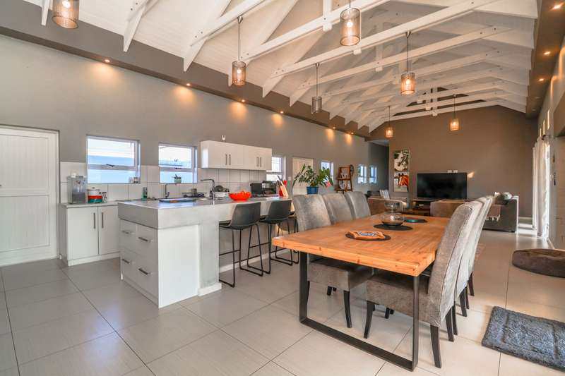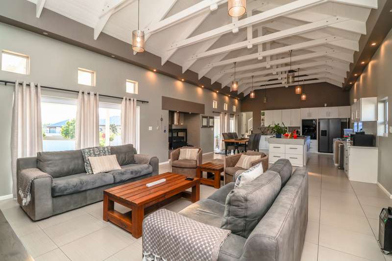 North-Facing Haven with Breathtaking Mountain Views Tucked away in a quiet cul-de-sac with no immediate neighbours, this extraordinary home offers panoramic north-facing views of the majestic Outeniqua Mountains — a true sanctuary of peace, privacy, and natural beauty. Designed for both effortless entertaining and everyday comfort, the home features a very spacious open-plan living, dining, and kitchen area. The kitchen boasts a large central island that invites connection and conversation. The open truss ceiling design enhances the feeling of light and space throughout. Step outside to enjoy a sunny stoep and two undercover braai areas, ideal for year-round indoor-outdoor living and entertaining — all framed by those incredible mountain views. Accommodation includes three generously sized en-suite bedrooms, each offering the space and privacy to be used as independent living units. The two upstairs bedrooms feature their own private ba