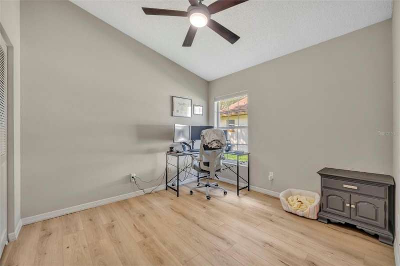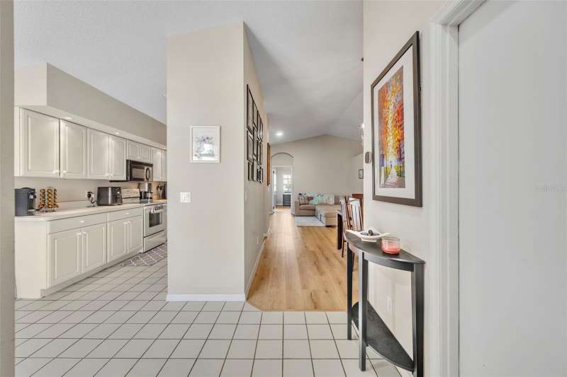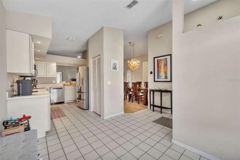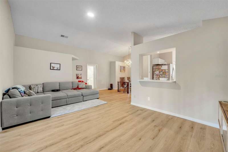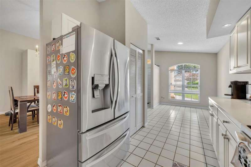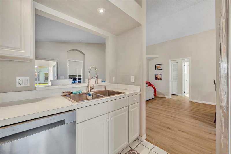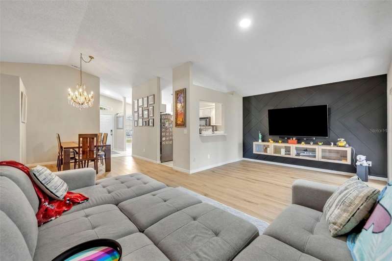 Under contract-accepting backup offers. Welcome home to desirable Parkview Terrace! This this charming 3 bed, 2 bath, one-story home has an open and split floor plan. New LVP flooring (2025) in all living areas & bedrooms. The family room has gorgeous feature wall with attached console. The generous kitchen features a new sink & faucet (2024), stove (2019), new refrigerator (2024), new dishwasher (2024), as well as an eat-in breakfast nook, closet pantry and a pass-through bar into the family room. The spacious primary suite features sliding glass doors to the screened patio, a walk-in closet, ceiling fan with a primary en suite that has dual sinks and a walk-in shower. The second and third bedrooms have ceiling fans and share the hall/guest bath, which has a tub/shower combo and large vanity. Enjoy the outdoors on your screened back porch. Among the home improvements/updates: new AC Compressor(2022), new washer and dryer (2020), new water heater (2023), new ceiling fans (2024), replumb and roof (2013). The laundry closet is in the large 2 car garage. Neighborhood amenities include lawn maintenance (mowing), clubhouse, 2 tennis courts, 3community pools and spa/hot tub for approximately $105.00 per month. Restrictions to note: the community does not allow fences and the home cannot be leased until the owner has owned and occupied it for one year. This wonderful location is just minutes to shopping, restaurants, theme parks and Orlando Health Dr. P. Phillips Hospital. Easy Access to major roads, airports and downtown. Call for your showing today!
