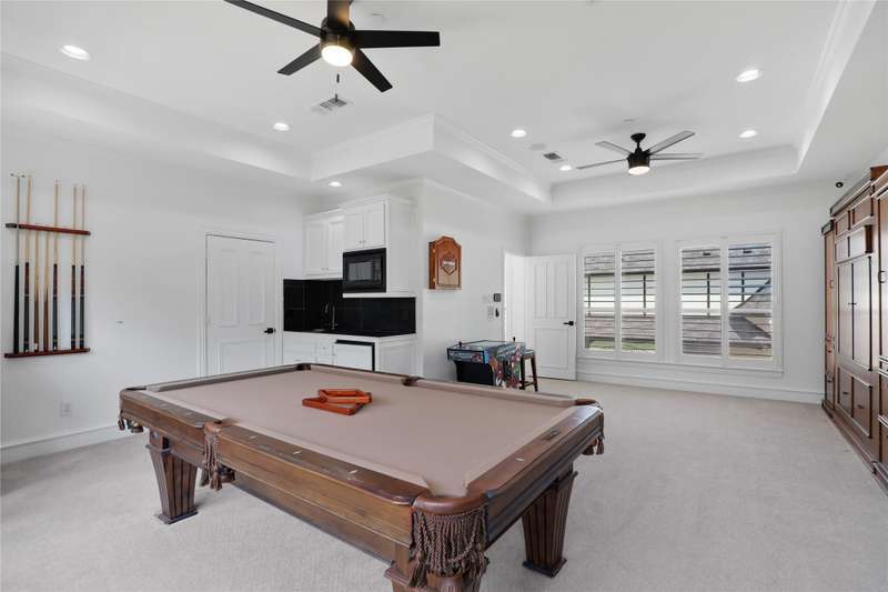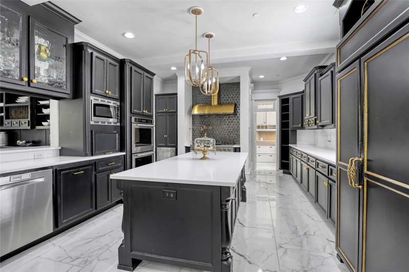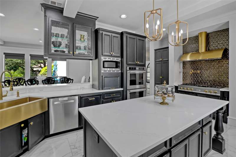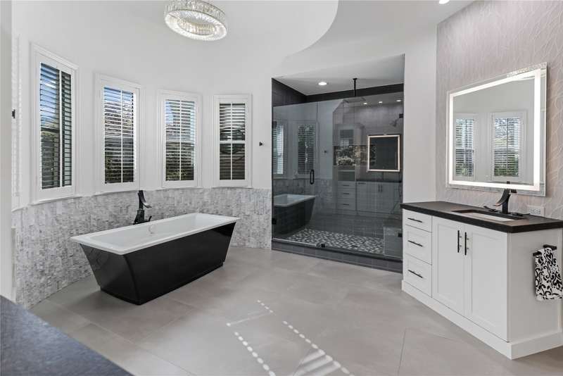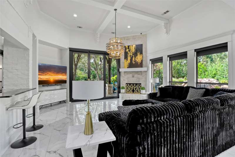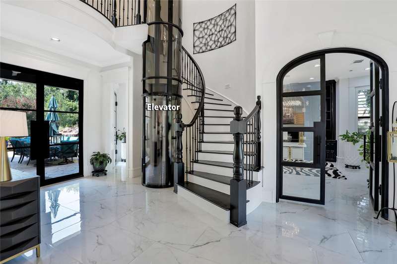 Timeless Elegance Meets Modern Luxury in Exclusive, Gated Stonebridge Estates. Presenting over 7700 sqft situated on a 1.1 acre greenbelt lot with $350k in recent updates! Enjoy breathtaking panoramic treeline views from nearly every vantage point ~ from large picture windows, custom wrought iron & glass doors & retractable sliders in the living room. Sophisticated outdoor entertaining all year long...whether you're relaxing by the waterfall swimming pool-spa, under the pergola-covered patio or warming up by the backyard firepit. This porte cochere plan boasts 4 split garages, 6 bedrooms including an in-law suite down, an elevator to the primary bdrm, an executive study with a fireplace, exercise room or second office, game & media rooms. You'll love the redesigned kitchen featuring Calcatta Quartz counters, Chef Z-Line gas range & custom Zephyr vent hood, a SubZero refrigerator, Wolf appliances including 2 dishwashers & double ovens + 2 Thor beverage drawers. More modern updates in this jewel: Remodeled primary bathroom with an oversized frameless shower, designer tile & lighting, backlit mirrors, a bidet & California closet system; extensive marble-look tile floors; beamed living room ceiling, a wine cellar & wet bar; designer chandeliers, hardware & lighting; remote control shades & plantation shutters. Topping it off--a refreshed exterior + native TX landscaping, replaced HVAC units & pool equipment, whole-house integrated sound & security systems. Your suburban sanctuary awaits ~ as close to perfection as it gets!