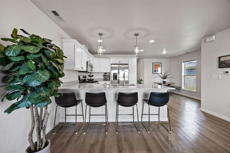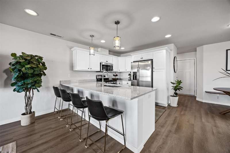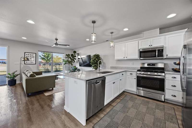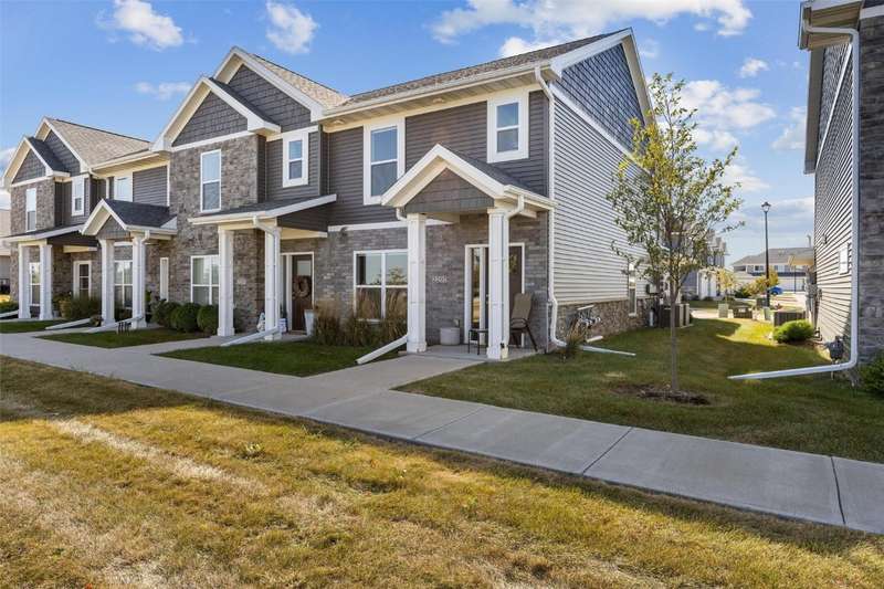 Bright & Modern End-Unit Townhouse in North Liberty. This stylish townhome offers the perfect blend of modern design and comfortable living. Enjoy abundant natural light, quartz countertops, and trendy finishes throughout. The kitchen features stainless steel appliances and a gas range. The spacious primary suite features a walk-in closet and a luxurious ensuite bathroom. There is a great amount of storage in this condo. Relax on your front porch or explore the nearby parks, schools, and coming soon is North Liberty's new event center within walking distance. With no yard to mow or snow to shovel, you can spend more time enjoying life. Schedule a viewing today and experience the lifestyle you deserve.