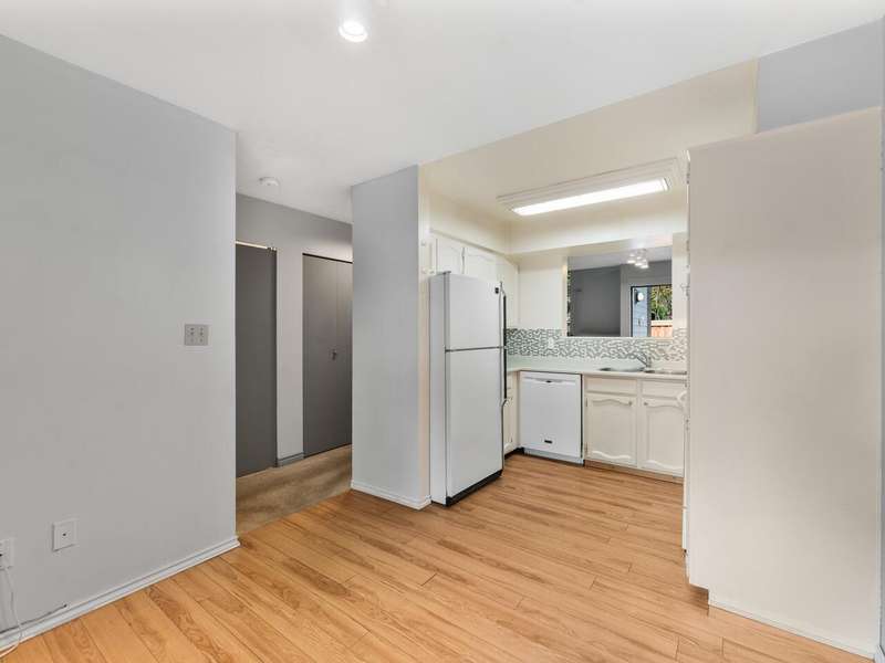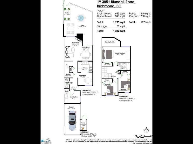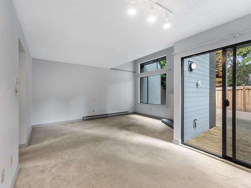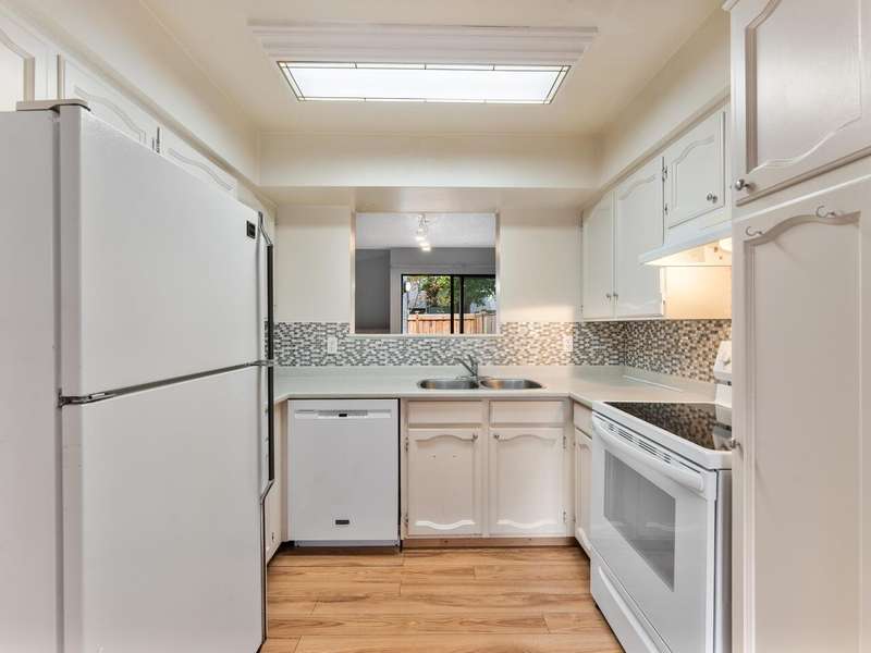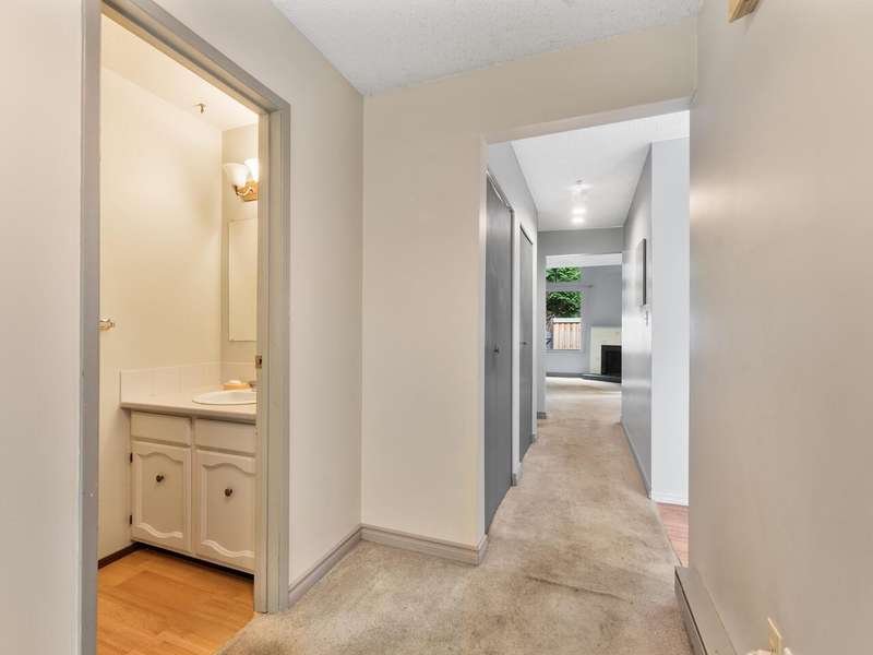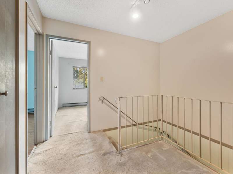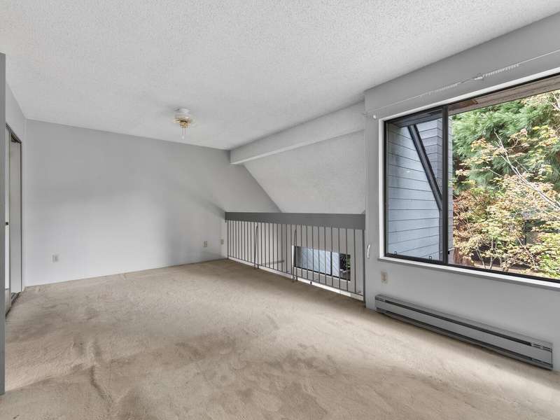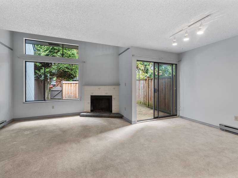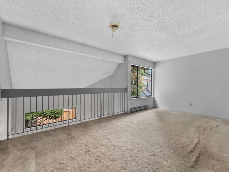 This 3 bdrm, 1 1/2 bath townhome is spacious, airy, open and ready for your design ideas. There's 1275 square feet of accommodation here with soaring vaulted ceilings in the living room so it feels even larger. Cozy wood burning fireplace too. Sliders walk out to a huge 349 sq. ft. fully fenced patio area that's perfect for keeping an eye on the little ones. Bright kitchen has a convenient eating area and there's a large laundry room big enough to double as an office area. Up has a mezzanine style primary bedroom, 2 more good sized bdrms and a full bathroom. The carport features a separate storage room too! You're just steps from the gym and steam room. Beacon Cove is a very well maintained and run complex with a quiet and family friendly vibe. Pet Friendly too. You'll love it here!