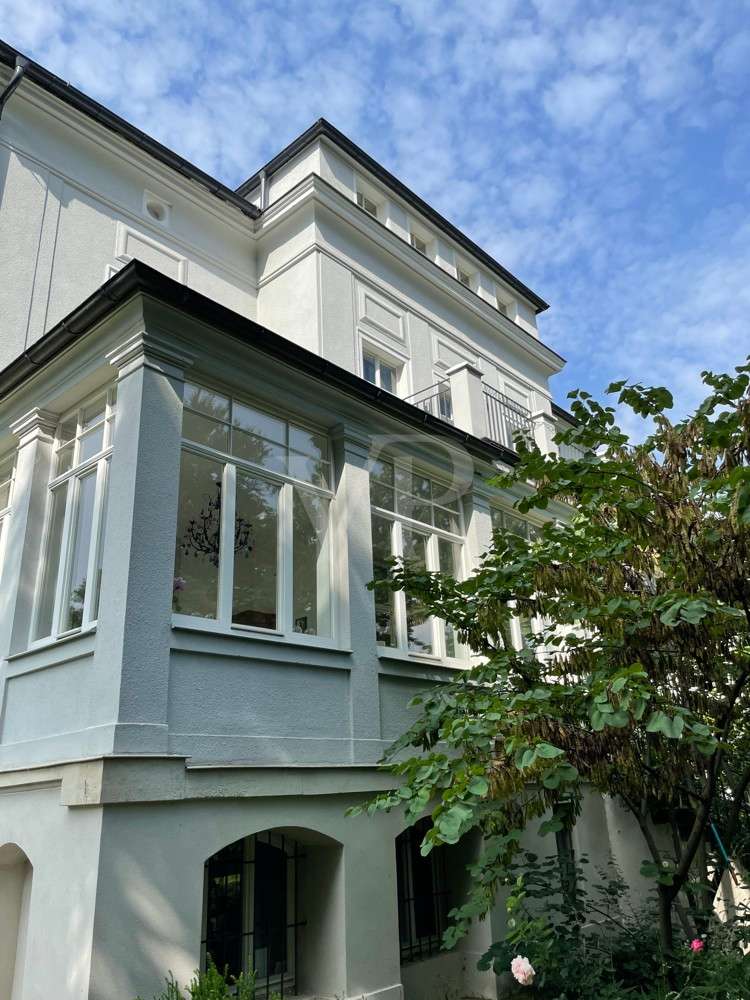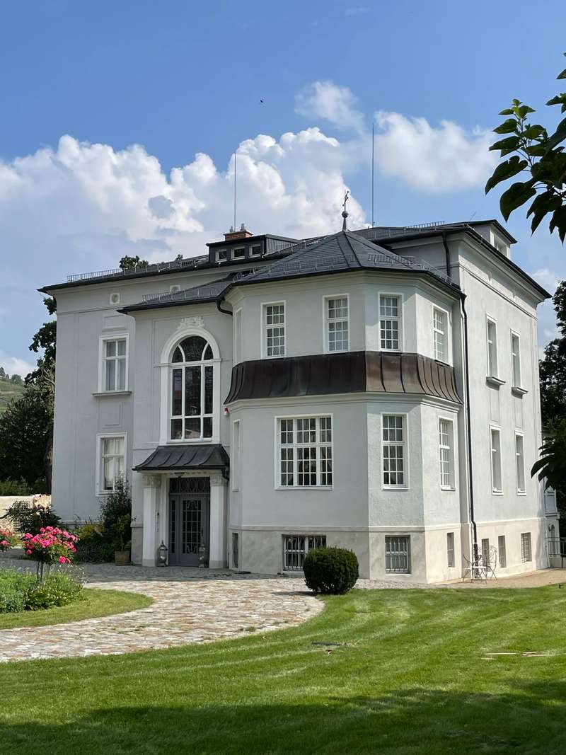 For sale is a well-known listed villa, built around 1870 by the Ziller brothers, with well-kept grounds and views of the vineyards. The property has been renovated to a high standard and in an exemplary manner. From 2012, the roof, façade, windows and their frames were renovated true to the original. Inside, the owners have adhered to the design typical of the period and have been able to preserve the stately charm of the high, bright rooms as far as possible. The floor plan is individual and also offers the option of use as a residential and commercial building thanks to the commercial space in the basement and on the first floor. On the ground floor there are 4 large, bright rooms, including the "library" with fireplace, a huge living room and the modern kitchen with access to the large conservatory. Particularly impressive on this floor is the dining room, bright and flooded with light. The spacious floor plan offers the possibility of running a law firm, practice or office on the ground floor and accessing the private rooms via the staircase. The upper floor is reached via a sophisticated staircase with original Art Nouveau glazing in the large windows. The spacious floor plan offers the possibility of running a law firm, practice or office on the ground floor and accessing the private rooms via the staircase. The upper floor, with 3 large living rooms and a beautiful bathroom, has also been renovated to a high standard and with great attention to detail. A large bathroom, a guest bathroom, a sauna preparation room and a balcony can also be found on this floor. The top floor offers an additional 140 m² of expansion space. The rooms are generously proportioned and flooded with light. The furnishings are of a high standard and the bathrooms have been exclusively renovated. Other special features include the fireplace on the first floor, the high-quality fitted kitchen, an alarm system and the sophisticated color scheme. A staircase leads to the top floor, a large room was formerly used as a master bedroom and offers plenty of space, followed by 2 further rooms. In this dreamlike villa, with a magnificent view of the vineyards, you can enjoy the peace and quiet you deserve while still being very close to urban life. We would therefore be delighted to show you your new home at a viewing appointment.