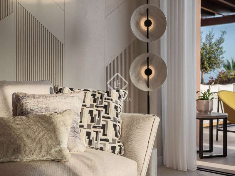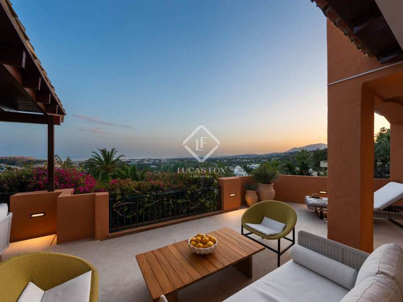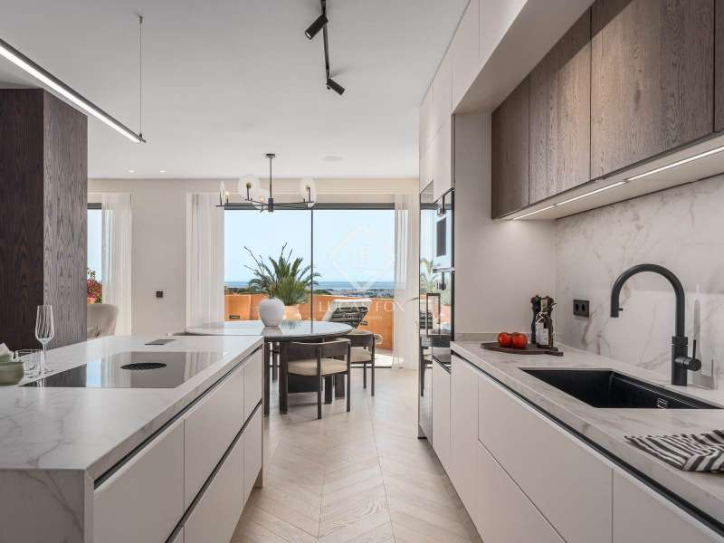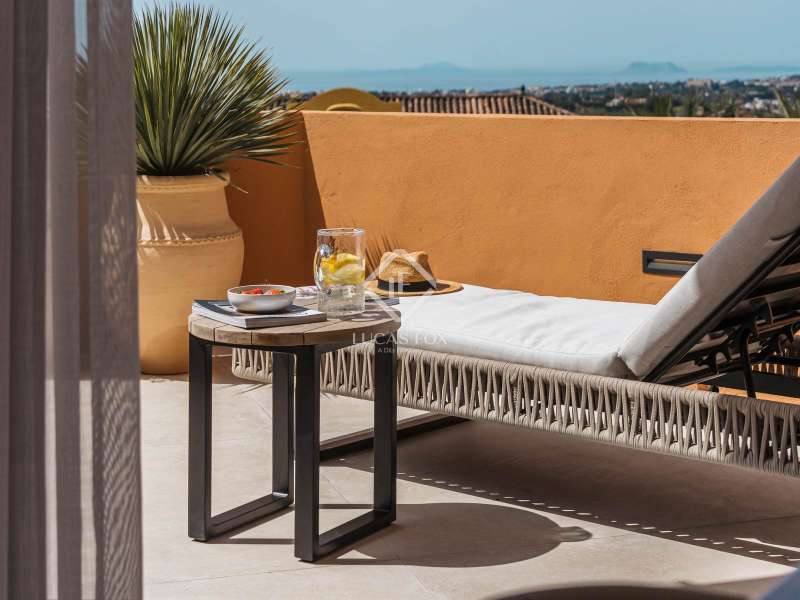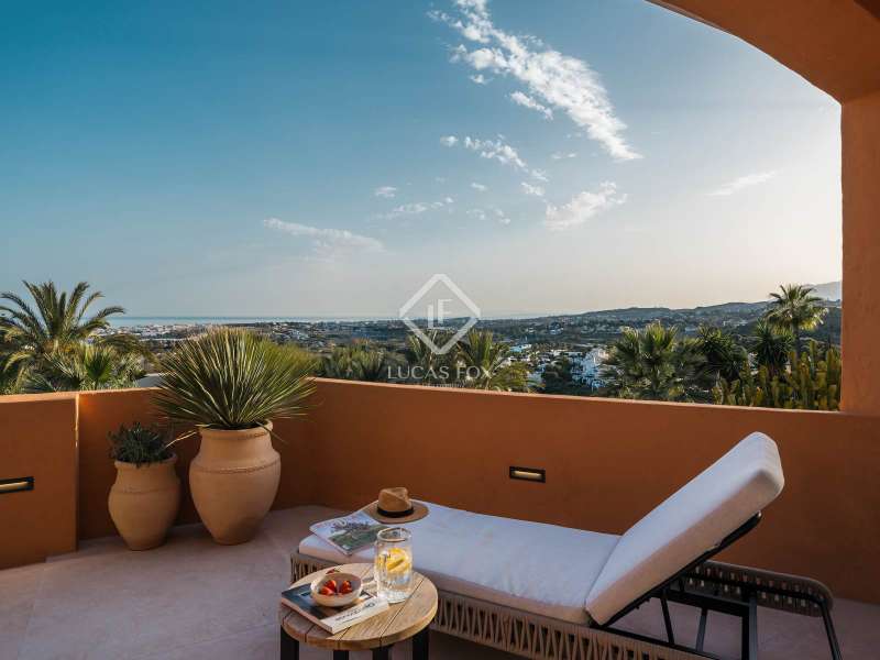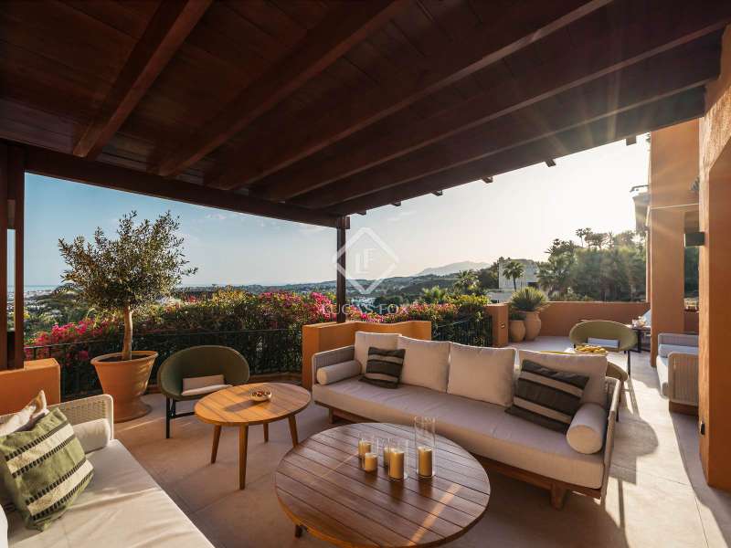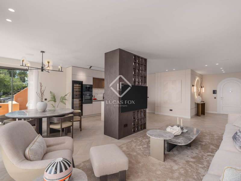 Located within the prestigious and picturesque community of Les Belvederes in La Cerquilla, Nueva Andalucía, Marbella’s famed Golf Valley, this beautifully renovated, elevated ground-floor apartment combines timeless elegance, modern sophistication, and breathtaking sea views. Surrounded by some of the finest golf courses on the Costa del Sol and just minutes from Puerto Banús and Marbella’s golden beaches, it offers both serene privacy and convenient access to Marbella’s vibrant lifestyle. Designed on a single level, the residence features four generously sized bedrooms, each with its own stylish en-suite bathroom, plus a separate guest toilet. Every detail has been thoughtfully curated and finished to the highest standards. The interiors reflect refined taste, blending natural textures and clean lines with luxurious comfort. At the heart of the home is a bespoke kitchen crafted from premium materials and fitted with state-of-the-art Gaggenau appliances, seamlessly flowing into the dining and living spaces to create an inviting, open-plan layout. Natural oak wooden flooring runs throughout, complemented by high-end furnishings from the Alexandra Collection and elegant custom finishes, including Gessi taps and fixtures. A full domotic (smart home) system enhances daily living with remote control of lighting, climate, and security. One of the apartment’s most impressive features is its expansive, sun-drenched terrace, offering panoramic views of the Mediterranean Sea and surrounding mountains. Perfect for alfresco dining, lounging, or entertaining, it captures the essence of Costa del Sol outdoor living year-round. Residents of Les Belvederes enjoy exclusive access to a wealth of amenities: a heated communal swimming pool, beautifully landscaped gardens, gym, sauna, and private tennis courts. The gated community also offers 24-hour security for complete peace of mind. This property is ideal for those seeking an unforgettable holiday retreat or a stylish permanent home in one of Marbella’s most desirable neighbourhoods. With its rare blend of prime location, luxury finishes, and captivating views, it stands out as a true gem in the heart of Nueva Andalucía.